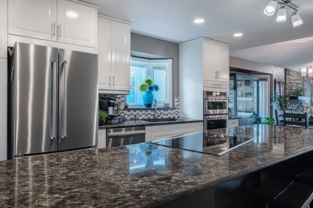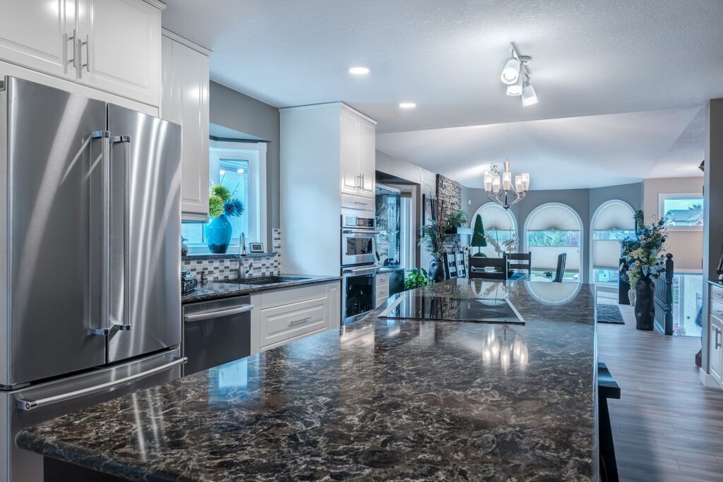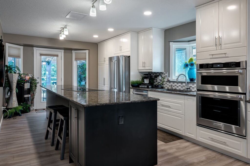 The kitchen and living room in this home were completely updated, and opened up by removing the wall between the two rooms. Now the space has a great flow and open concept feel.