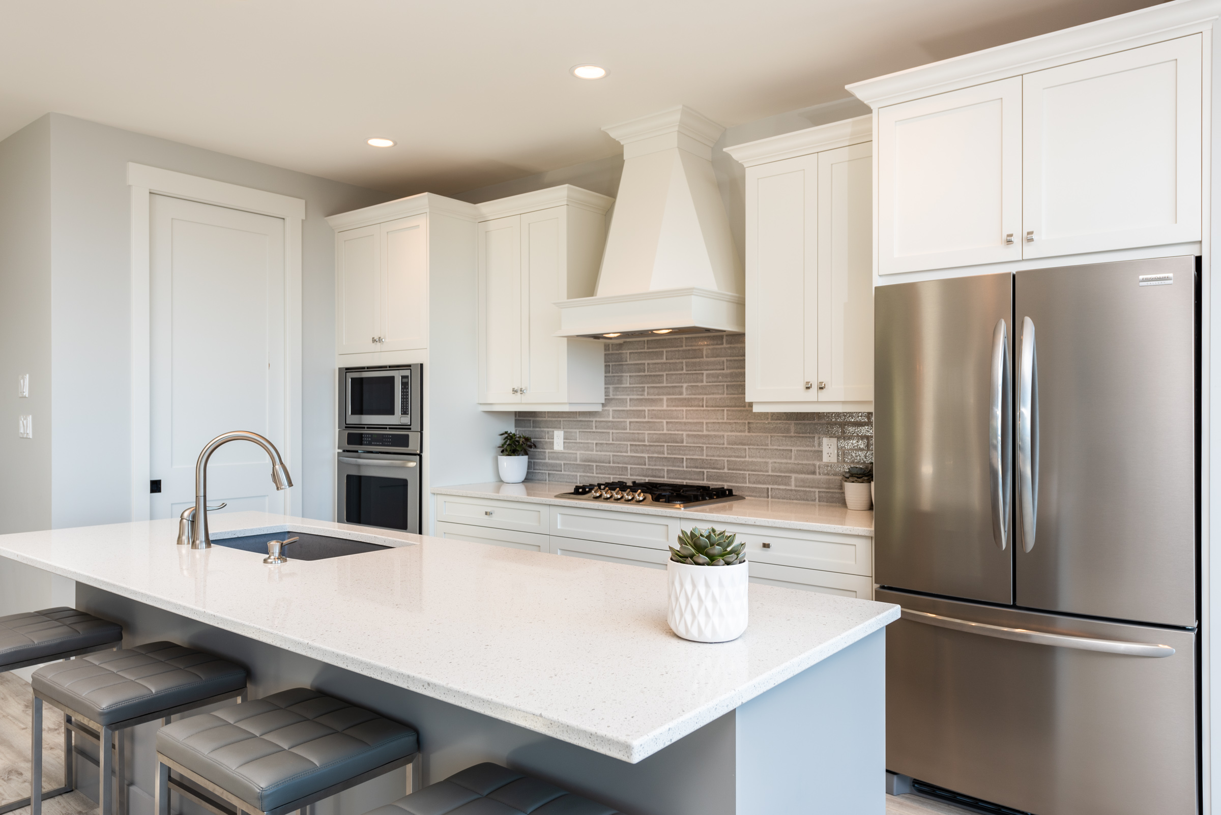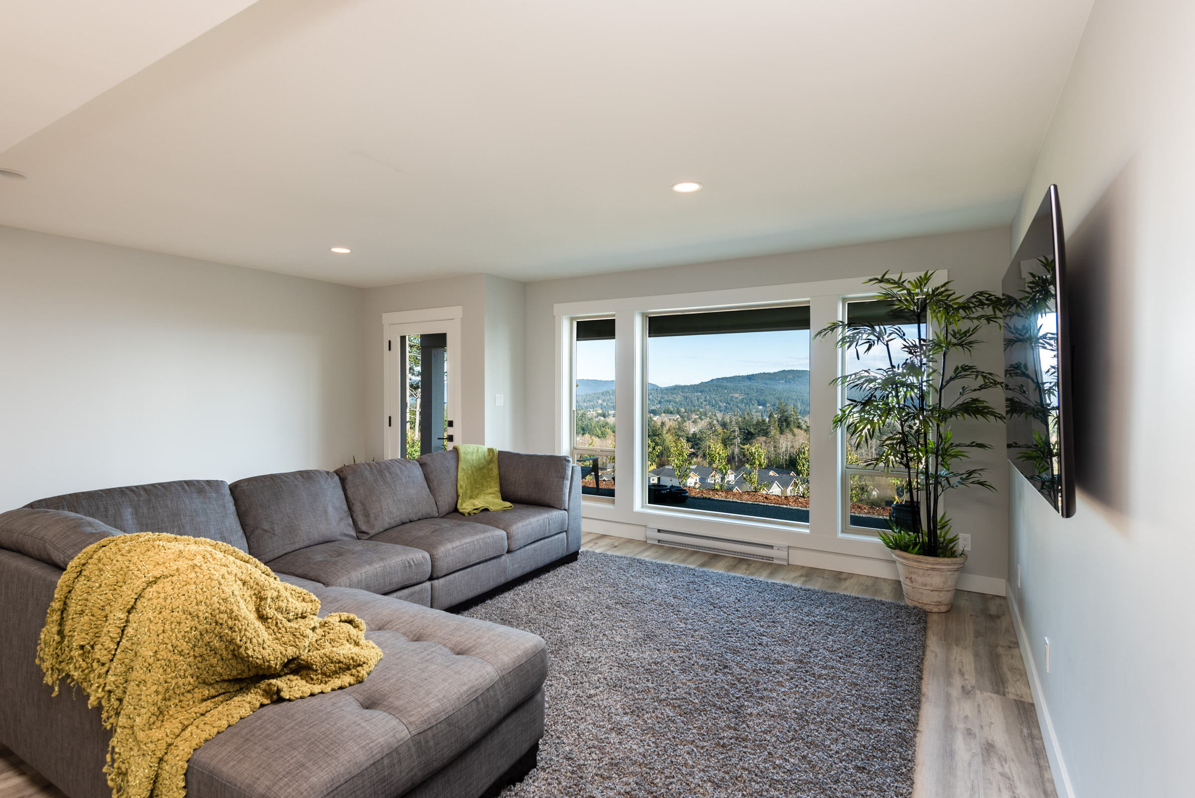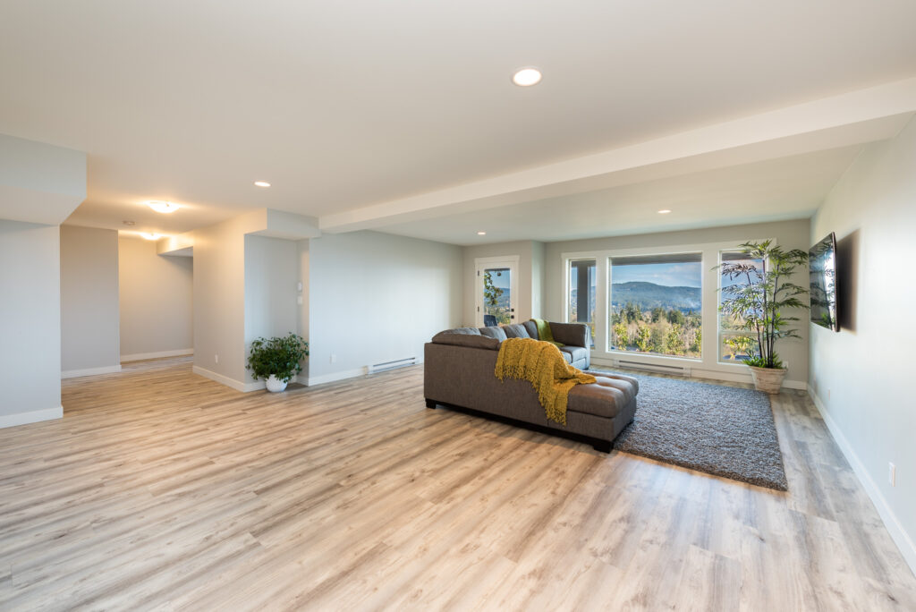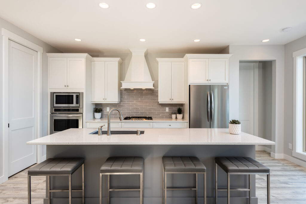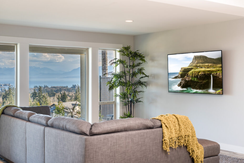 This custom home features an extensive open floor plan with ocean and mountain views. The kitchen has white shaker cabinetry, gas cooking, and quartz countertops. This is an excellent family home with stunning views.