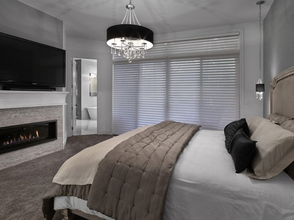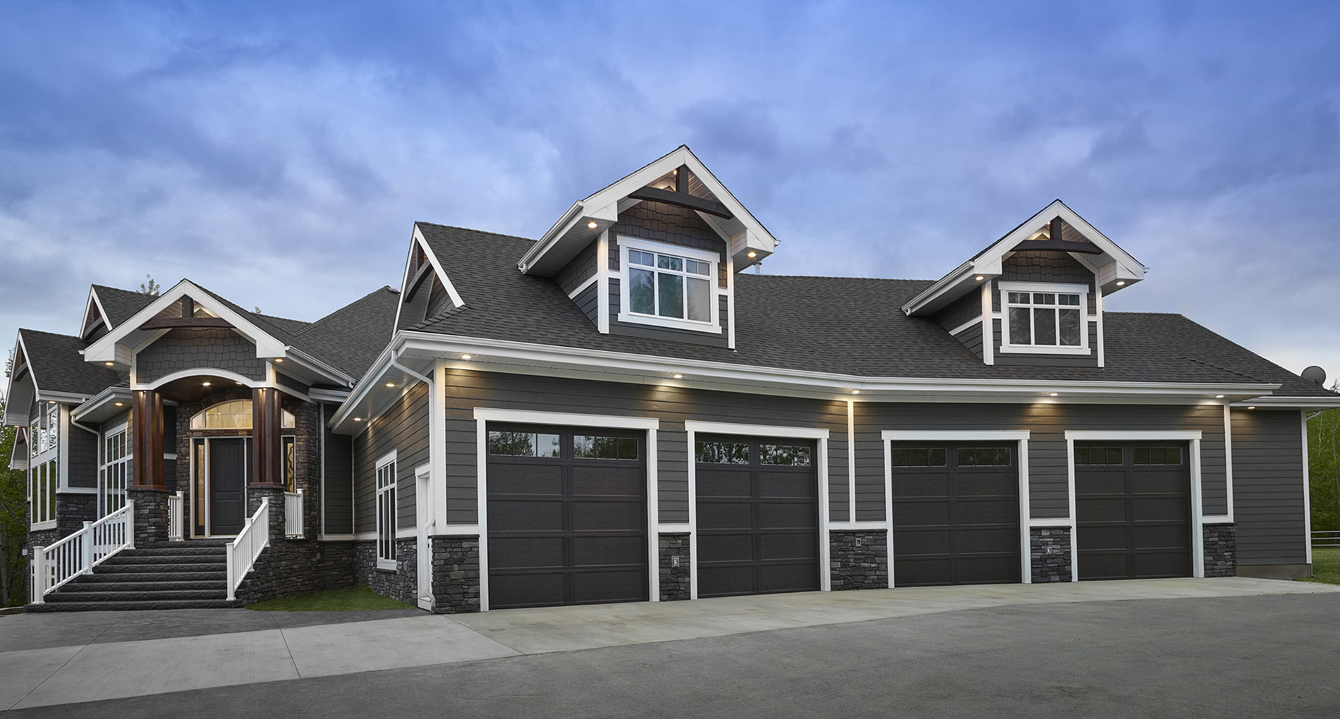 A “great room” was created on the main floor, creating a space big enough for the family to gather, and take full advantage of the beautiful scenery of the acreage. 2 spare bedrooms were added in the basement, as well as a full bar and exercise room, and theatre/gaming room. The garage was extended and 2 more bays added. Ceiling heights were raised to 10’ and 12’ feet inside the house, and the main floor was opened up to allow the natural light to flow through and light up a previously dark interior.