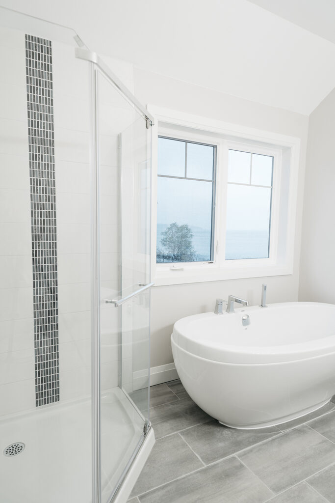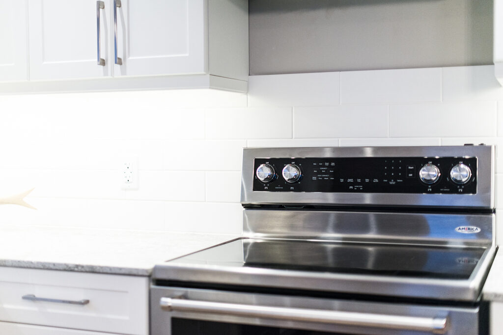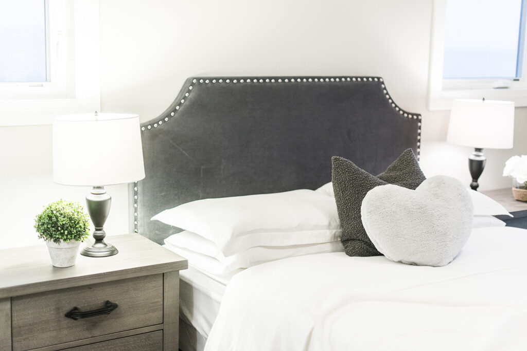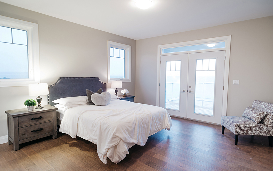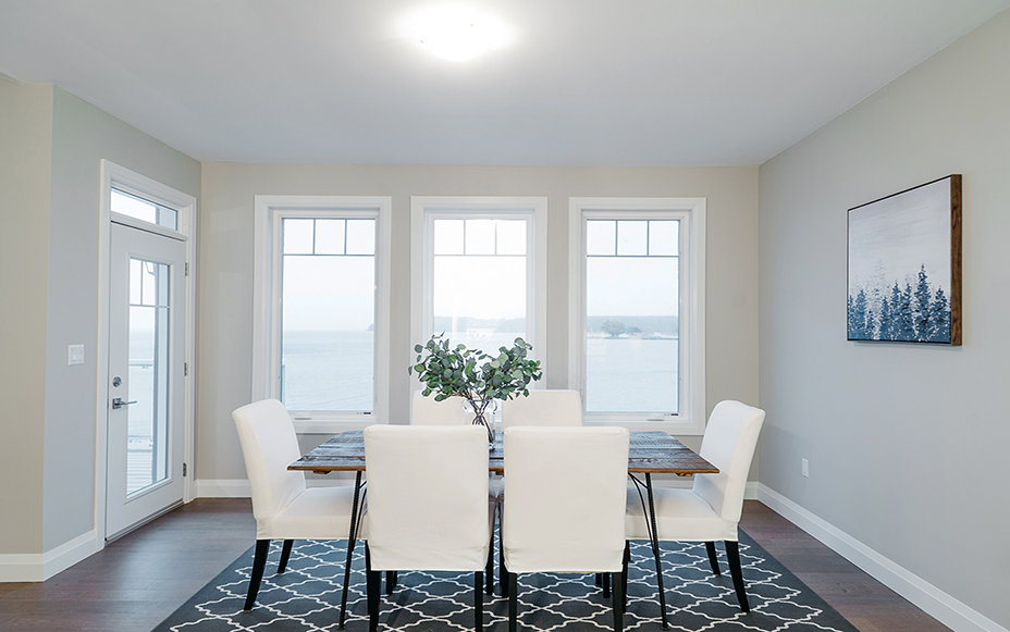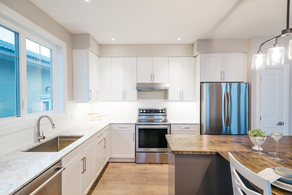 This 4 bedroom, 2.5 bath custom home features an open-concept layout with vaulted ceilings and hardwood floors throughout. The kitchen and living room features a blend of rustic and modern design elements – distressed wood counters and finishes, white cabinets and chairs, and stainless-steel appliances create a cozy and sophisticated atmosphere. The wood stove in the living room adds to the rustic charm of the space.