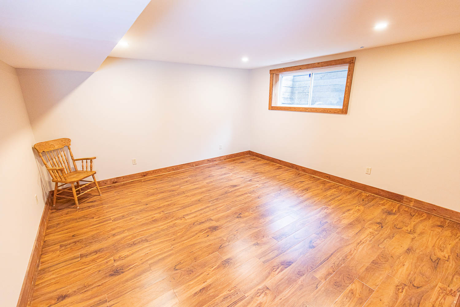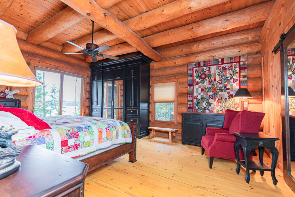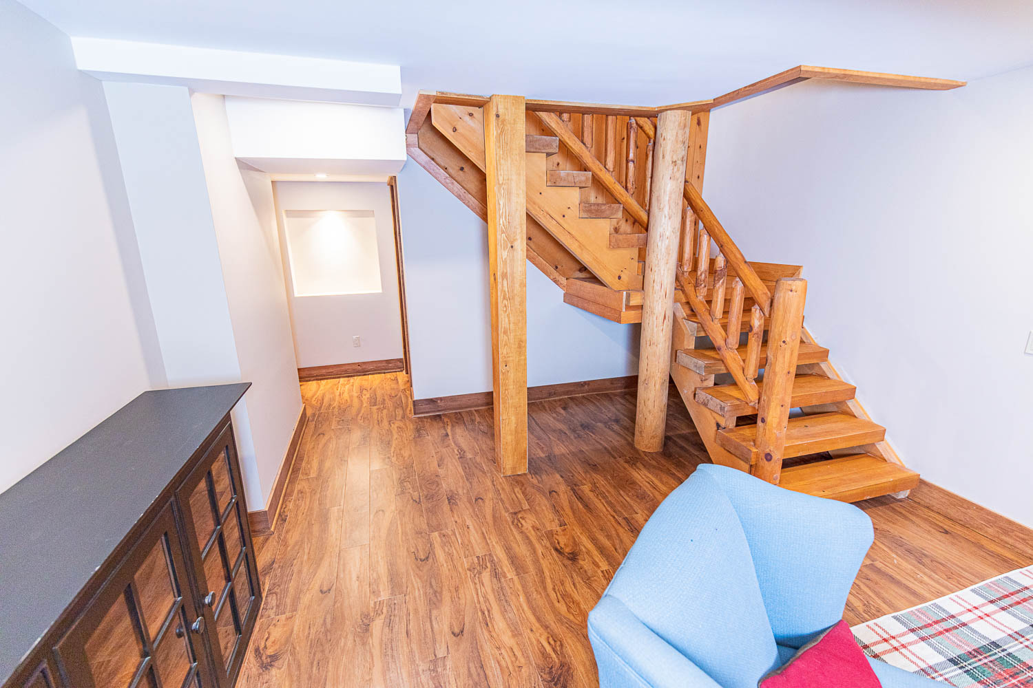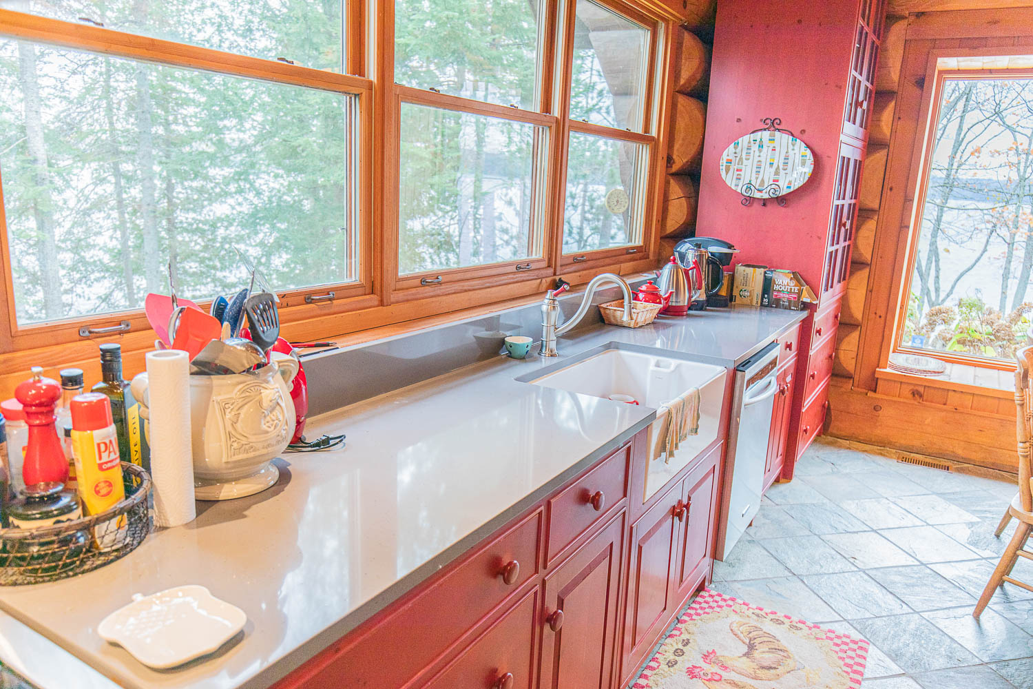 This custom log cottage, located on beautiful Peninsula Lake, was due for a facelift. Refinished hardwood floors, new kitchen countertops, and a complete basement and primary bedroom renovation are just some of the highlights.