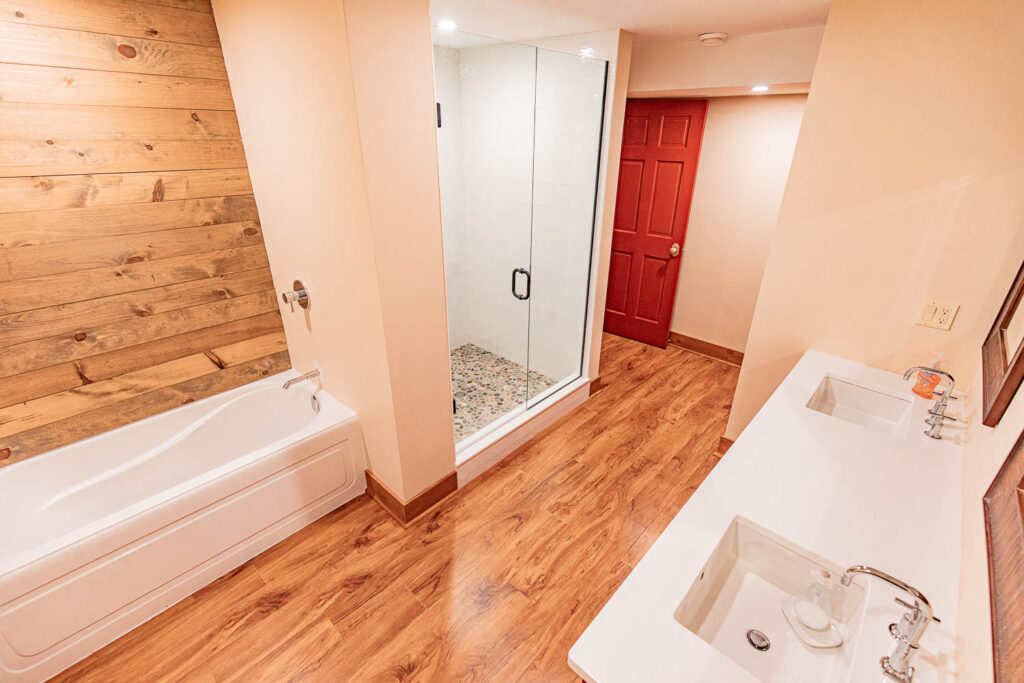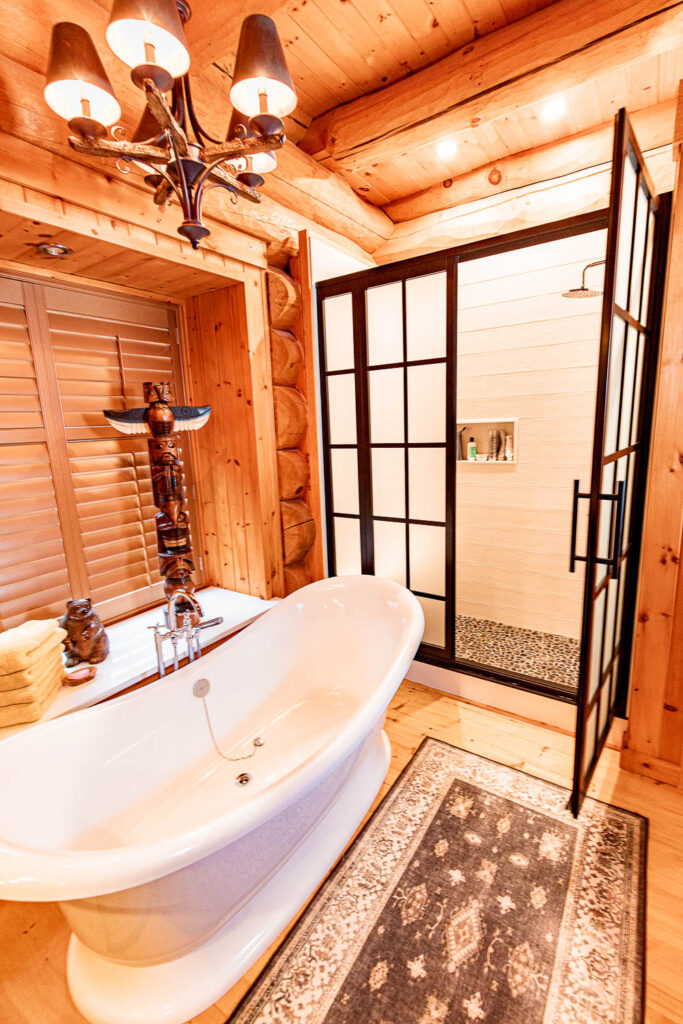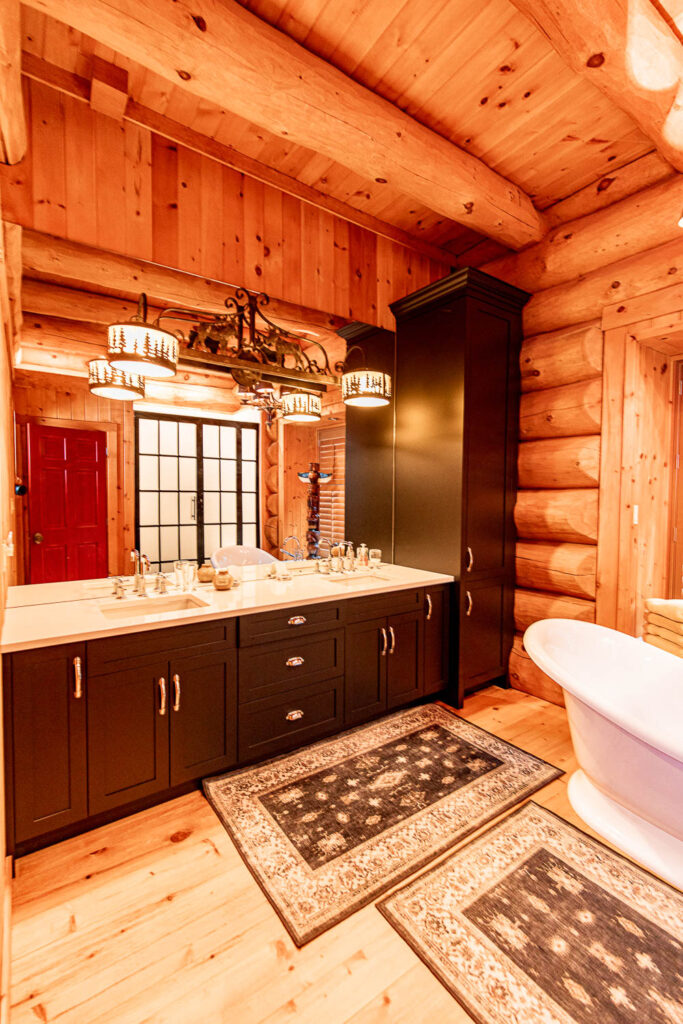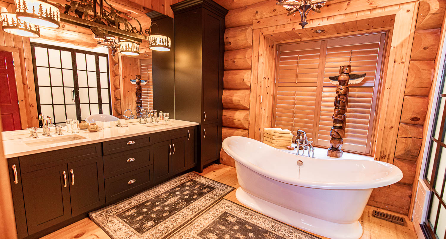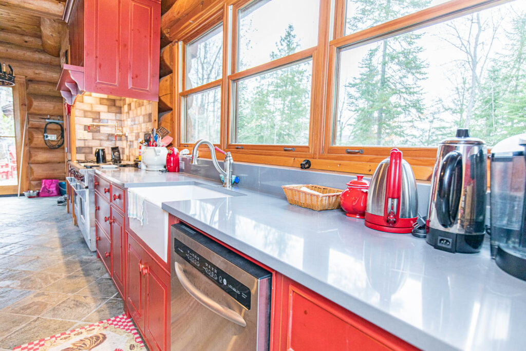 This custom log cottage, located on beautiful Peninsula Lake, was due for a facelift. Refinished hardwood floors, new kitchen countertops, and a complete basement and primary bedroom renovation are just some of the highlights.