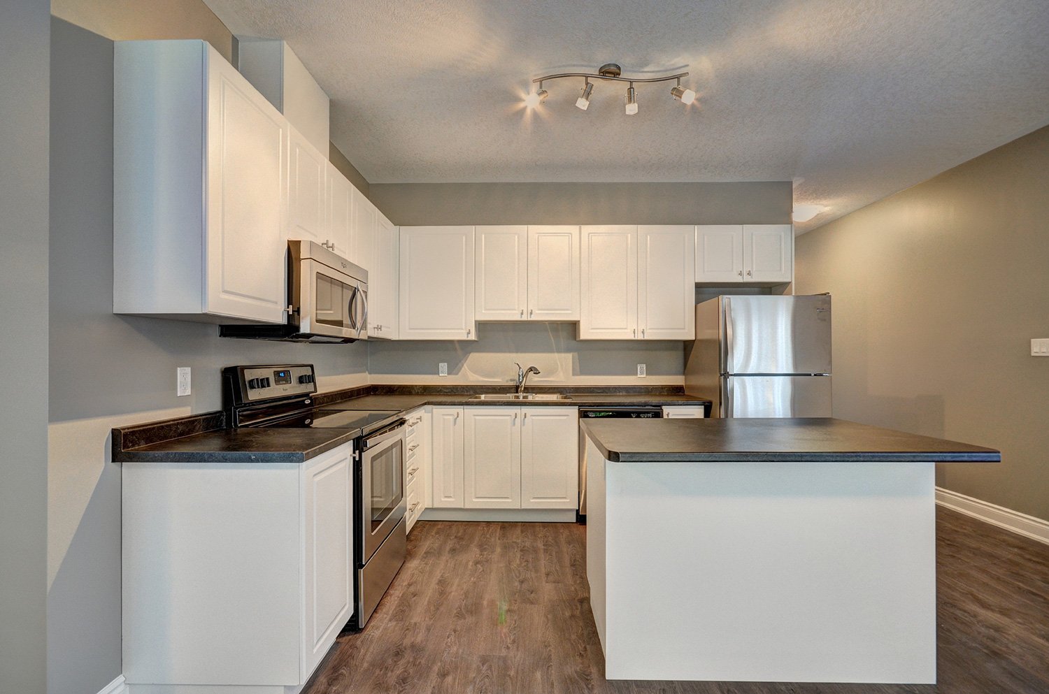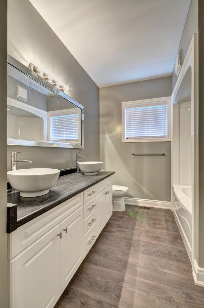 This custom home features a smart layout with a 1000sqft suite on the main floor and a separate suite on the second floor. Each unit has its own separate garage and entries. All of the fixtures and finishes were carefully selected to enhance the open spaces and give a solid feel to the home.