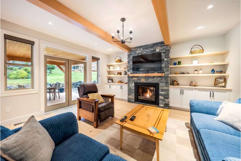 Step into a reimagined living experience where beauty and functionality meet in every corner. This home has undergone a remarkable transformation, beginning with the living room, now featuring elegant oak flooring, a natural stone-clad fireplace, and vertical grain fir decorative beams.