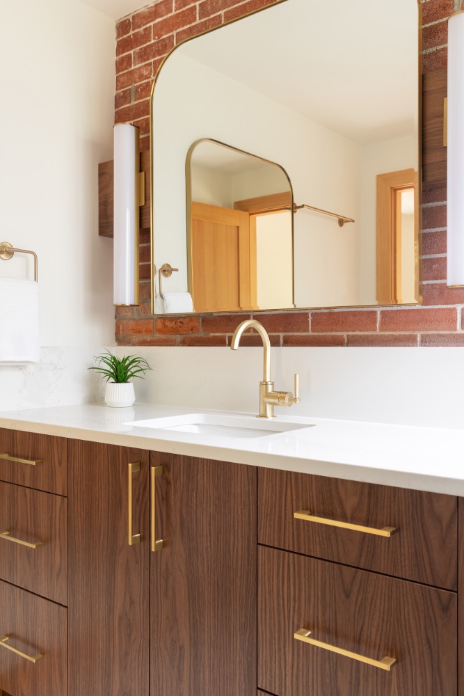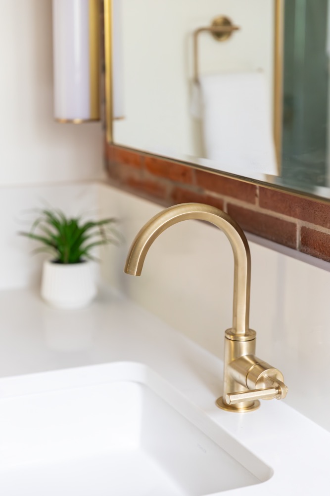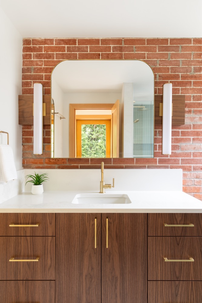 Re-purposed Brick Backdrop in Ensuite Bathroom: Adds a touch of character and texture with a nod to timeless materials.