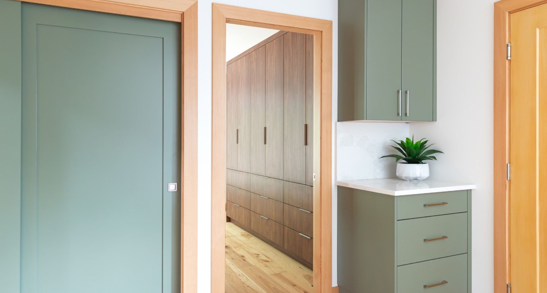 Clear Vertical Grain Fir Doors & Trim: Offers a cohesive, natural warmth and fine craftsmanship throughout the home.