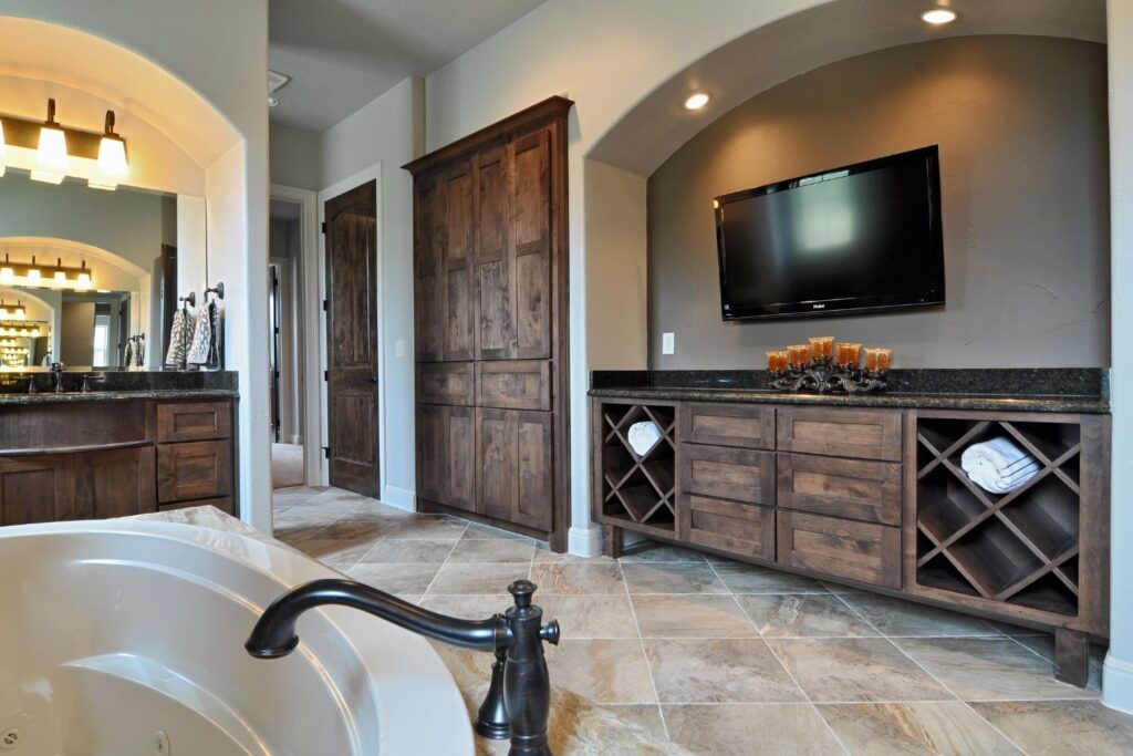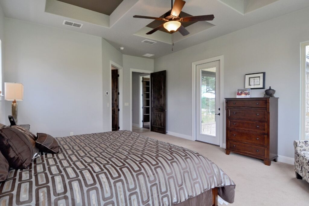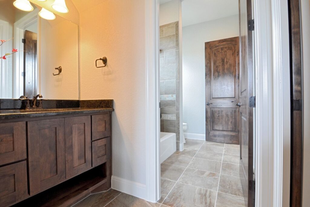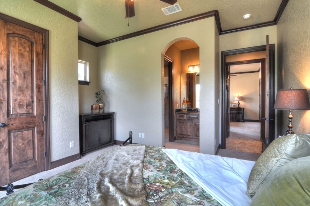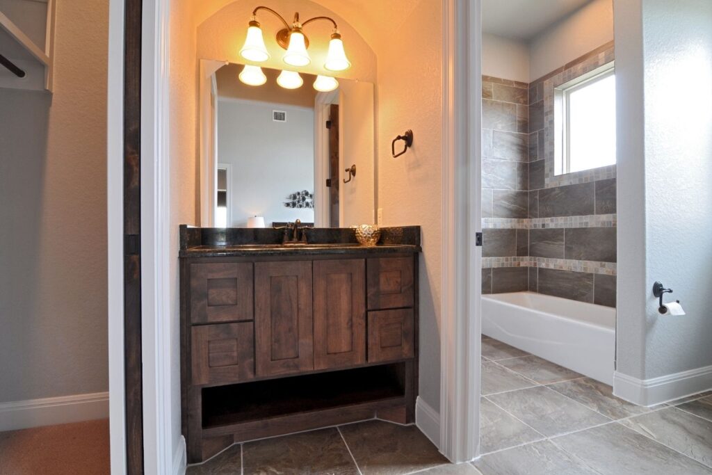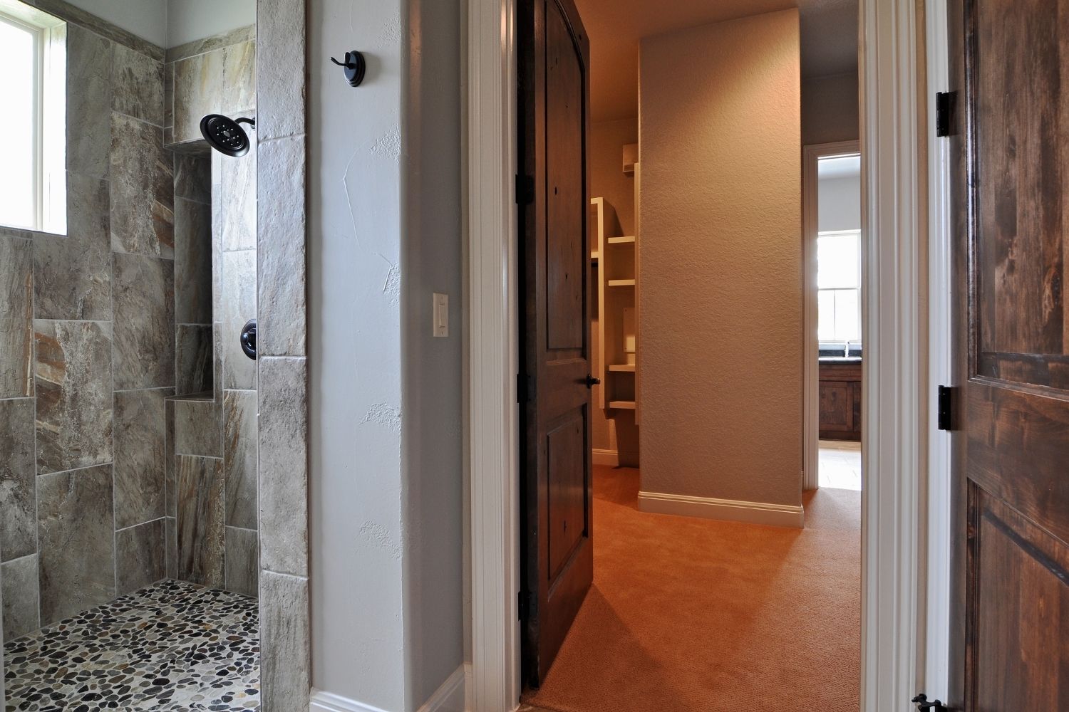 A modern traditional custom home featuring an open concept layout, custom cabinetry, stone accents, and a spa-like master bathroom.