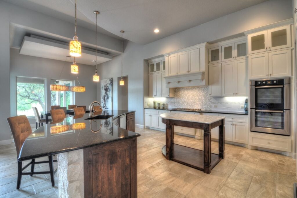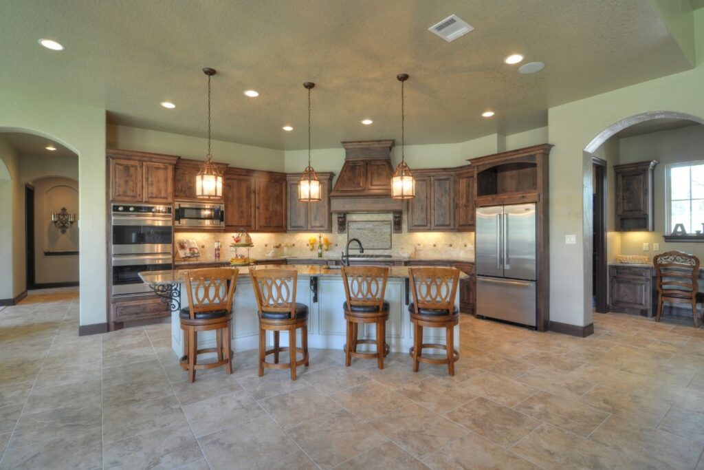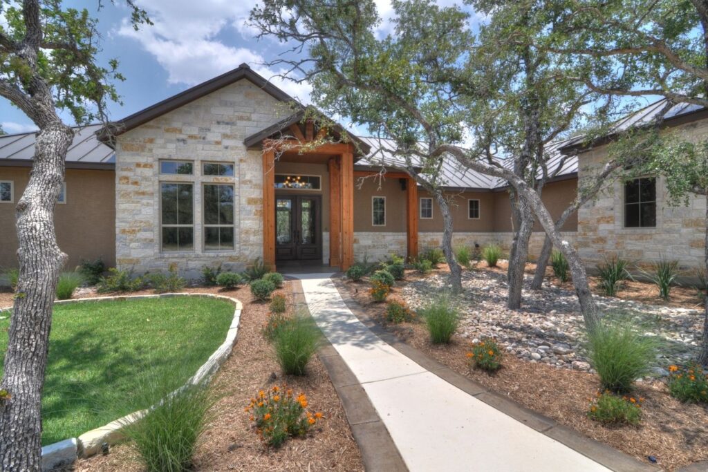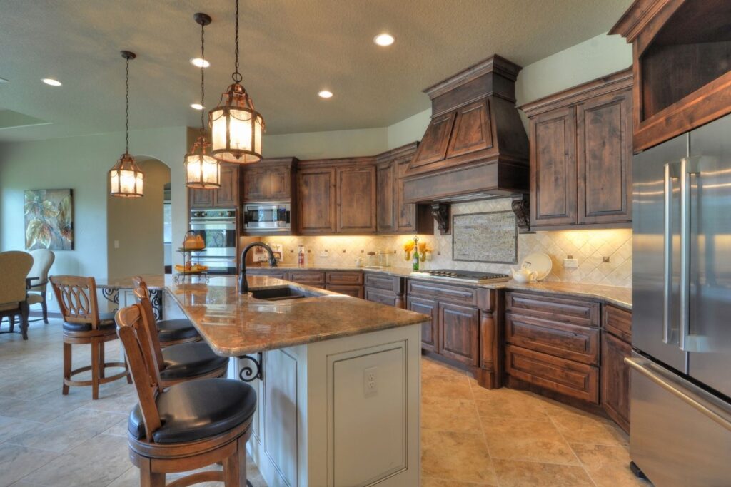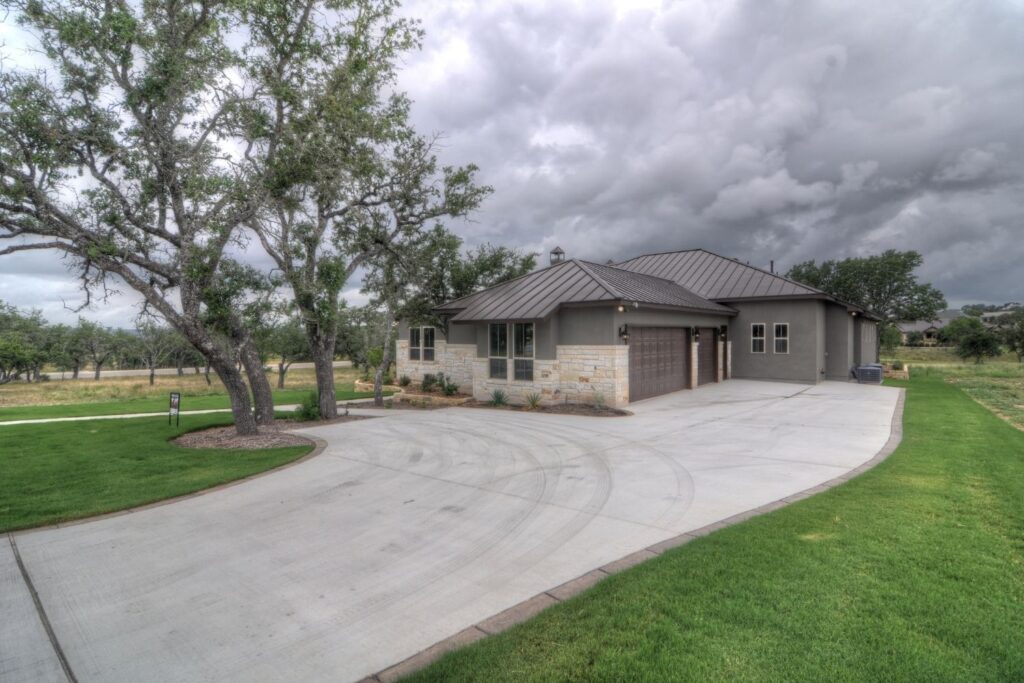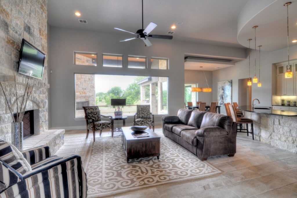 A modern traditional custom home featuring an open concept layout, custom cabinetry, stone accents, and a spa-like master bathroom.