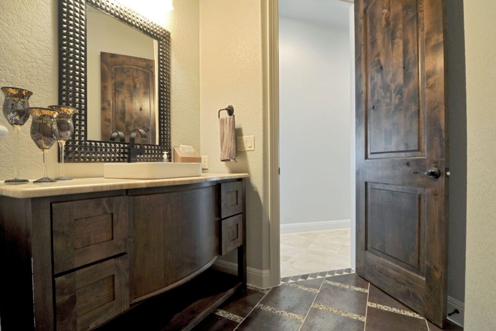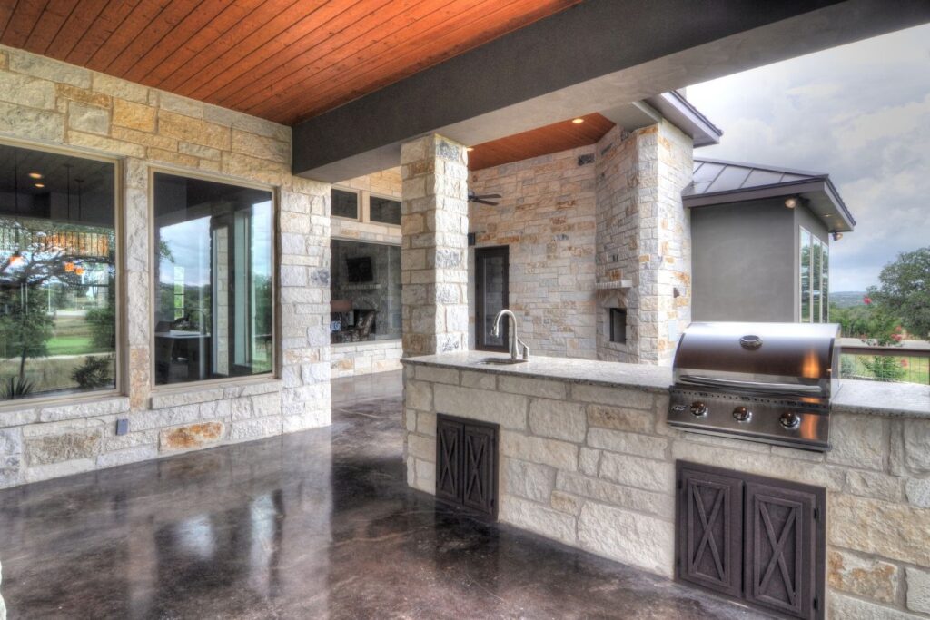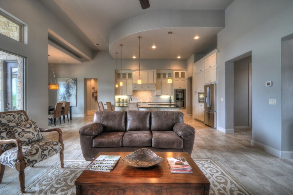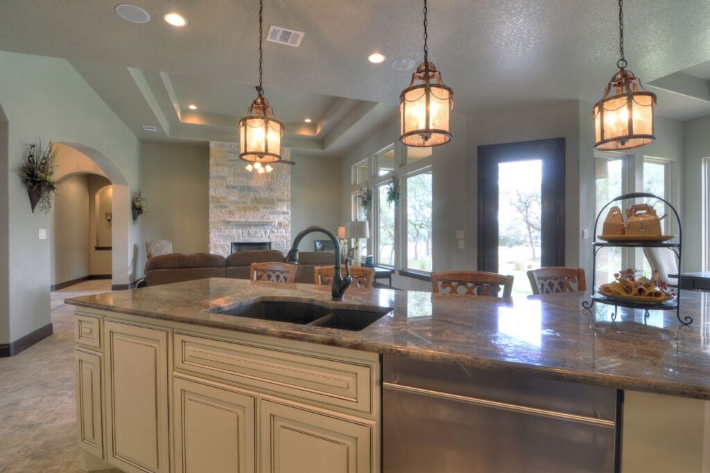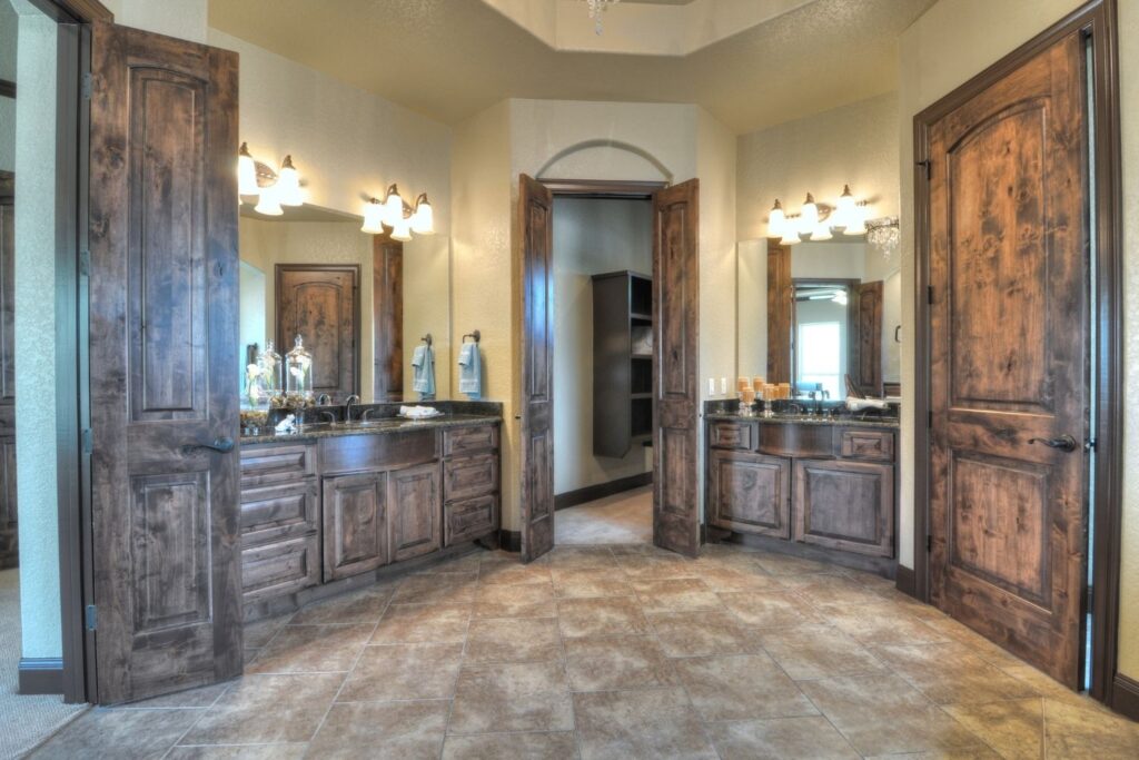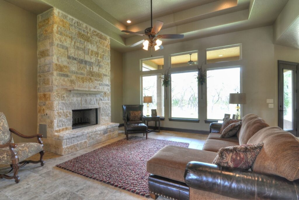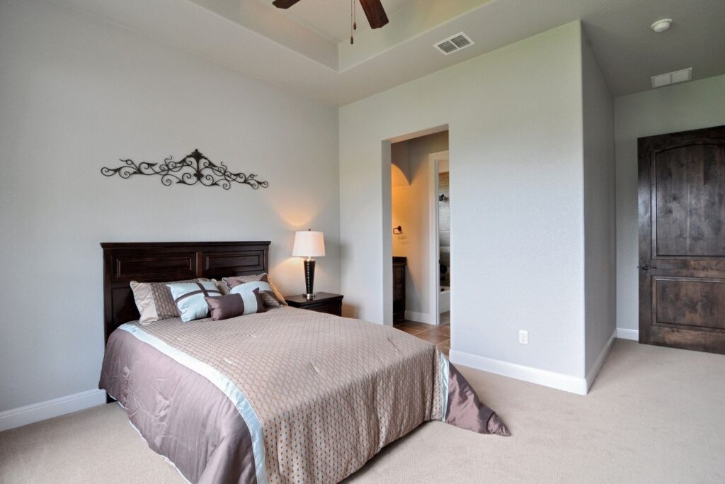 A modern traditional custom home featuring an open concept layout, custom cabinetry, stone accents, and a spa-like master bathroom.