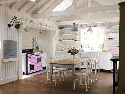 The days of standard stainless steel appliances are long gone. Stoves, ovens, and refrigerators are built into the cabinetry. They contribute to your color scheme, too. Appliances can add bright pops of color to this space or echo your cabinetry’s tone. Pink is a wonderful, fashionable shade to use as an appliance accent. Window design is just as creative, with feature windows acting as highlights.