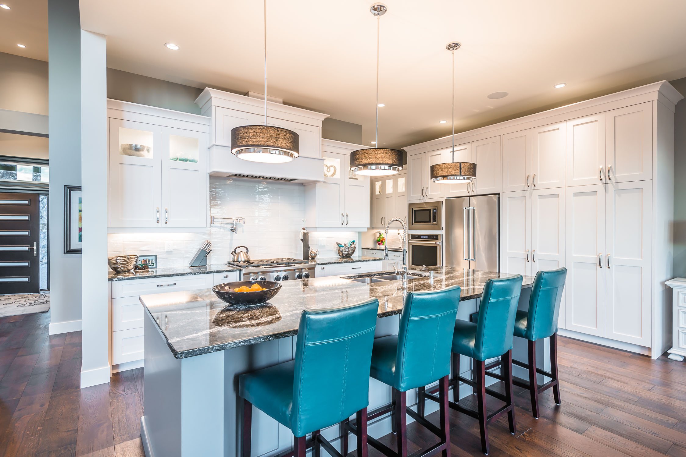 “Light & Bright” are the items our client wanted us to focus on, with “Light” we wanted to capture as much as natural light from the large windows as possible. As for “Bright” we kept most of the finishes grey and white and clean. Pops of colour and warm hardwood flooring tie the entire space together.