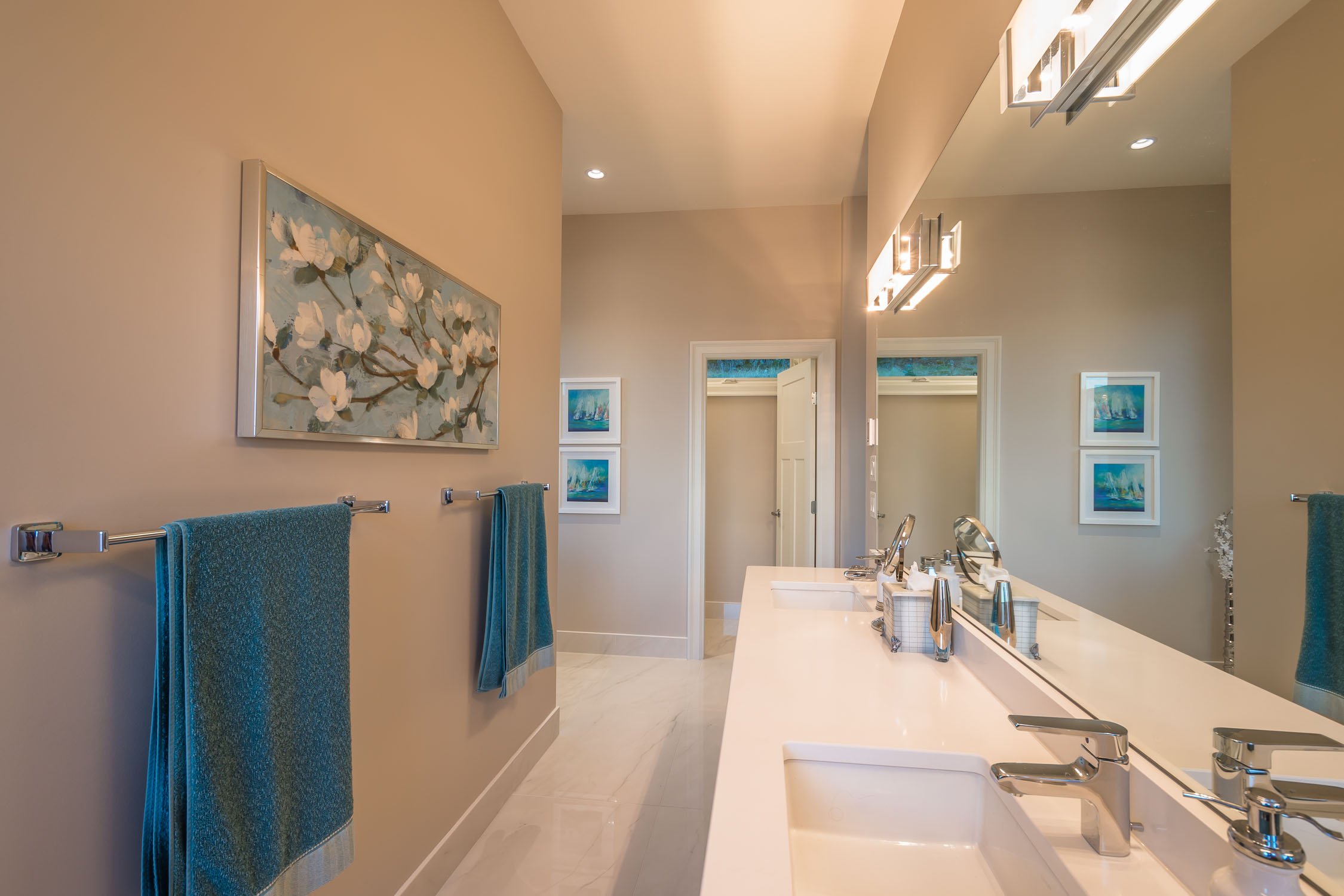 This modern-style executive home takes full advantage of the views and rocky terrain. The homeowners are retirees whose goal was to build a home that they could age in place in. Taking their needs into consideration, we created a large open concept design that takes advantage of the natural light and scenery while enabling the owners full accessibility throughout. All the primary rooms are located on the main floor with guest and additional spaces on lower floors. All door widths were increased and a roll thru shower was installed to allow for wheelchair accessibility if required in the future. The entire house is controlled by a state of the art iPad home automation system controlling media, mechanical systems, lighting & security.