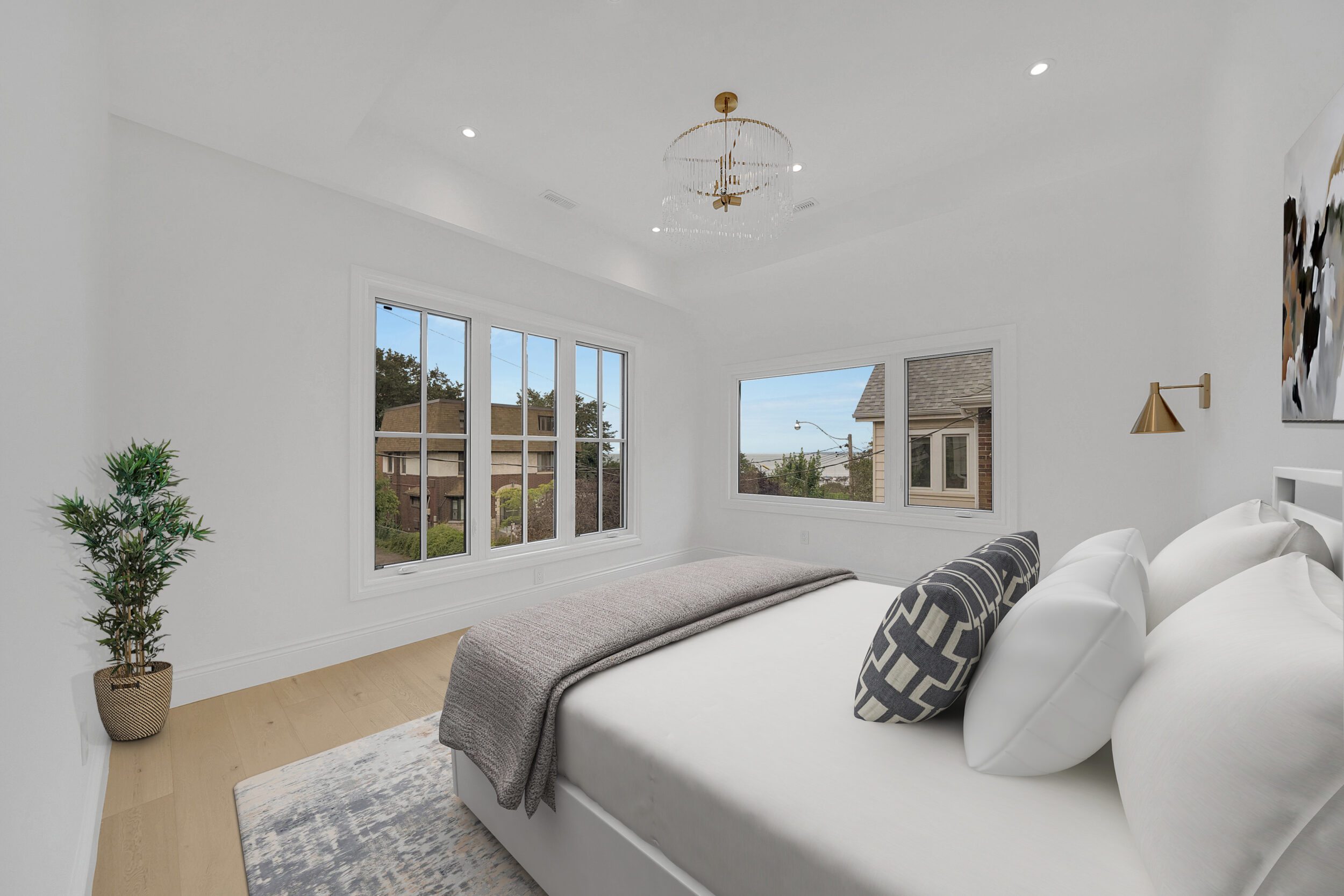 What makes this home a showstopper? Let’s start with the jaw-dropping modern façade, complete with sleek lines and expansive windows that invite natural light into every corner. Inside, the primary bedroom suite steals the show, with stunning corner windows offering sweeping lake views and a spa-like bathroom that redefines relaxation.