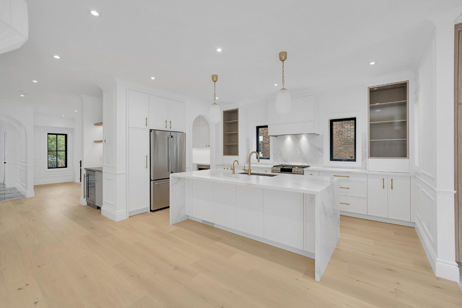 Open-Concept Living Space: The interior has been reconfigured to create a spacious, open-concept living area that seamlessly connects the kitchen, dining, and living rooms. This design enhances natural light flow and provides a perfect setting for entertaining.