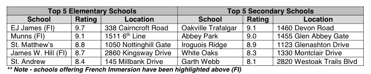 Based on The Fraser Institute Rankings, below are the top 5 rated elementary and secondary schools in Oakville, ON. Keeping in mind that The Fraser Institute Rankings are solely based on academic scores and do not take into consideration other important factors such as the arts and athletic programs. These rankings are based on overall academic ratings out of 10in the 2016 academic year. Any rating above 6.0 is considered Above Average, meaning, they are teaching the basic skills of reading, writing, and arithmetic in an above average manner as determined by the standardized tests.