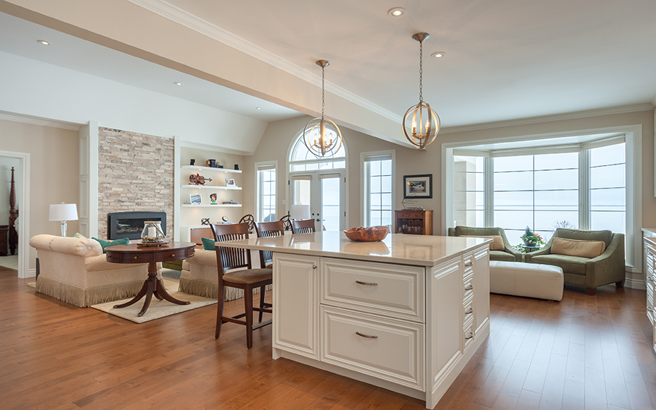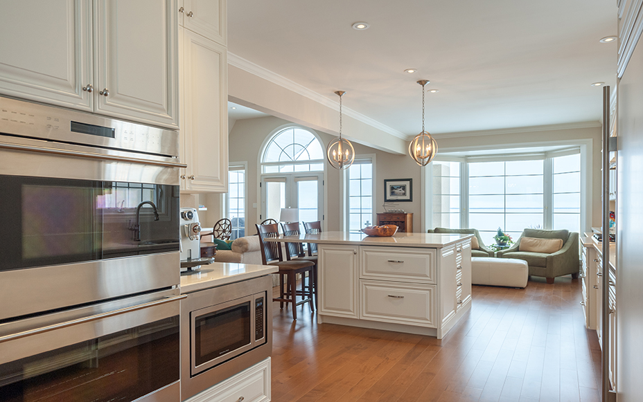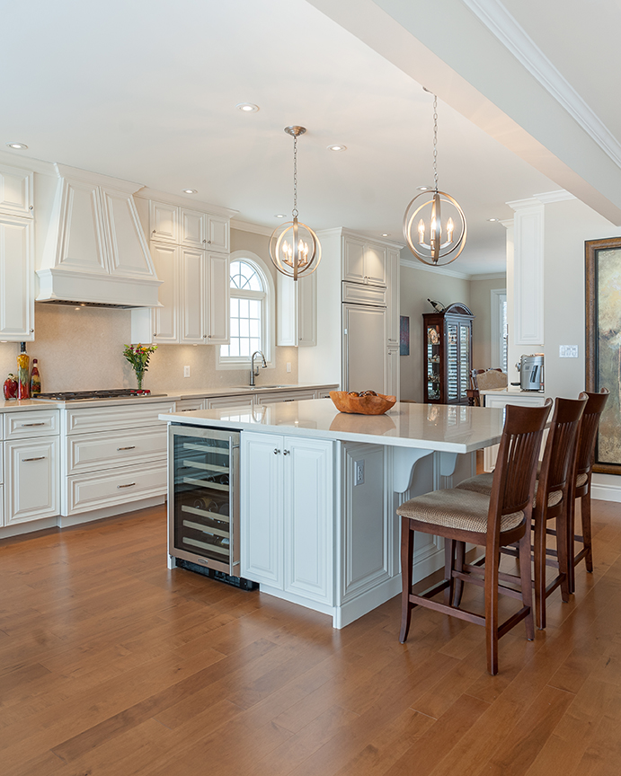 The main floor living space was totally transformed into a bright, open space that is fresh and inviting. The extensive kitchen is the heart of this home, and features loads of cabinet space, custom millwork, high-grade appliances, and details everywhere. The craftsmanship in this renovation is very fine.