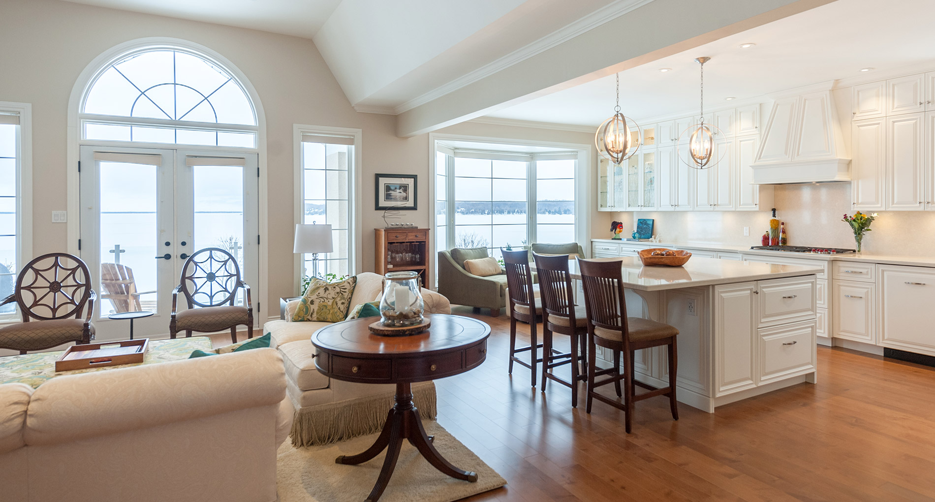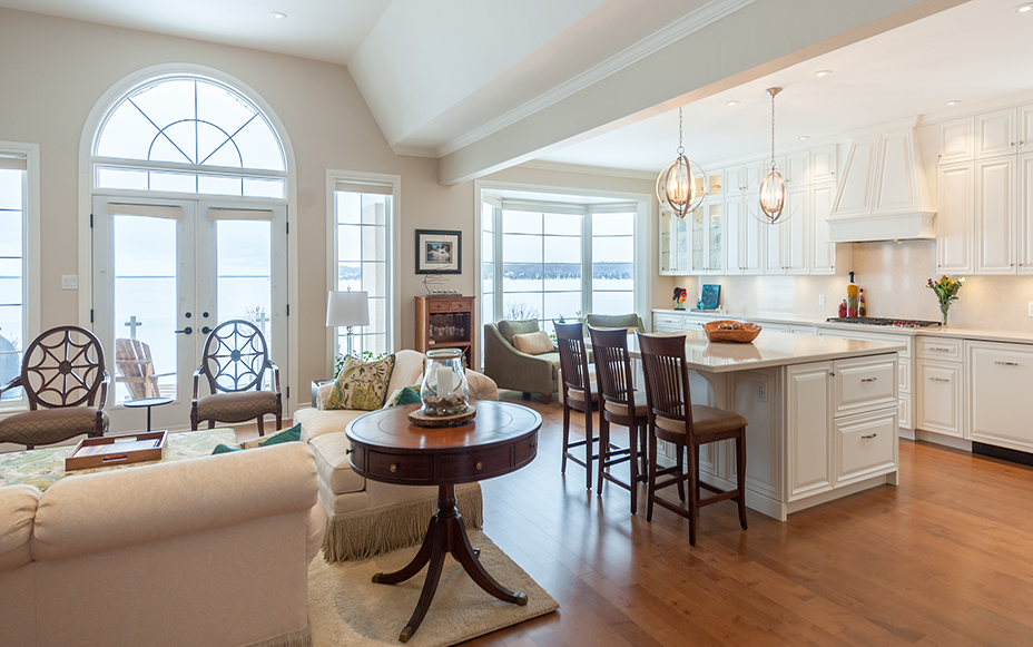 The main floor living space was totally transformed into a bright, open space that is fresh and inviting. The extensive kitchen is the heart of this home, and features loads of cabinet space, custom millwork, high-grade appliances, and details everywhere. The craftsmanship in this renovation is very fine.