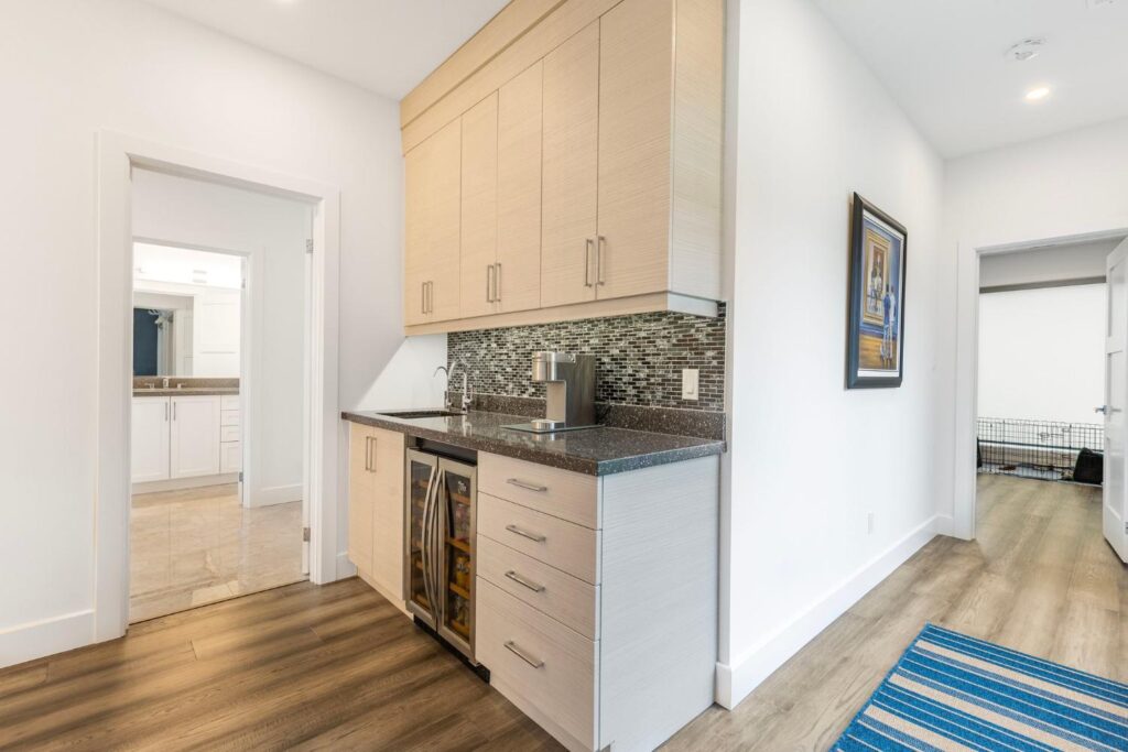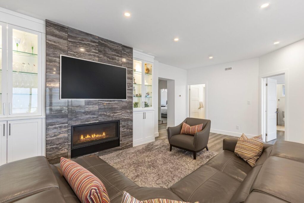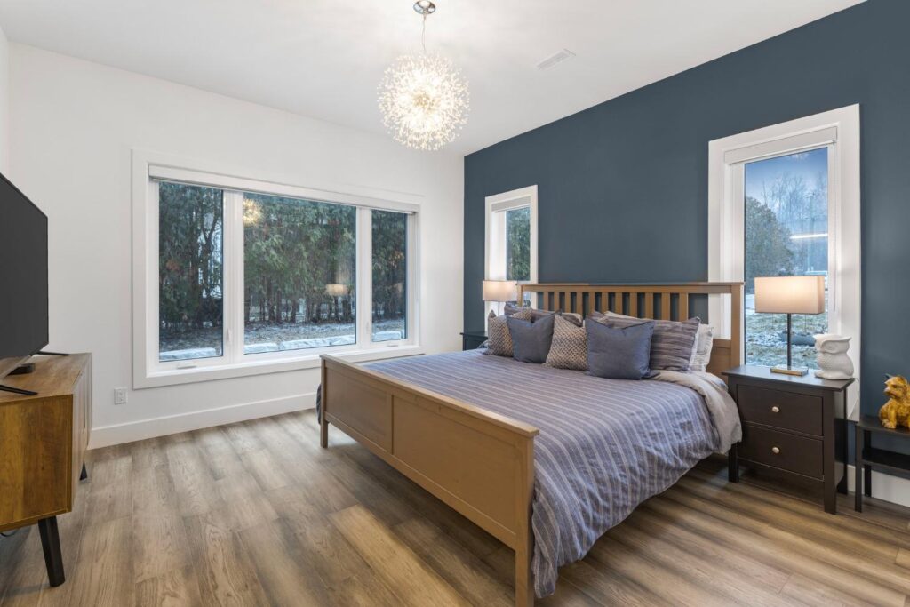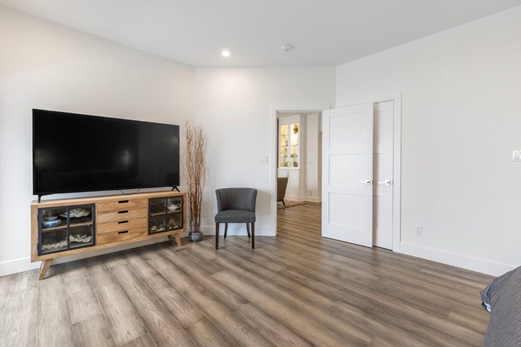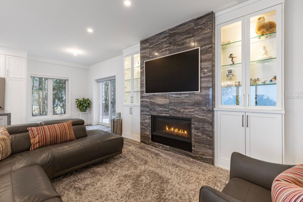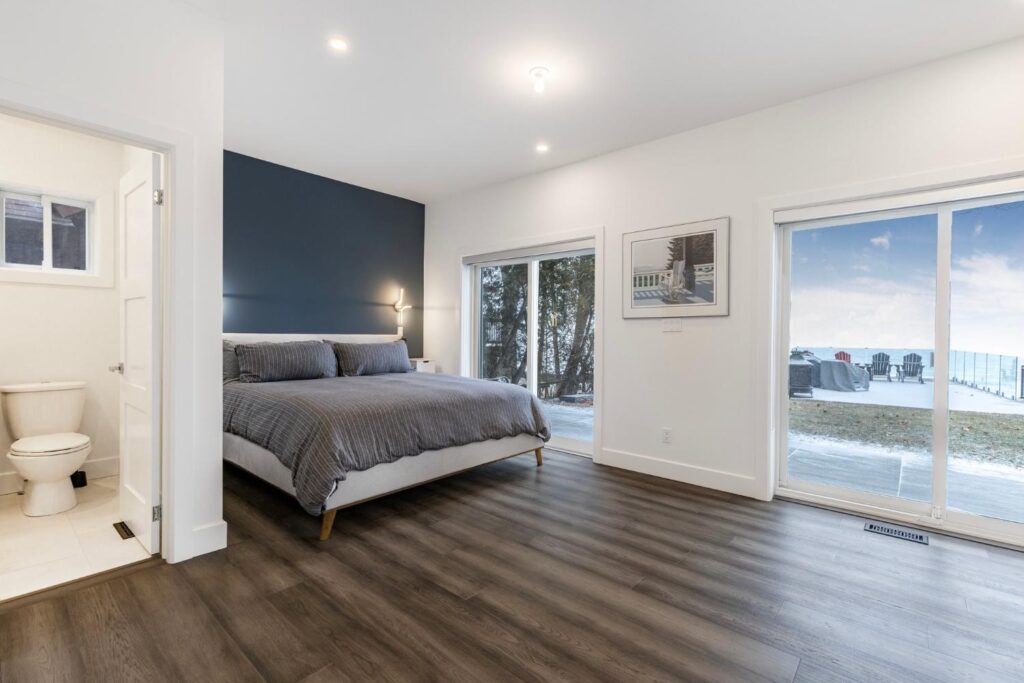 Upstairs, the master suite is a true oasis with a huge balcony overlooking the water, a spa-like ensuite, and a spacious walk-in closet. Outside, a beautifully landscaped garden leads to a private shoreline, offering direct access to the lake for endless water activities. The exterior of the home has been redesigned to enhance its curb appeal and blend seamlessly with the natural beauty of the lakefront setting.This renovation showcases our commitment to creating custom homes that exceed expectations in both design and craftsmanship. Contact us today to learn more about how we can turn your dream home into a reality.