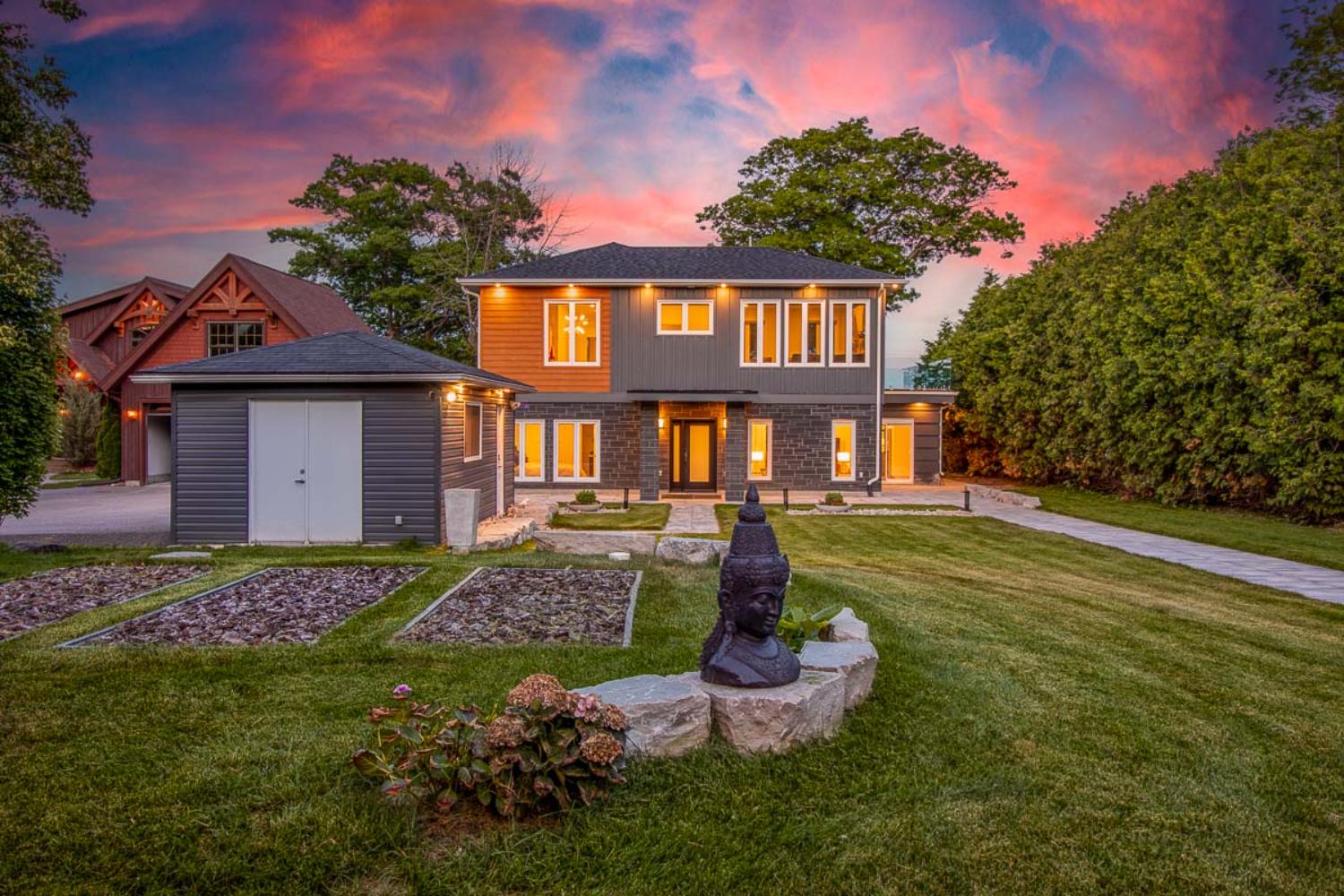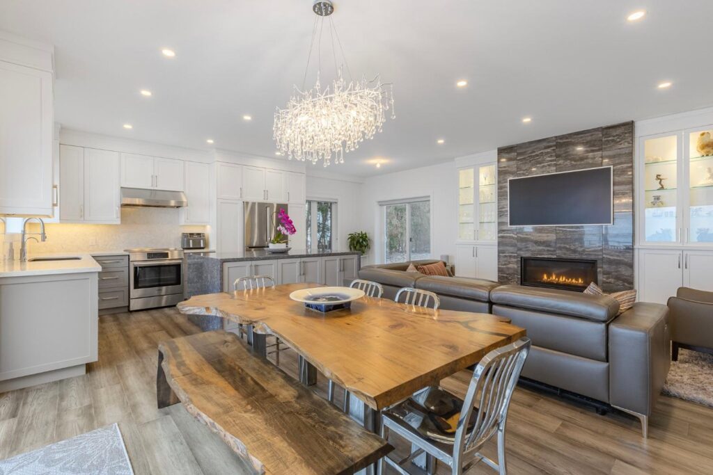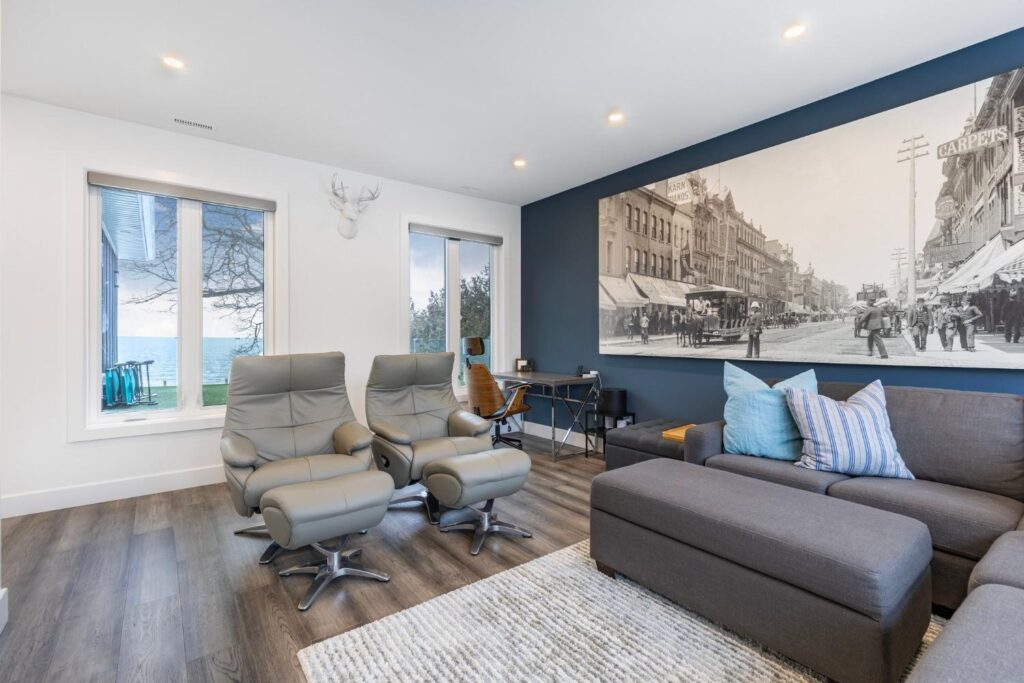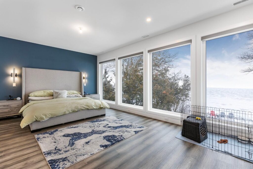 Experience the ultimate in lakeside luxury with our custom renovation of this once modest bungalow into a stunning two-story masterpiece. Our expert team has transformed this home into a modern retreat that seamlessly integrates with its natural surroundings.On the main floor, an open-concept living area offers breathtaking lake views through expansive windows. The gourmet kitchen features top-of-the-line appliances and stylish finishes, perfect for entertaining or quiet family meals.