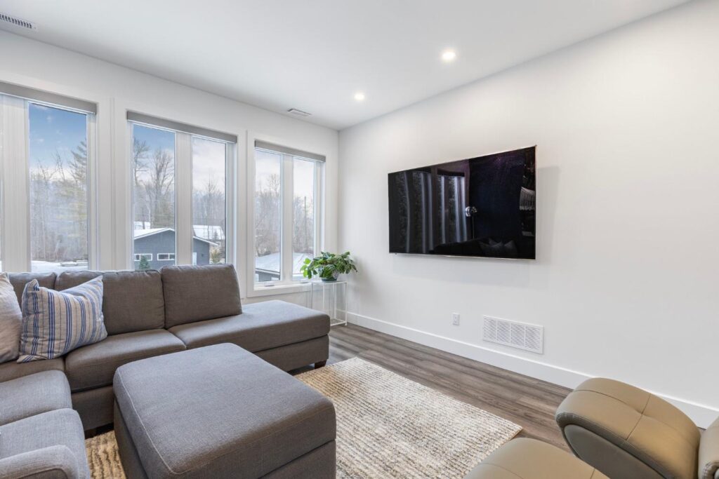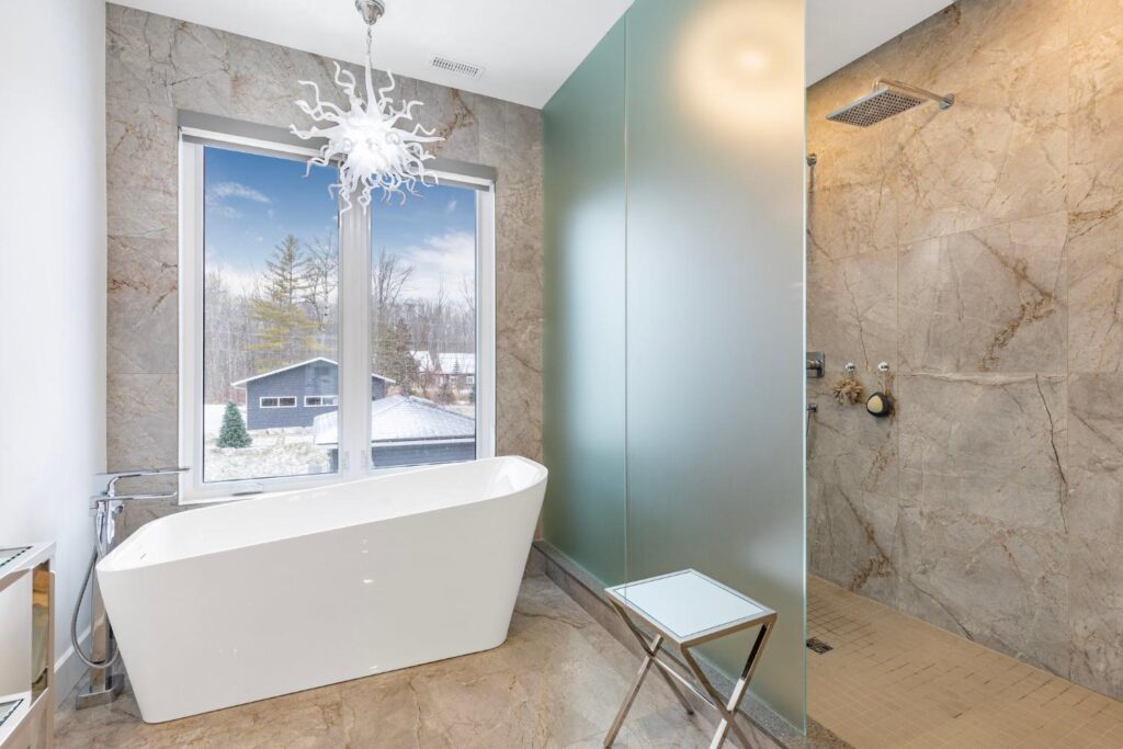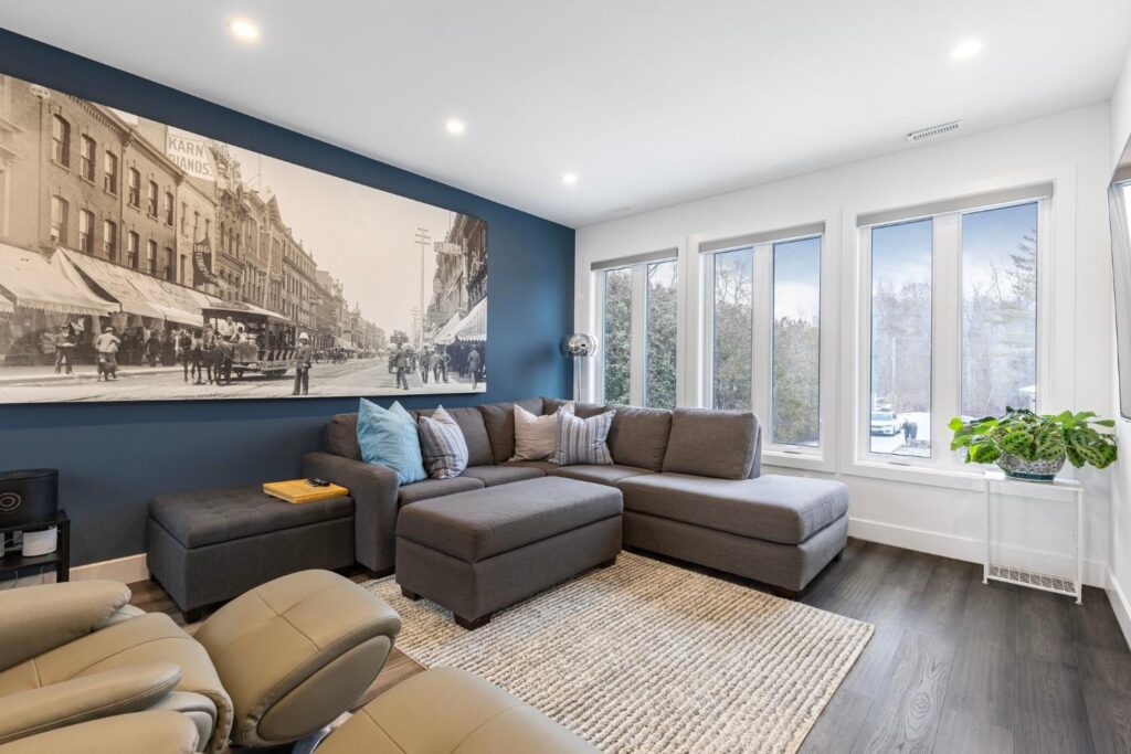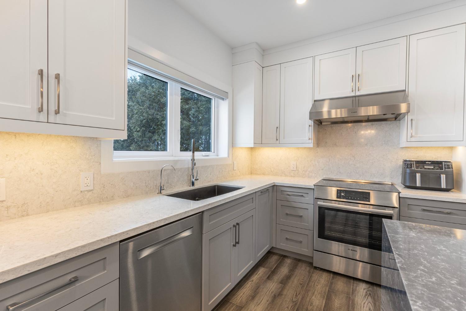 Experience the ultimate in lakeside luxury with our custom renovation of this once modest bungalow into a stunning two-story masterpiece. Our expert team has transformed this home into a modern retreat that seamlessly integrates with its natural surroundings.On the main floor, an open-concept living area offers breathtaking lake views through expansive windows. The gourmet kitchen features top-of-the-line appliances and stylish finishes, perfect for entertaining or quiet family meals.