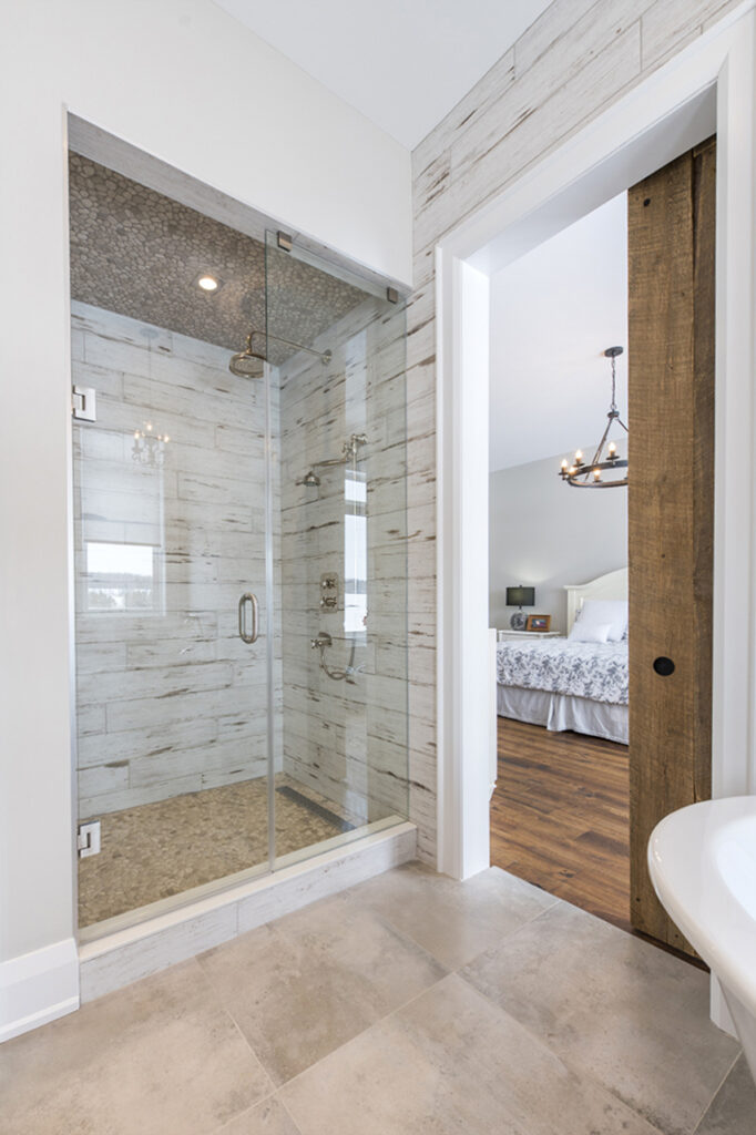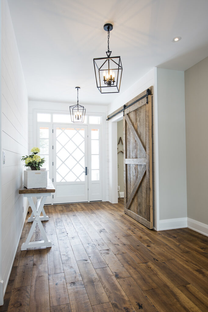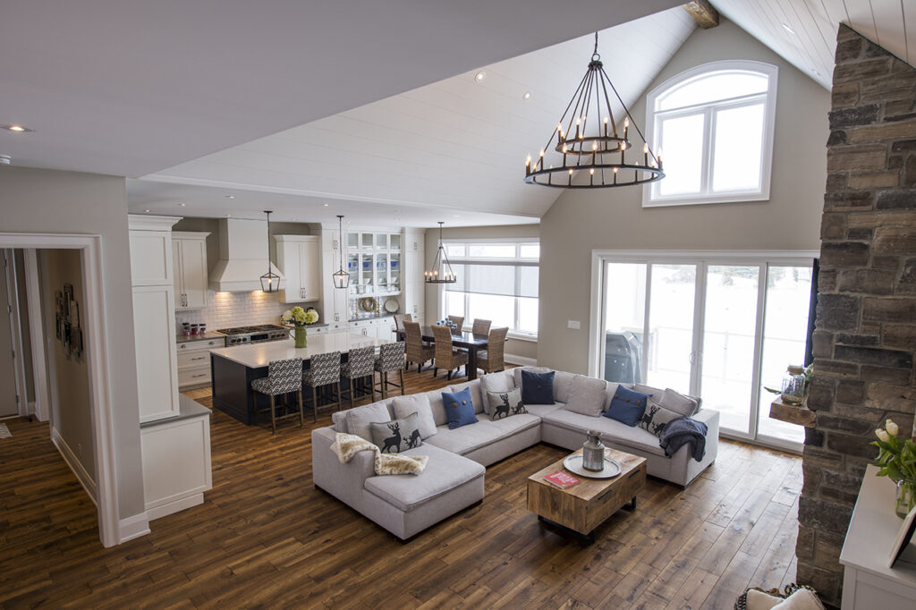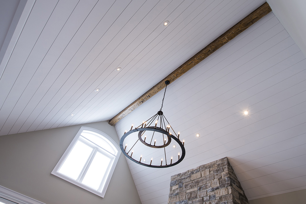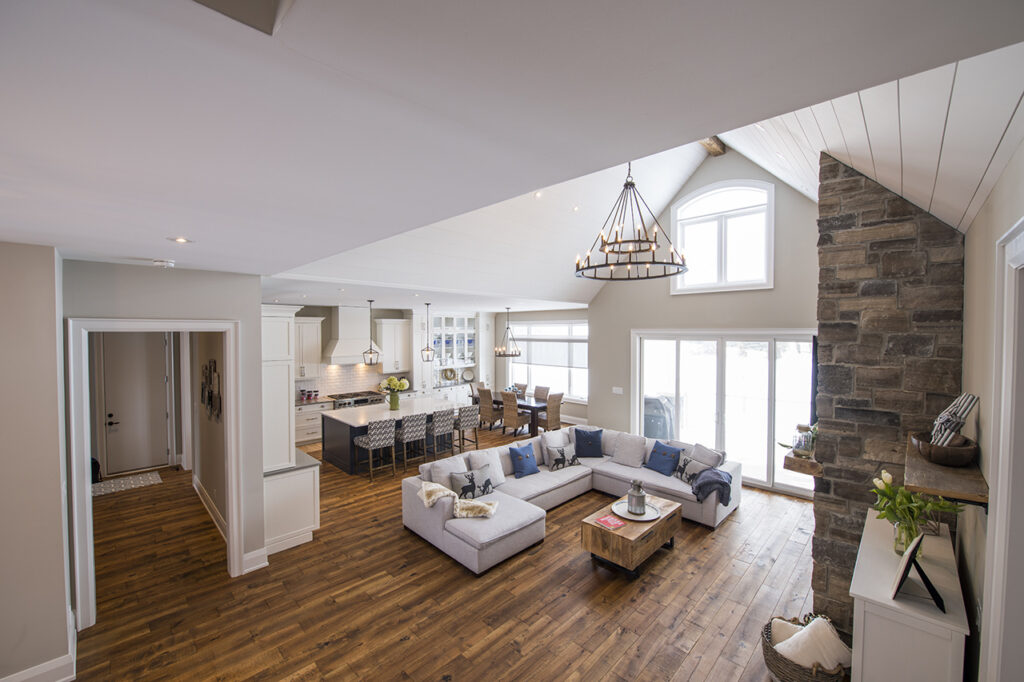 The beams in the living room are 300 years old and came from an old post office. The gorgeous fireplace is a Town & Country Fireplace with Essex County natural stone.