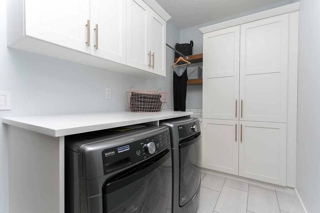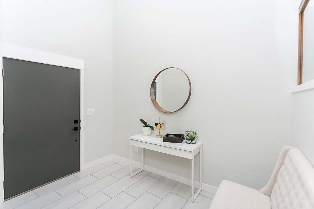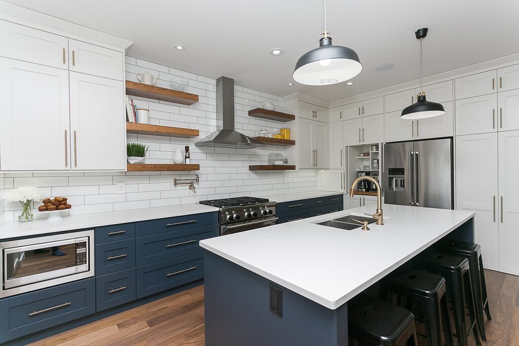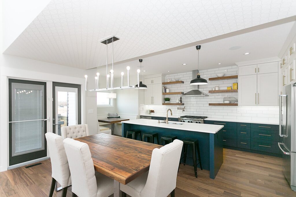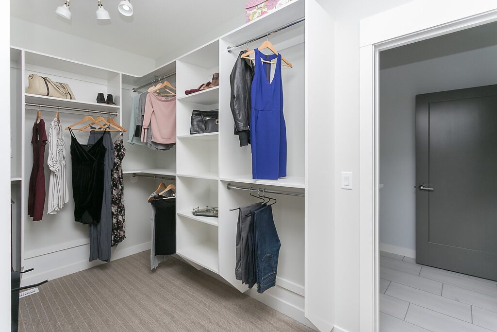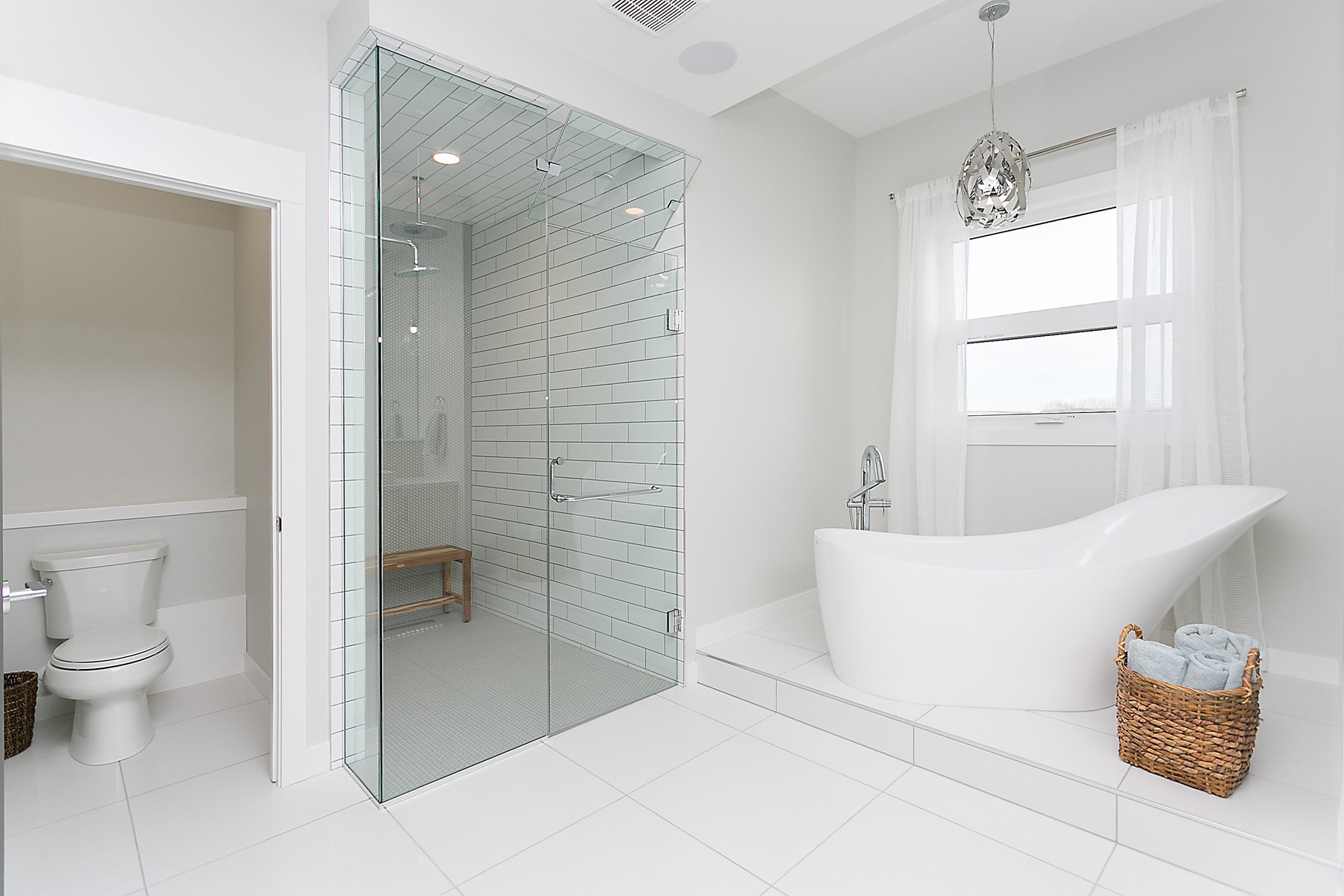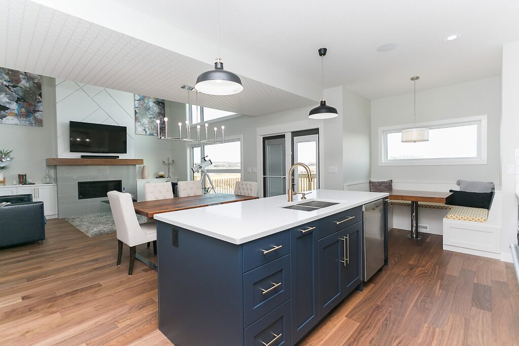 This modern custom home features a spacious open concept main floor with hardwood floors, large windows, and high ceilings. The master suite features a recessed ceiling, walk-in closet, sliding doors, and spa-like master bathroom.