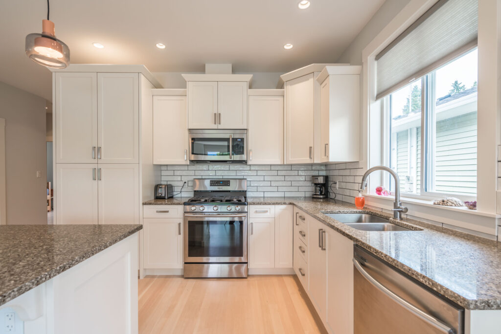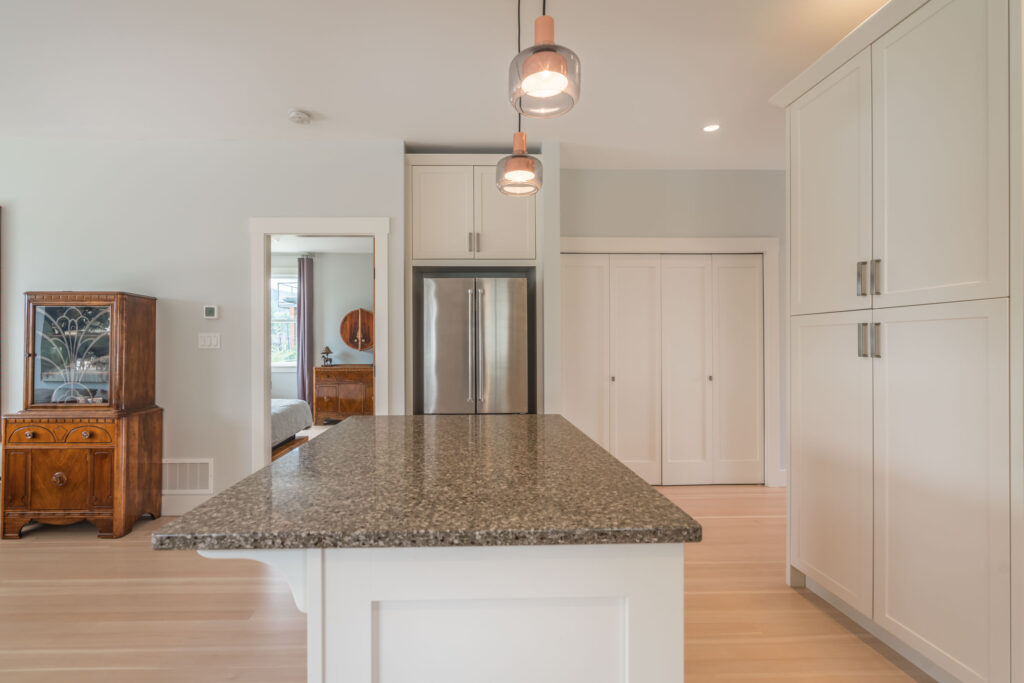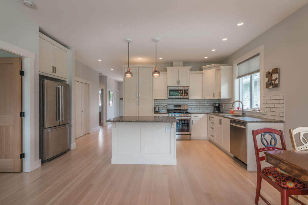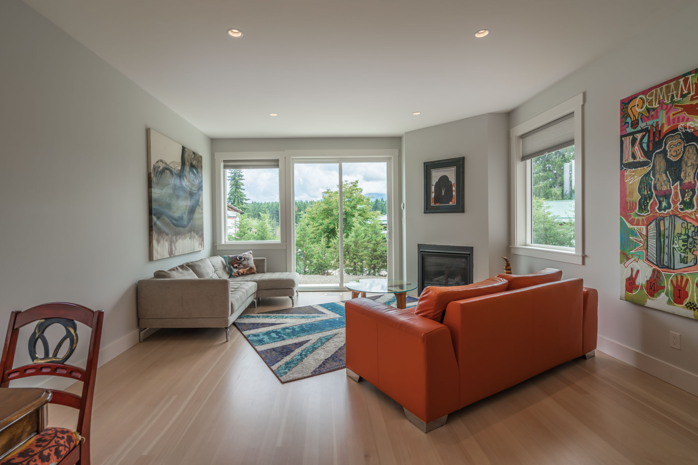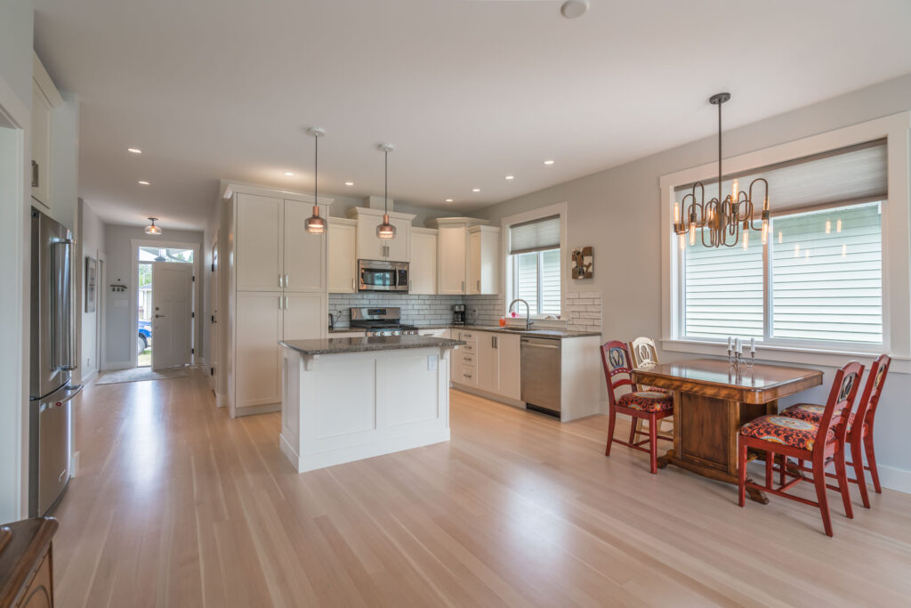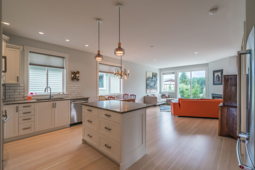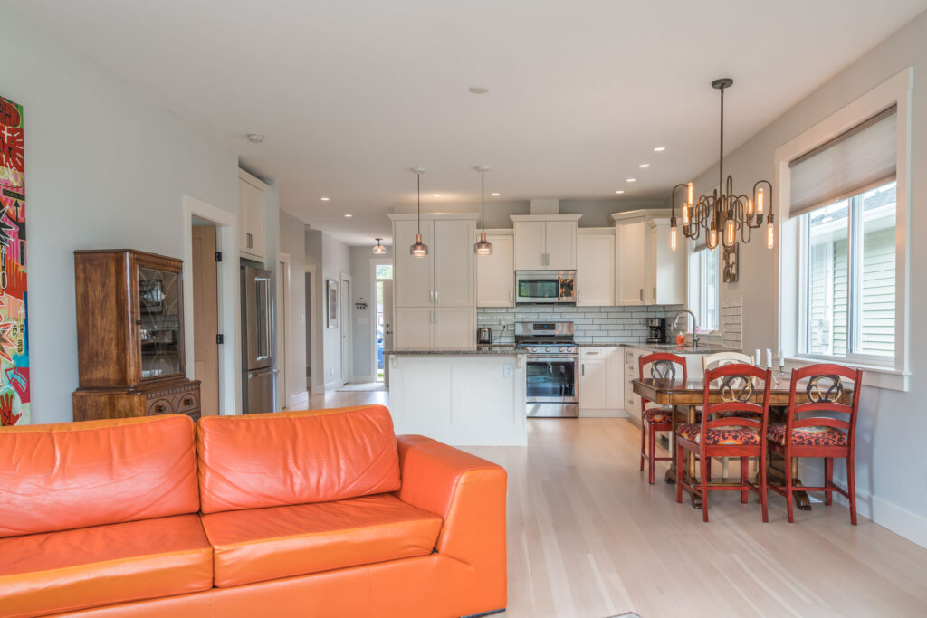 This 2-bedroom rancher features an open concept great room with large windows, creating a bright, inviting living space.