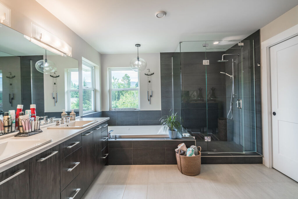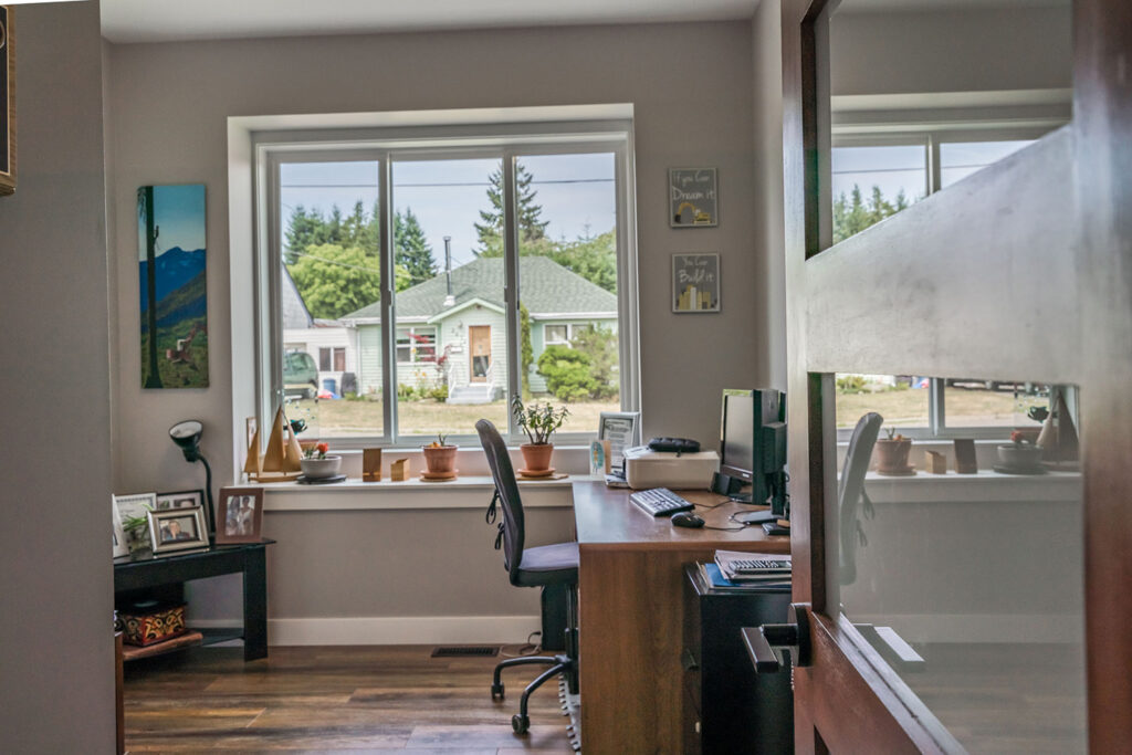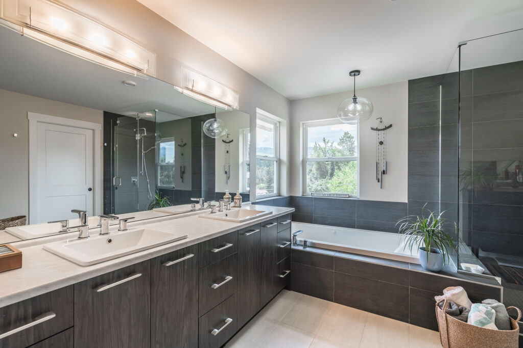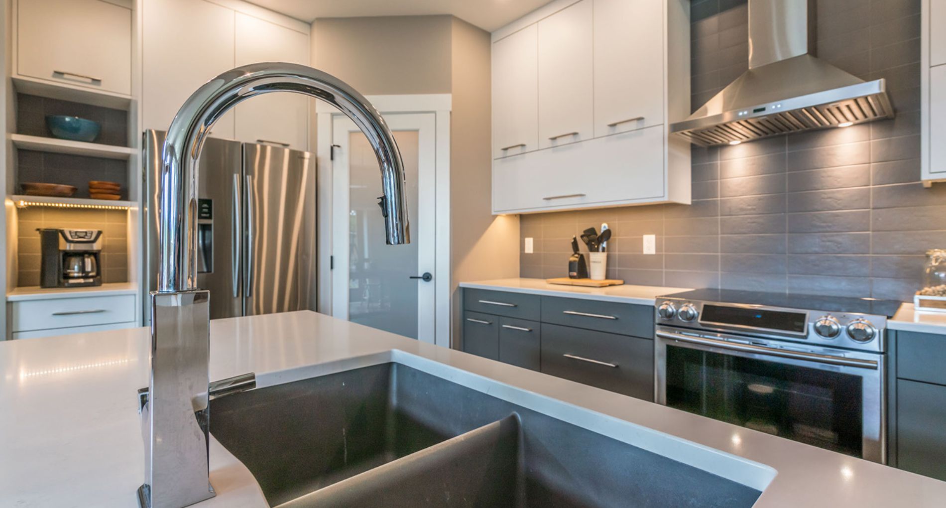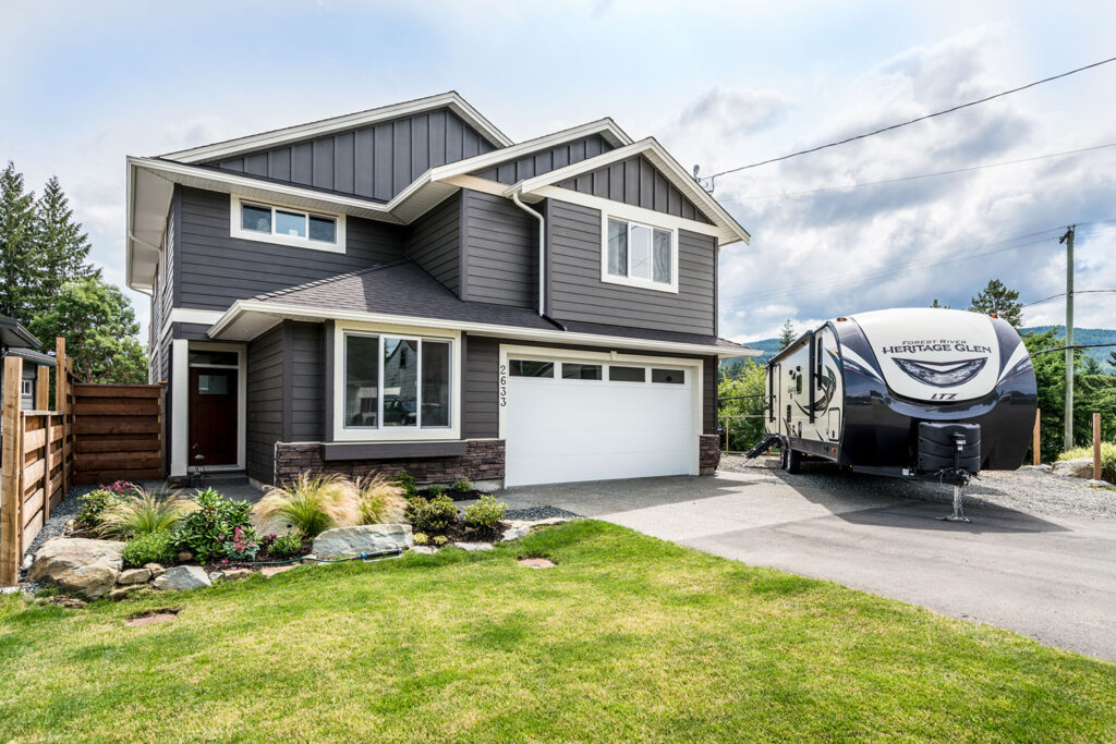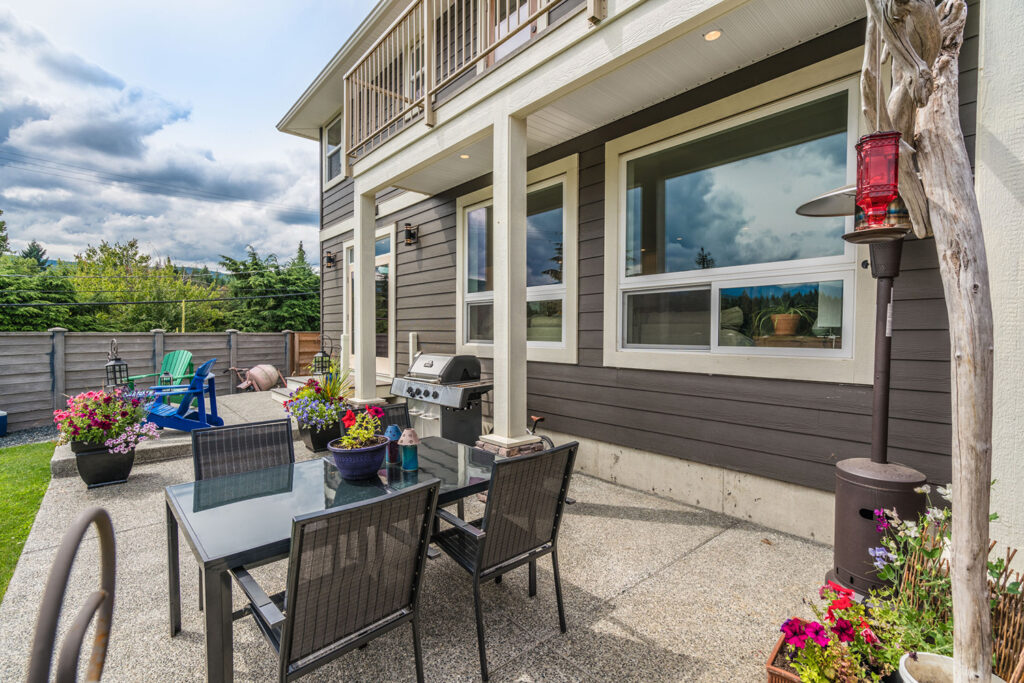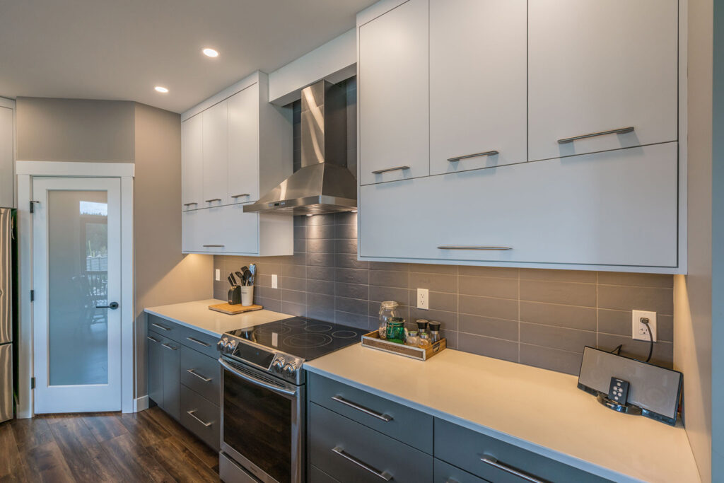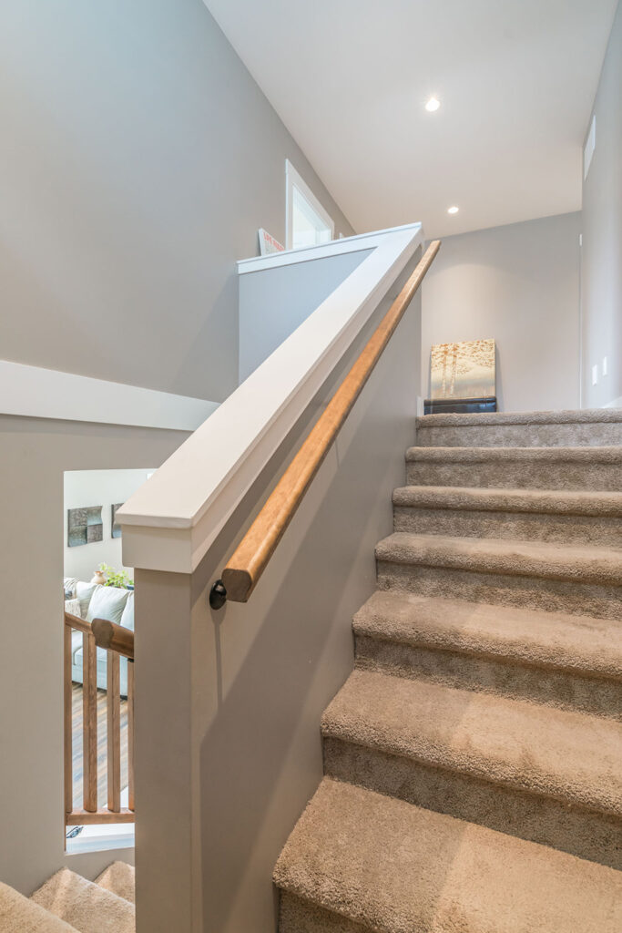 This 2 storey custom family home features an open concept main floor; combining the kitchen, dining, and living room into one bright and open space. The kitchen has lots of storage, including a beer and wine cooler built in to the kitchen island. A great space to relax or entertain guests in.