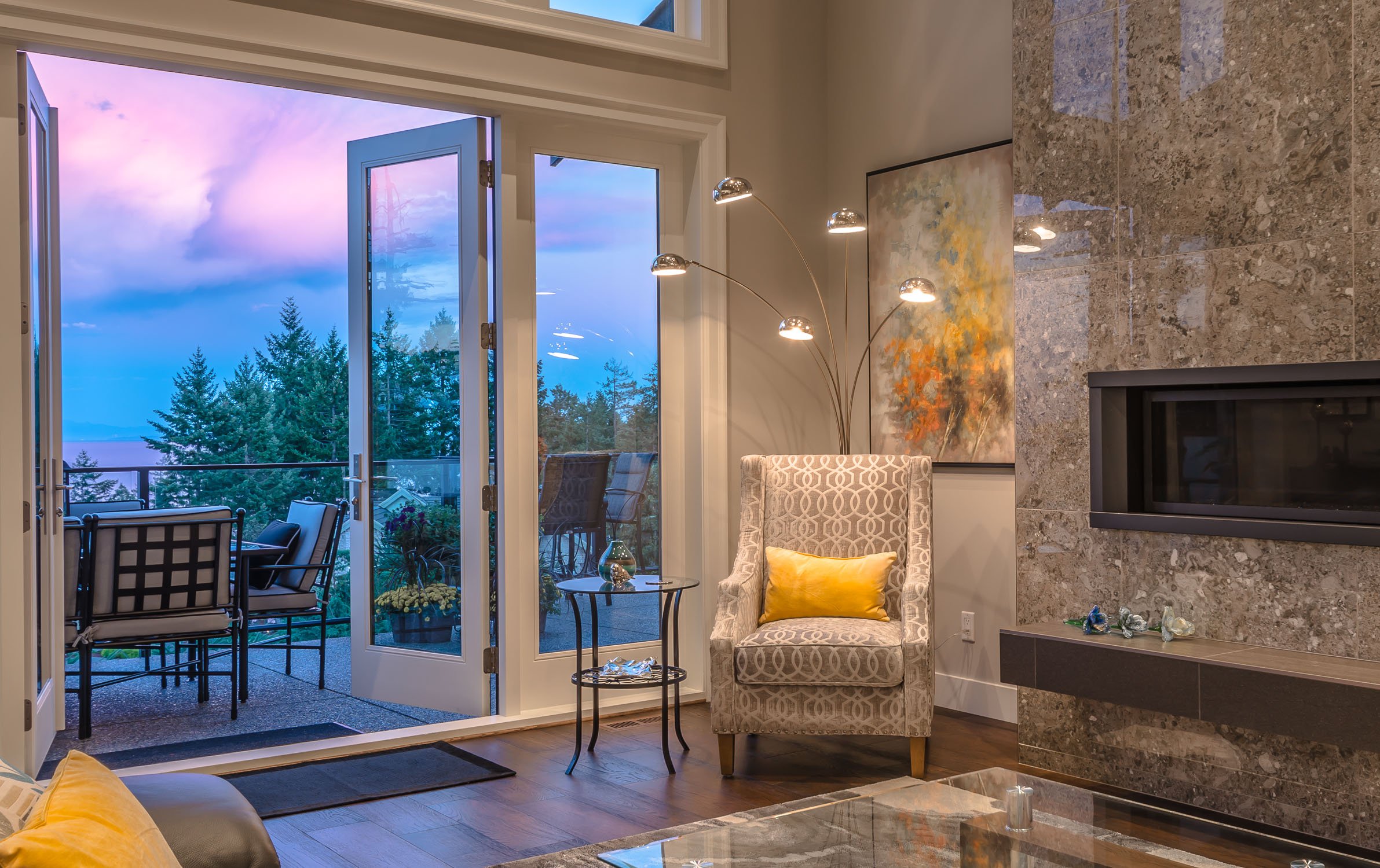 This modern-style executive home takes full advantage of the views and rocky terrain. The homeowners are retirees whose goal was to build a home that they could age in place in. Taking their needs into consideration, we created a large open concept design that takes advantage of the natural light and scenery while enabling the owners full accessibility throughout. All the primary rooms are located on the main floor with guest and additional spaces on lower floors. All door widths were increased and a roll thru shower was installed to allow for wheelchair accessibility if required in the future. The entire house is controlled by a state of the art iPad home automation system controlling media, mechanical systems, lighting & security.
