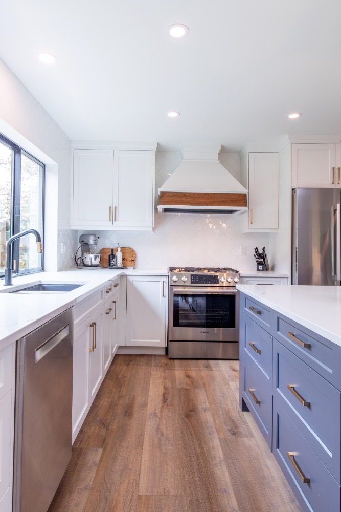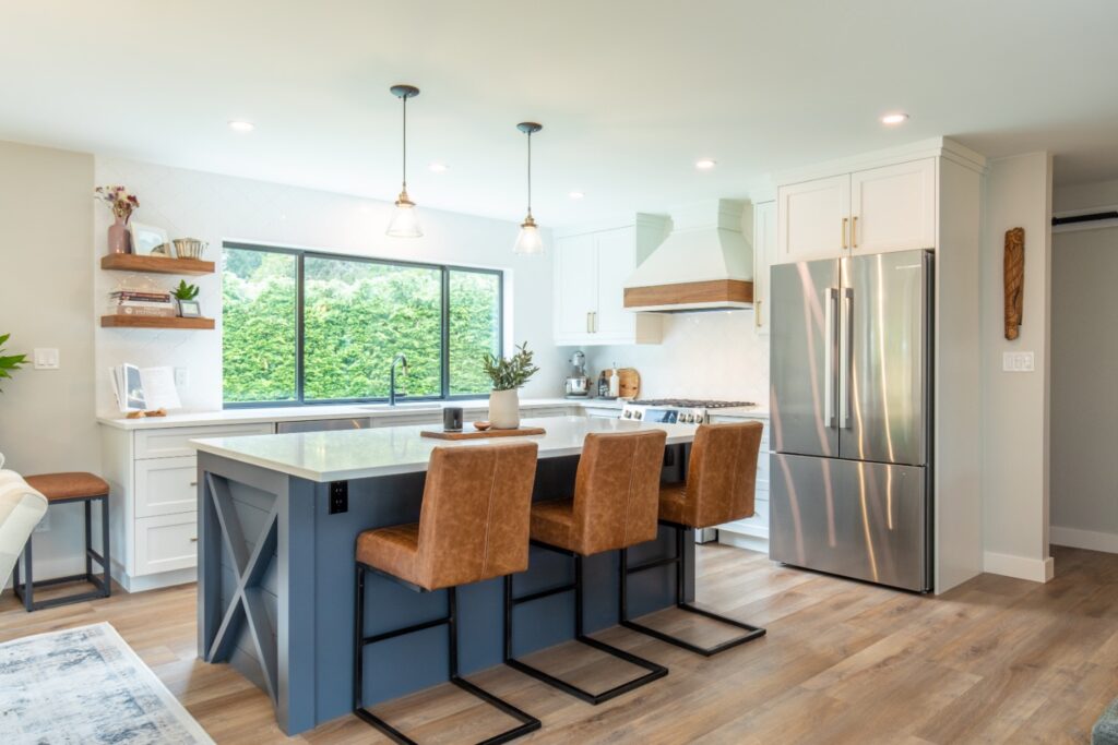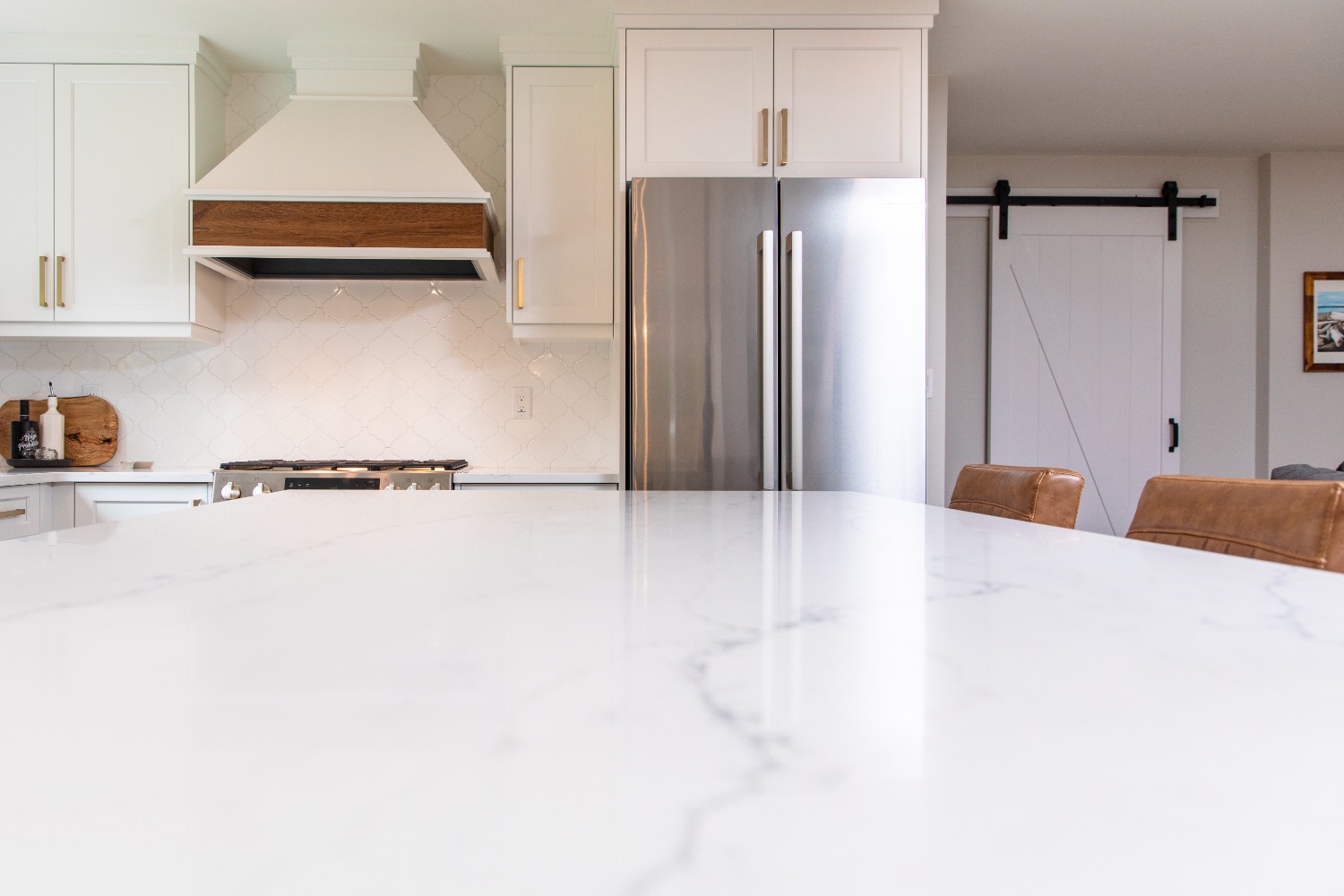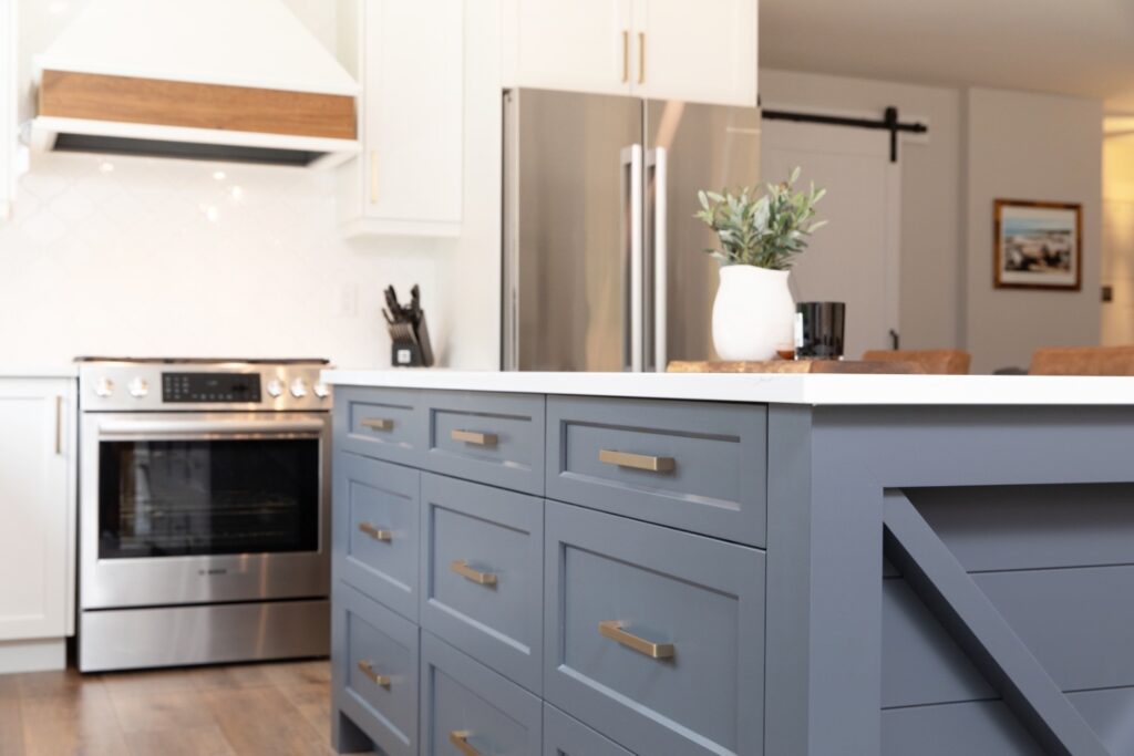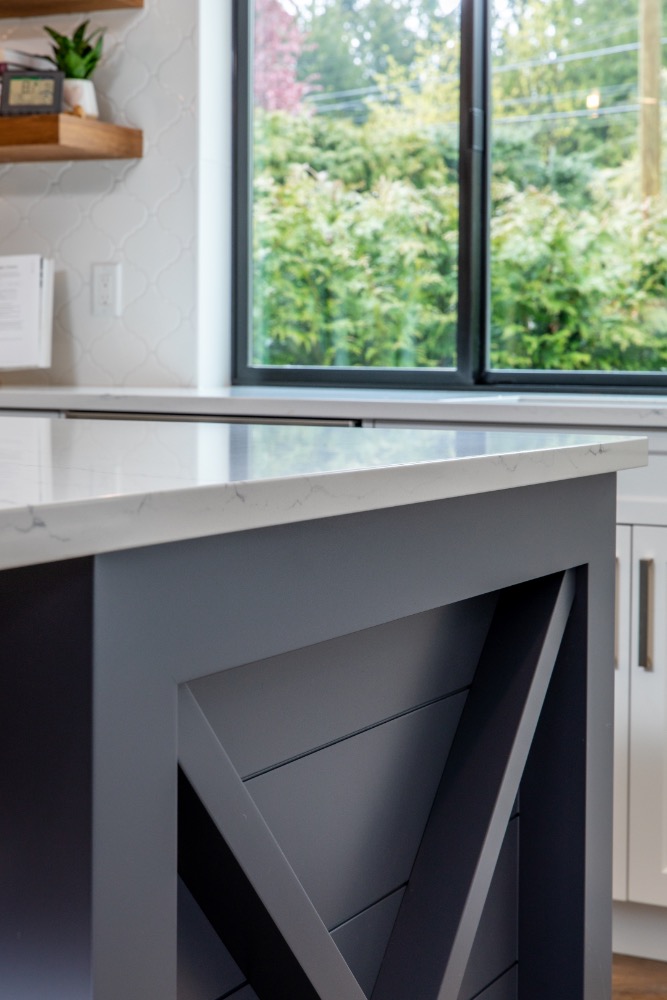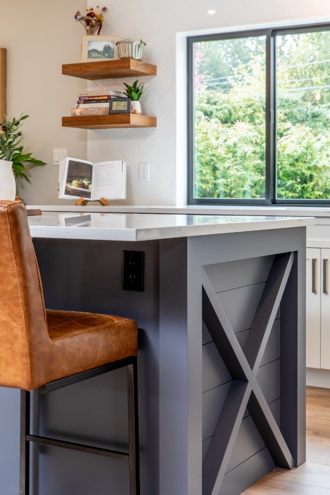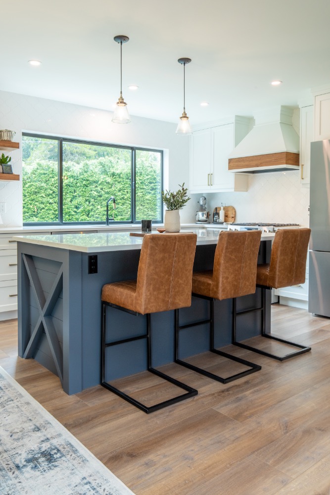 Spacious kitchen island with farmhouse-inspired details