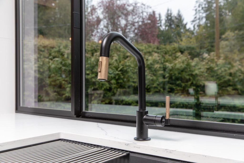 Large kitchen window with a counter-height sill for maximum natural light