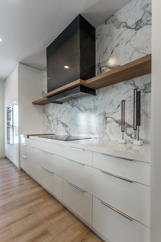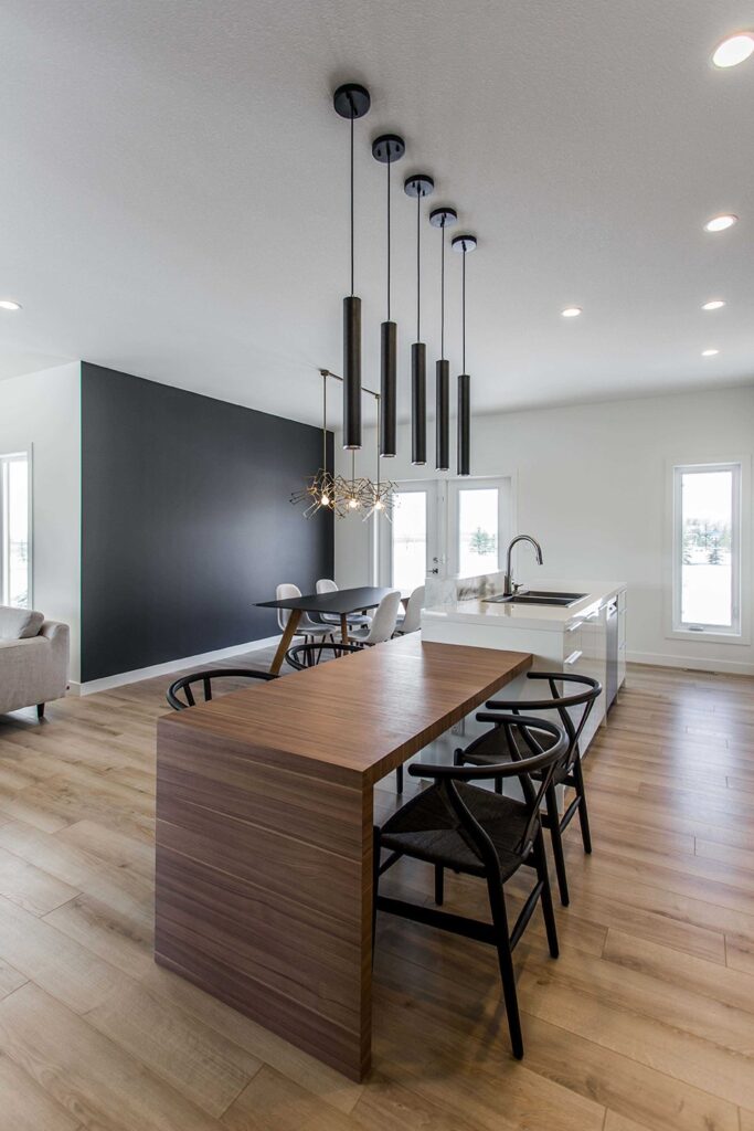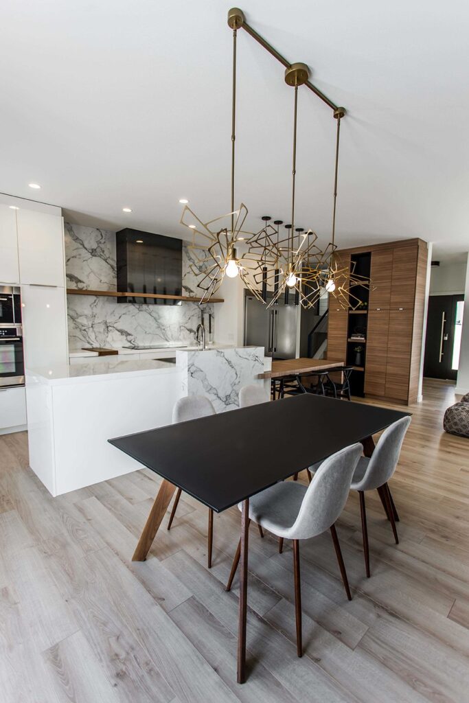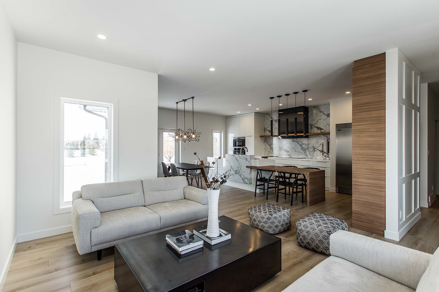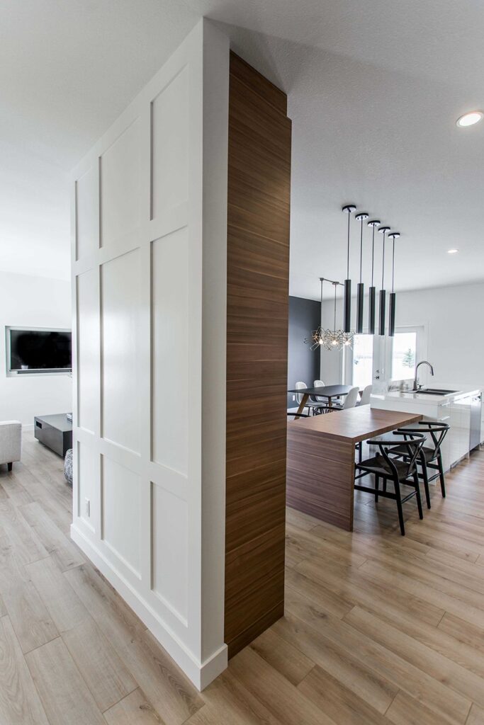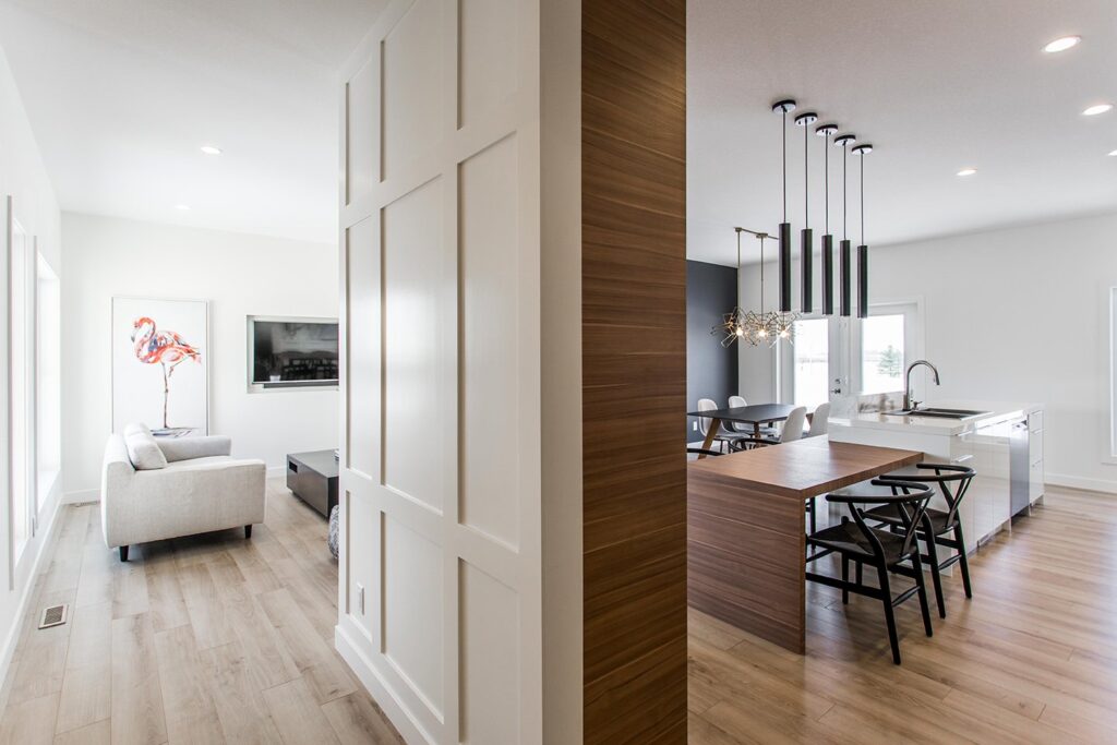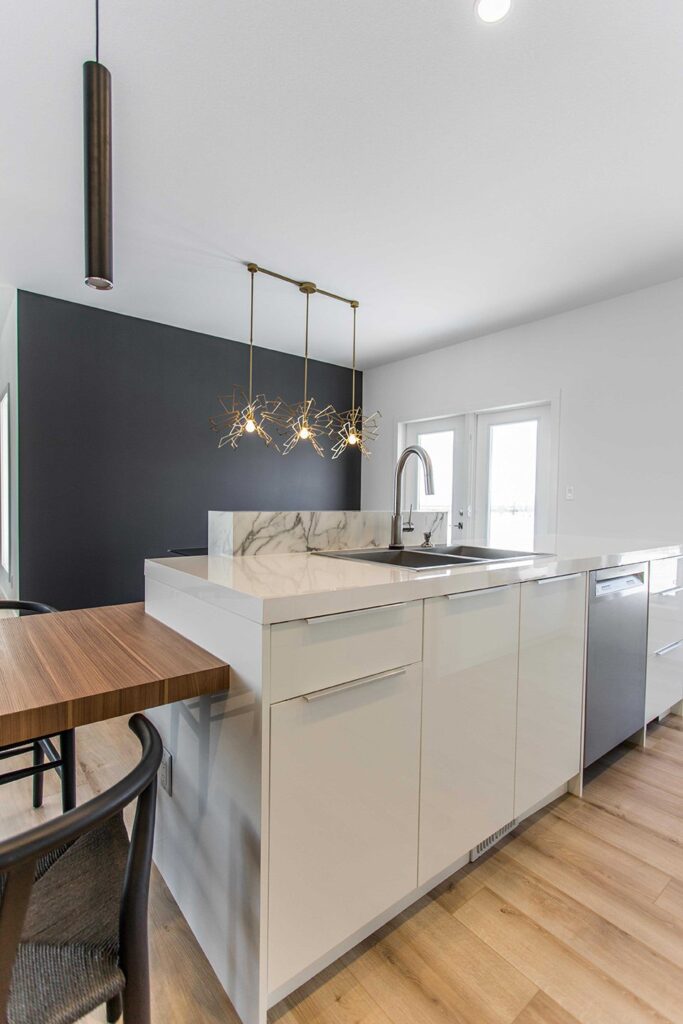 This home has a very cozy contemporary feel to it with a minimalist style. The space features high ceilings, light wood floors, and a beautiful custom kitchen.