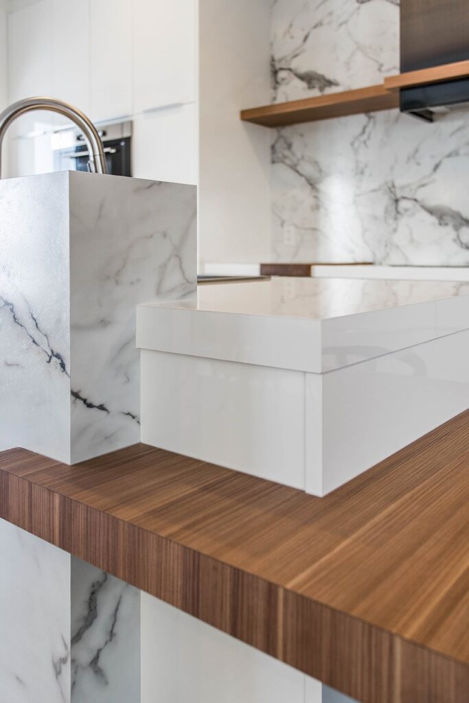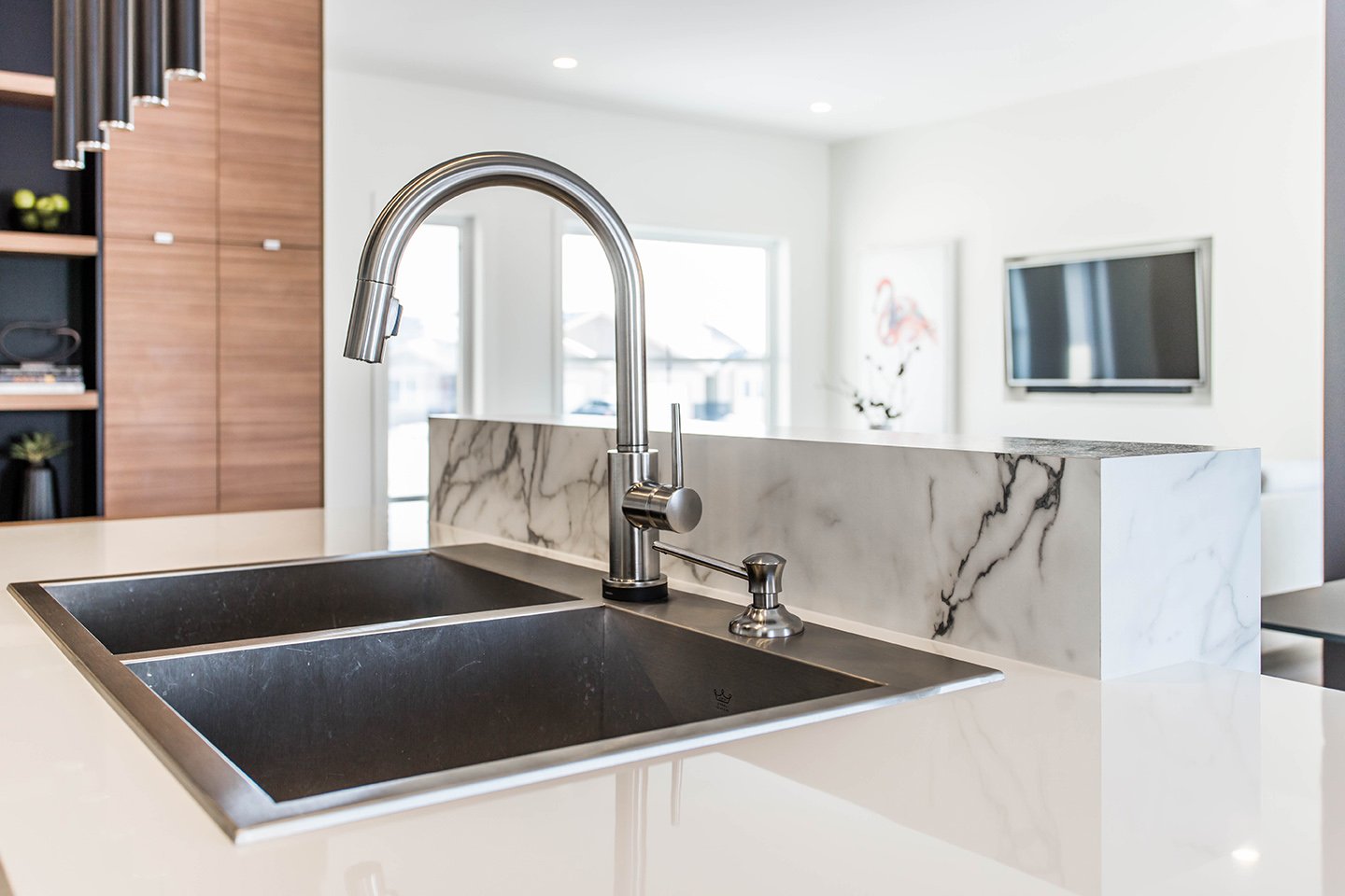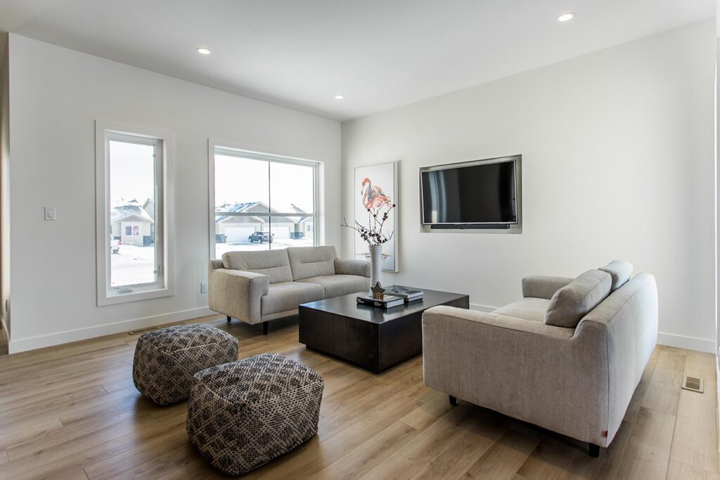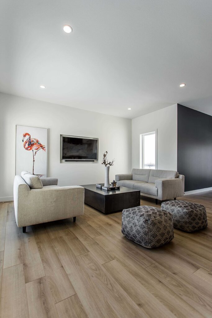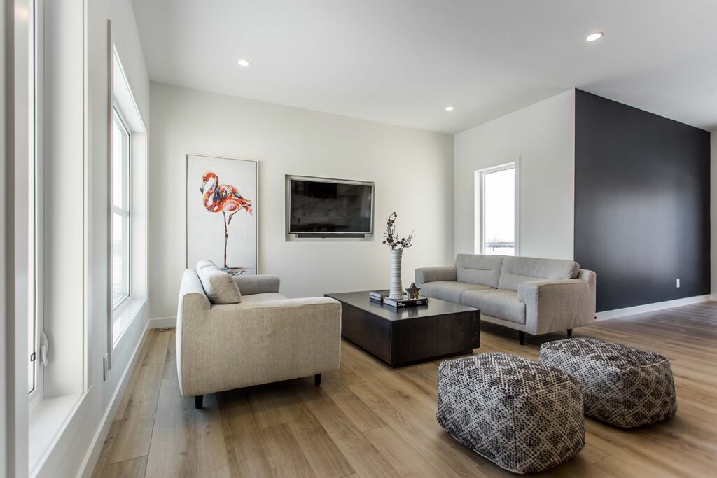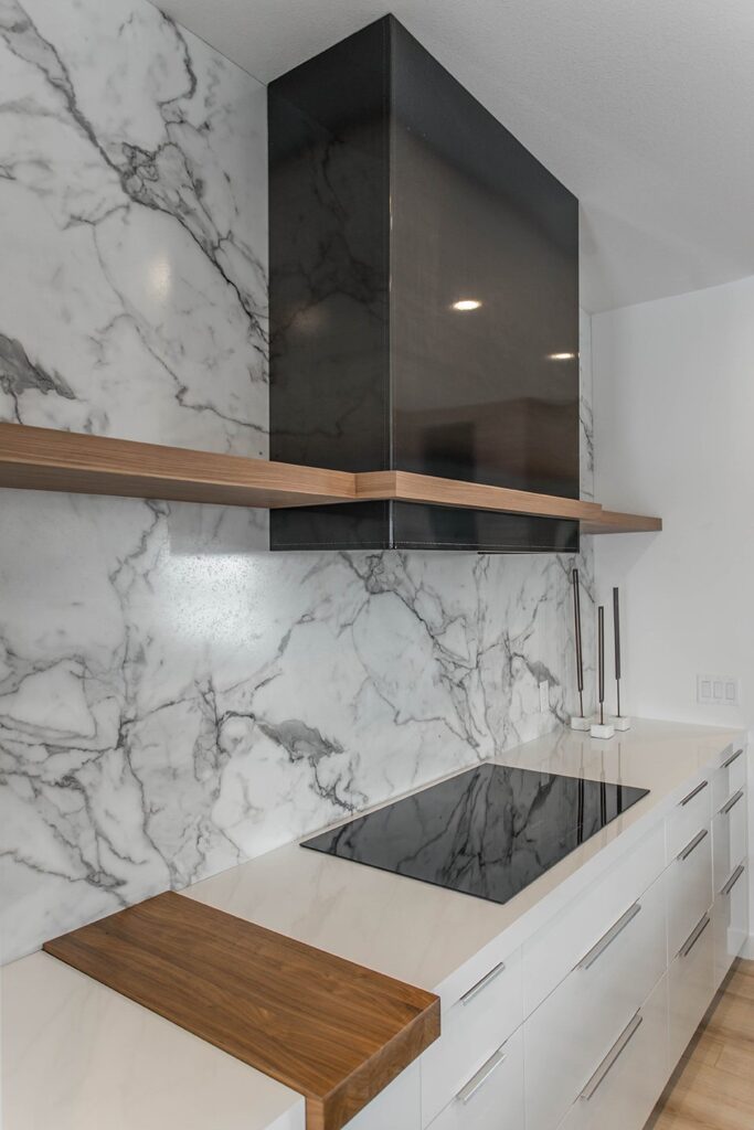 This home has a very cozy contemporary feel to it with a minimalist style. The space features high ceilings, light wood floors, and a beautiful custom kitchen.