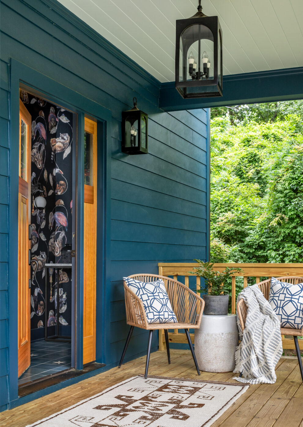 Now filled with creative expressions of the homeowners’ style, each design element (wallpaper, colorful tile, furniture, and more) pulls this home together into a coherent statement of better, joyful living.