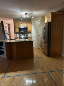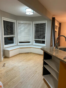 In this renovation there was relocated access to the family room within a load bearing wall, due to new kitchen placement. The new kitchen placement also required reframing a kitchen wall to change window layout to match new kitchen sink location, and framing a new wall to divide the kitchen and living room areas.