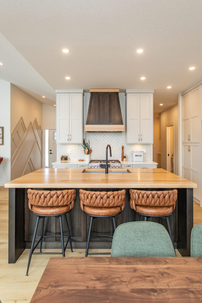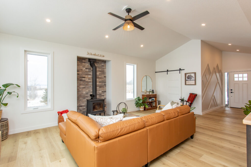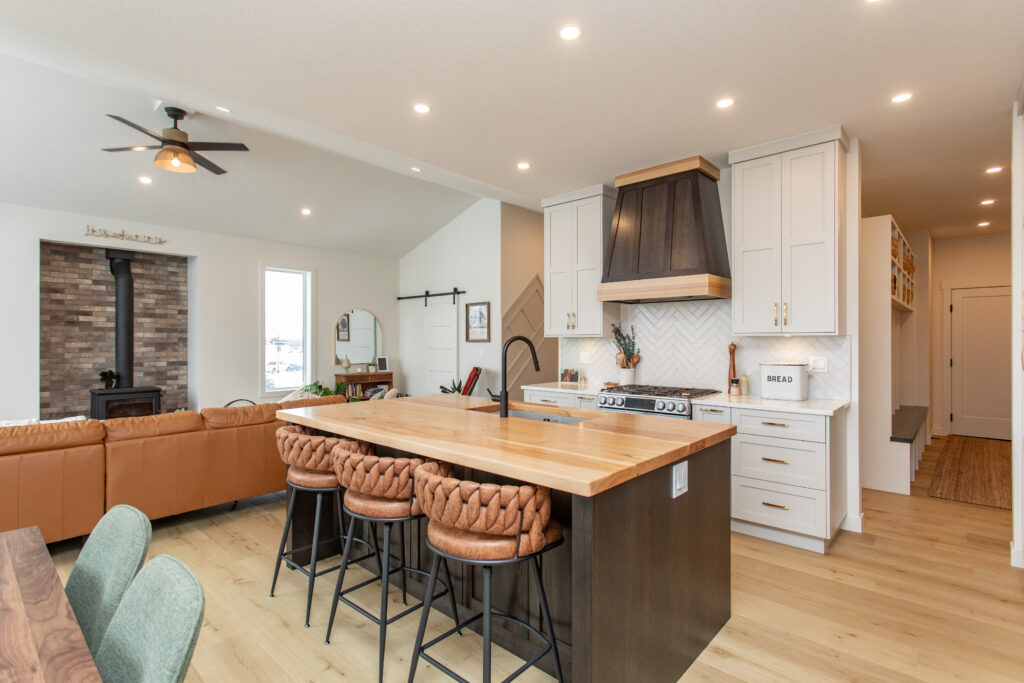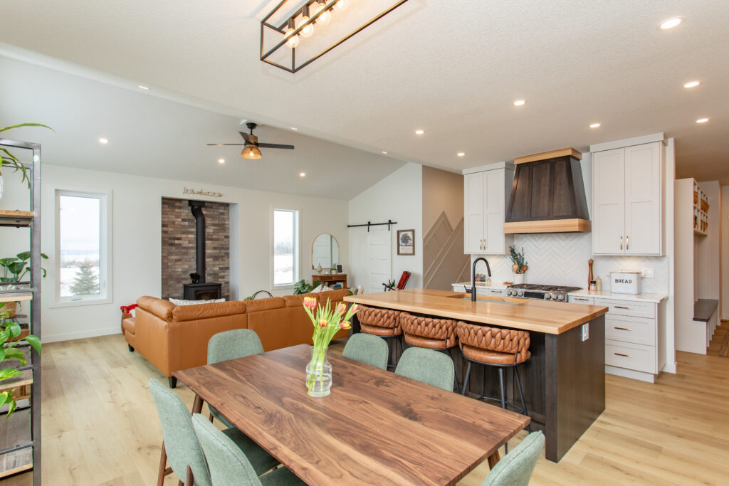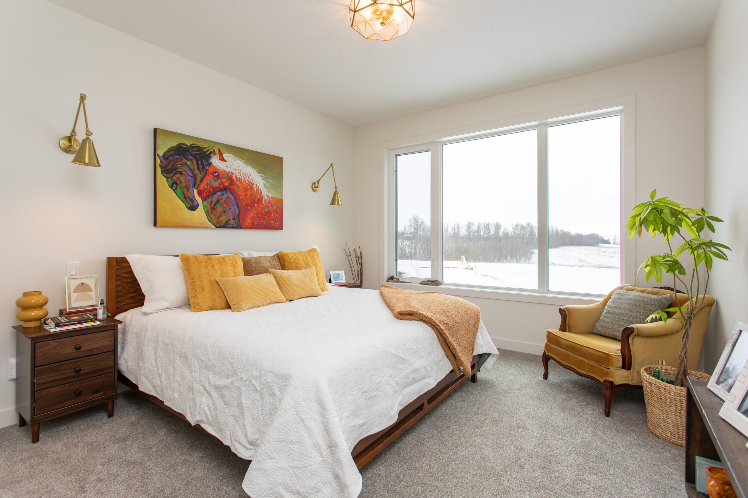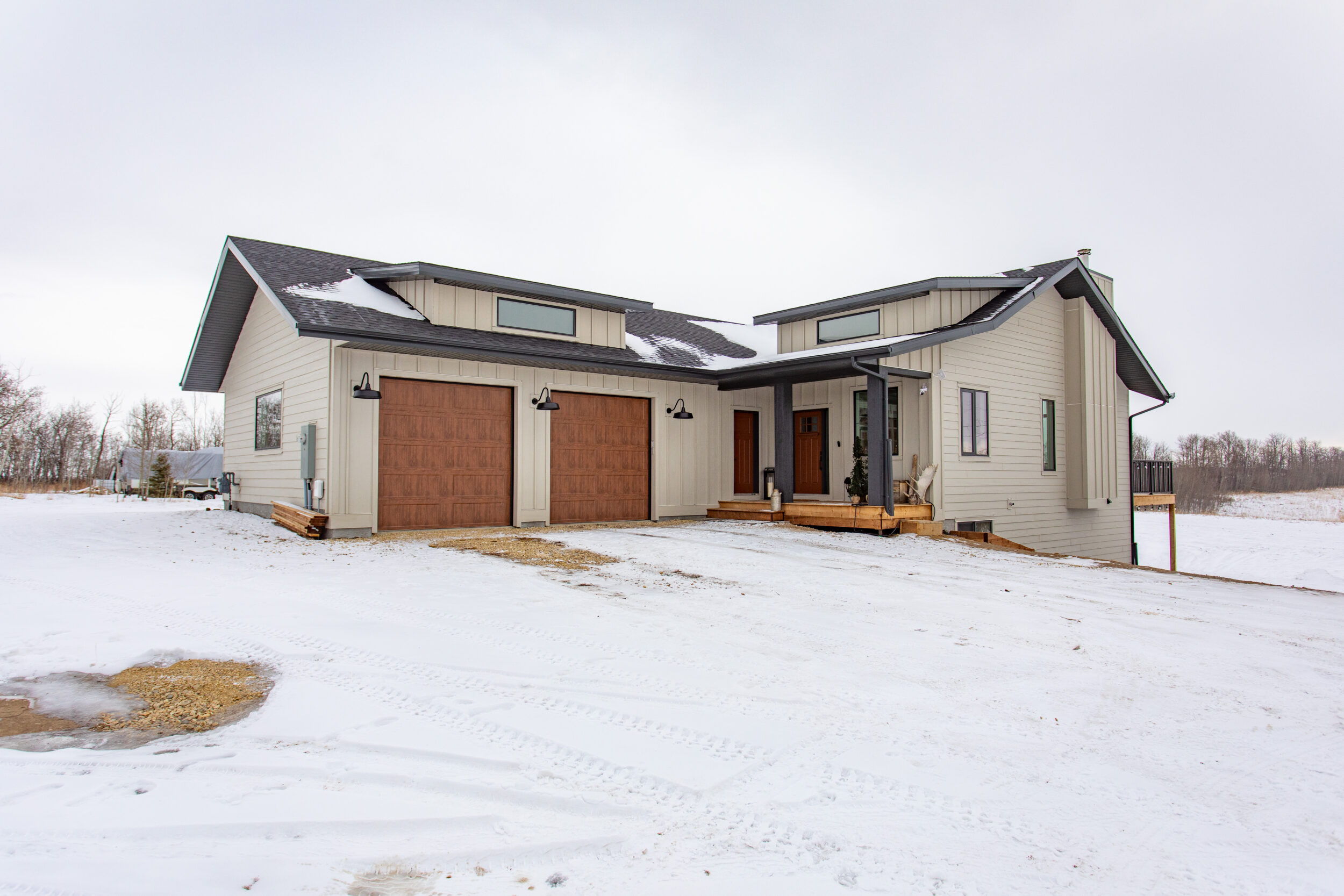 This custom acreage home blends modern architecture with warmth, comfort, and everyday functionality. Clean exterior lines, durable finishes, and a welcoming front entry set the tone, while a walkout lower level and expansive deck create a strong connection to the surrounding landscape. Inside, a bright open-concept layout is anchored by a thoughtfully designed kitchen featuring custom cabinetry, a statement wood island, and carefully selected lighting and finishes. Natural light flows throughout the main living areas, complemented by serene bedrooms, spa-inspired bathrooms, and practical storage solutions, all reflecting a home built with intention, quality craftsmanship, and personalized acreage living in Central Alberta.