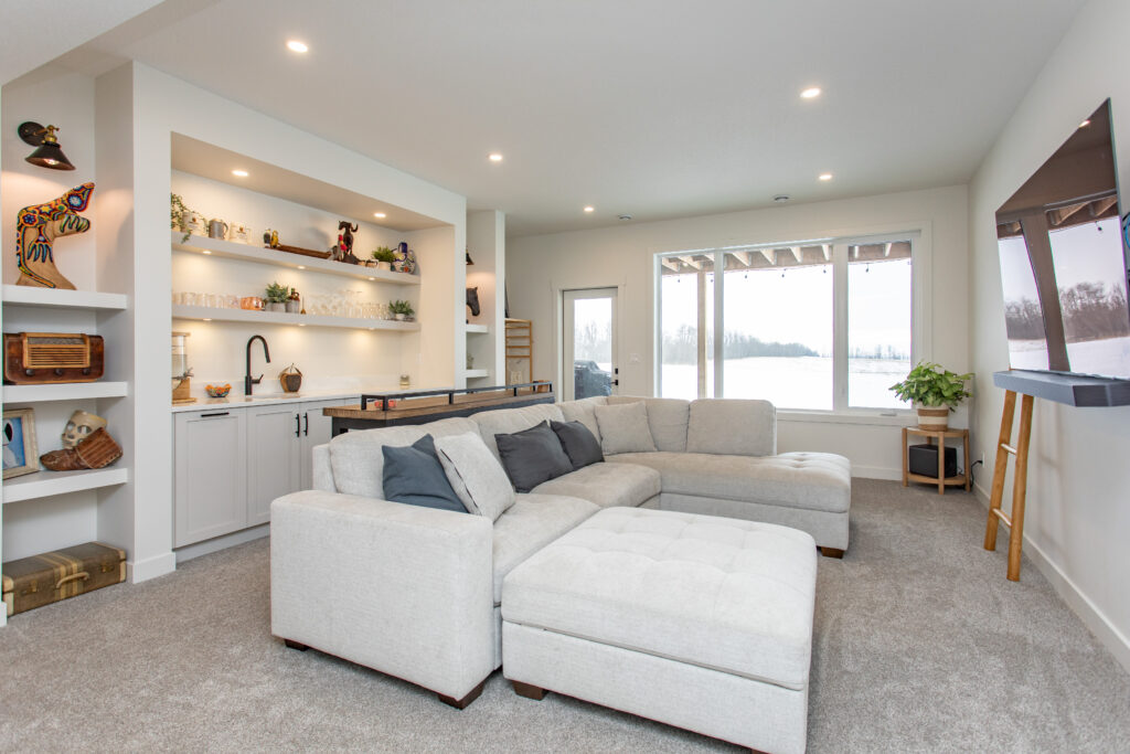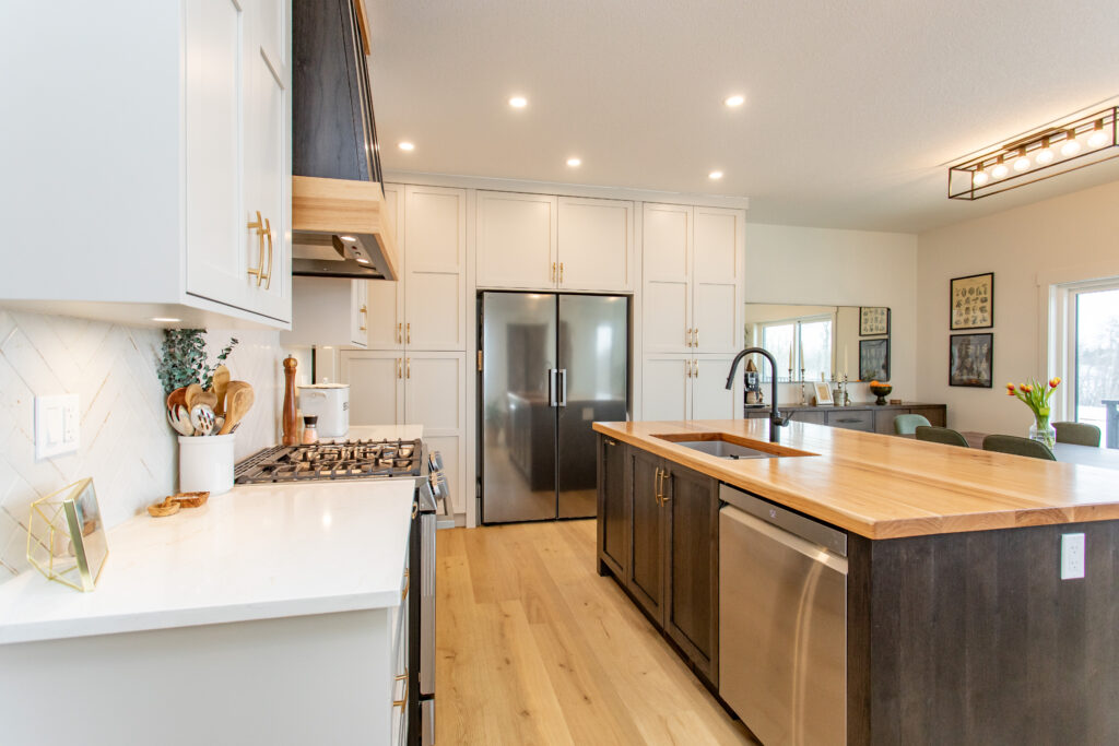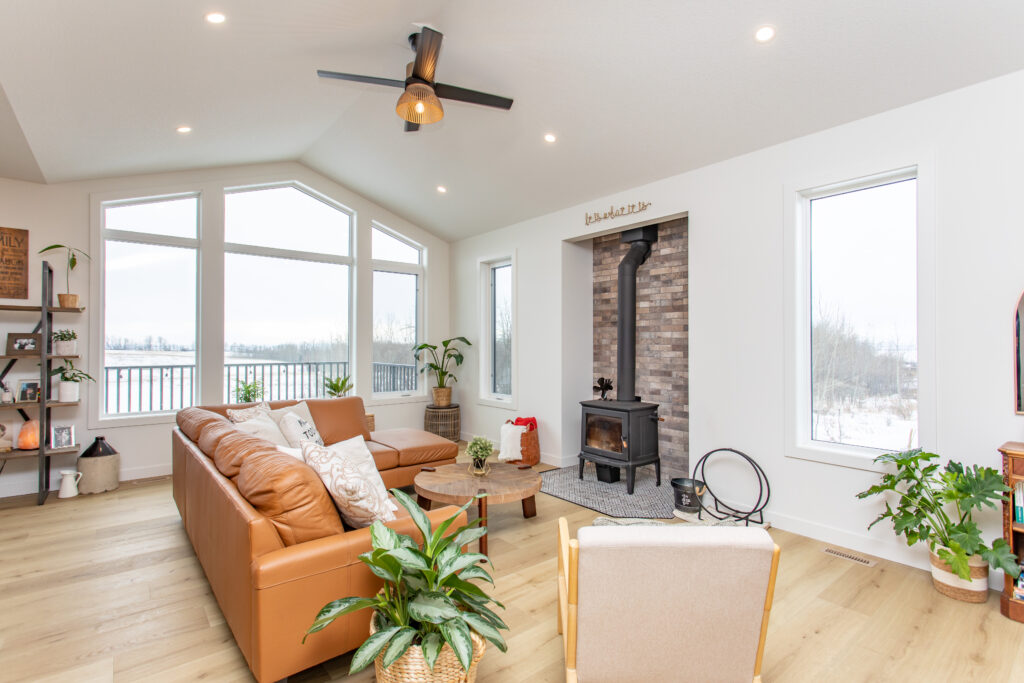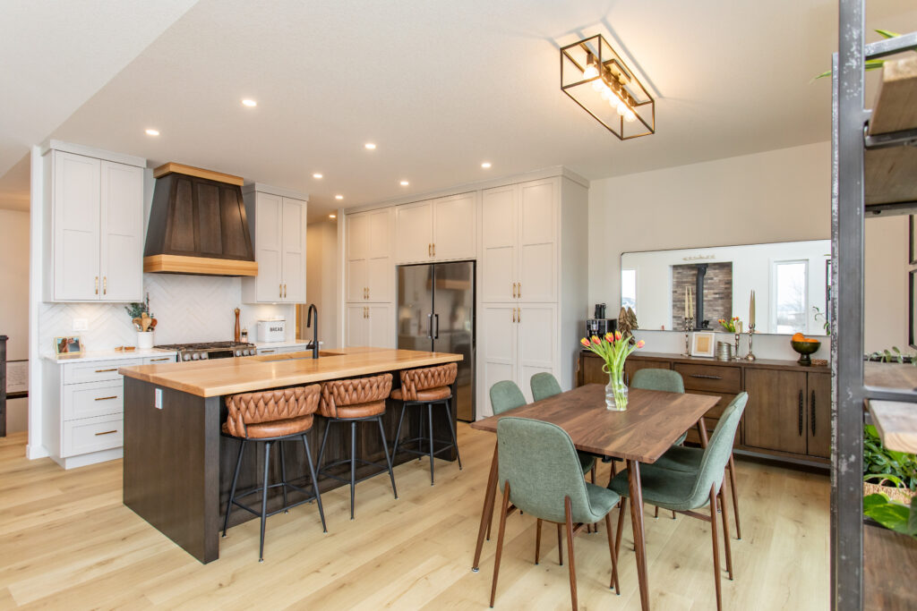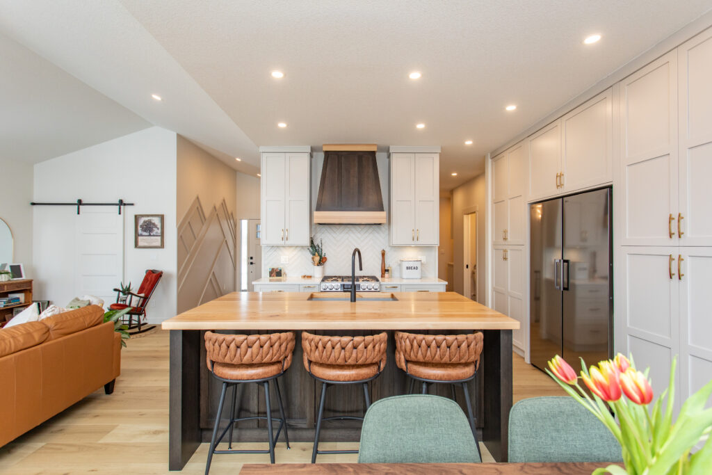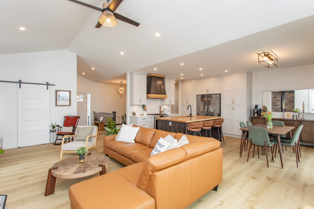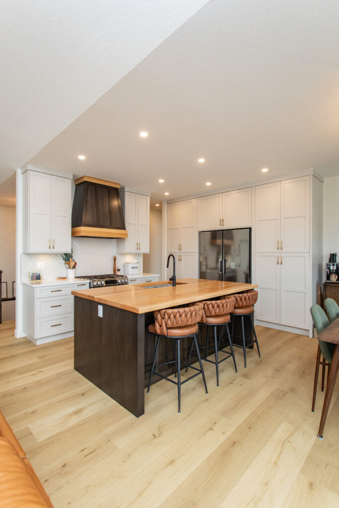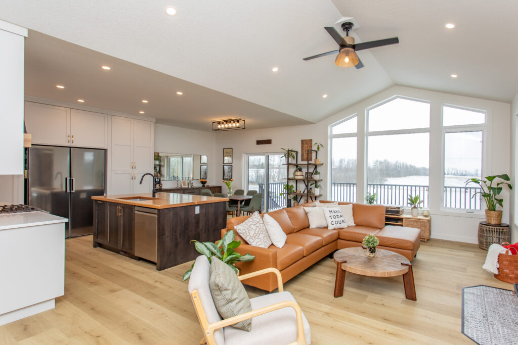 This custom acreage home blends modern architecture with warmth, comfort, and everyday functionality. Clean exterior lines, durable finishes, and a welcoming front entry set the tone, while a walkout lower level and expansive deck create a strong connection to the surrounding landscape. Inside, a bright open-concept layout is anchored by a thoughtfully designed kitchen featuring custom cabinetry, a statement wood island, and carefully selected lighting and finishes. Natural light flows throughout the main living areas, complemented by serene bedrooms, spa-inspired bathrooms, and practical storage solutions, all reflecting a home built with intention, quality craftsmanship, and personalized acreage living in Central Alberta.