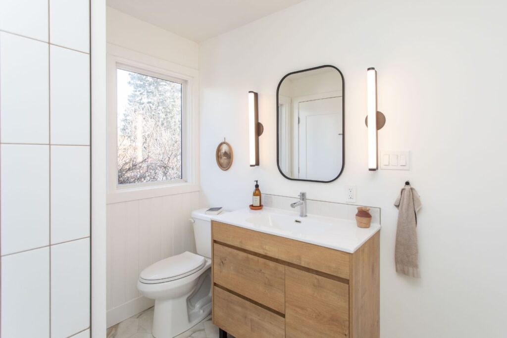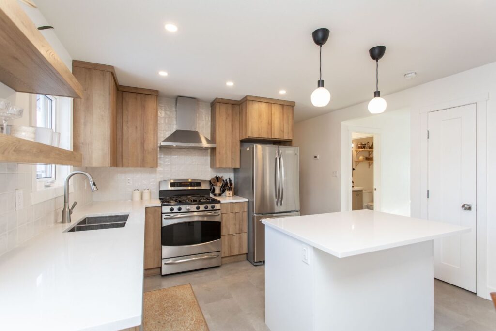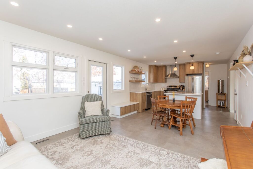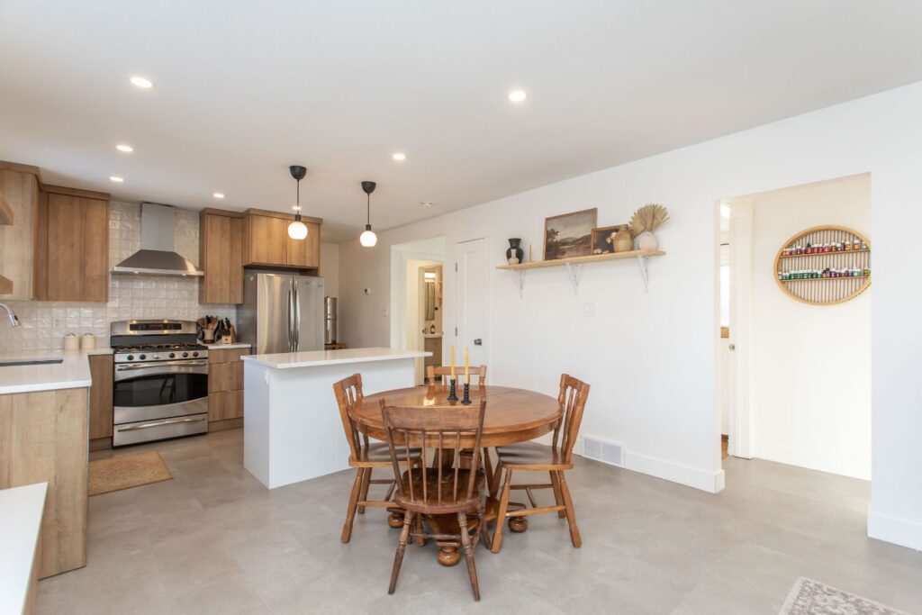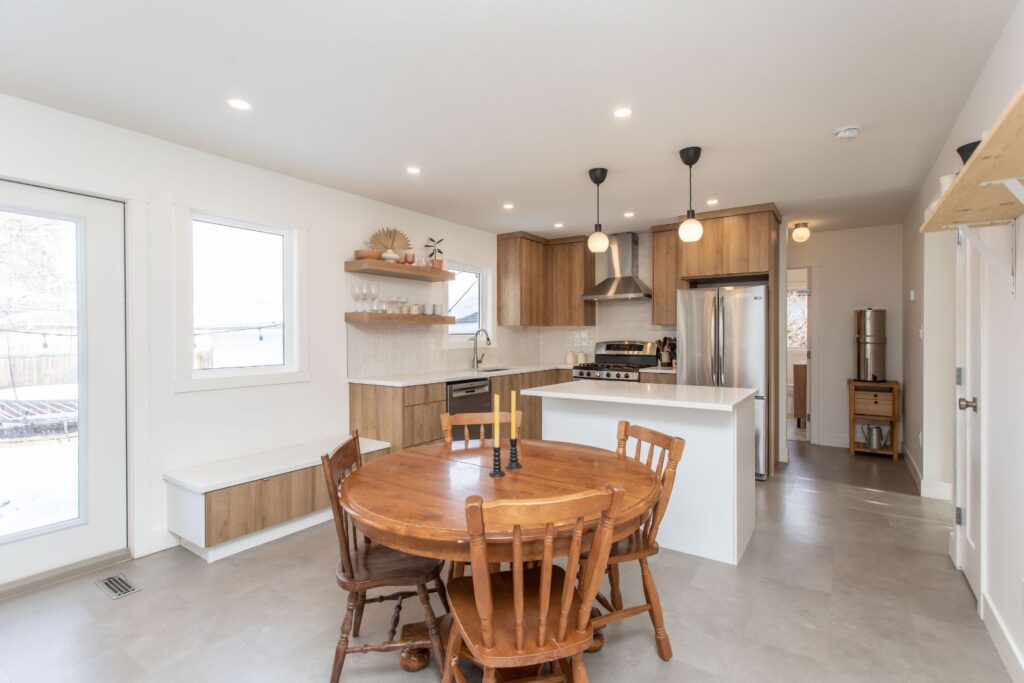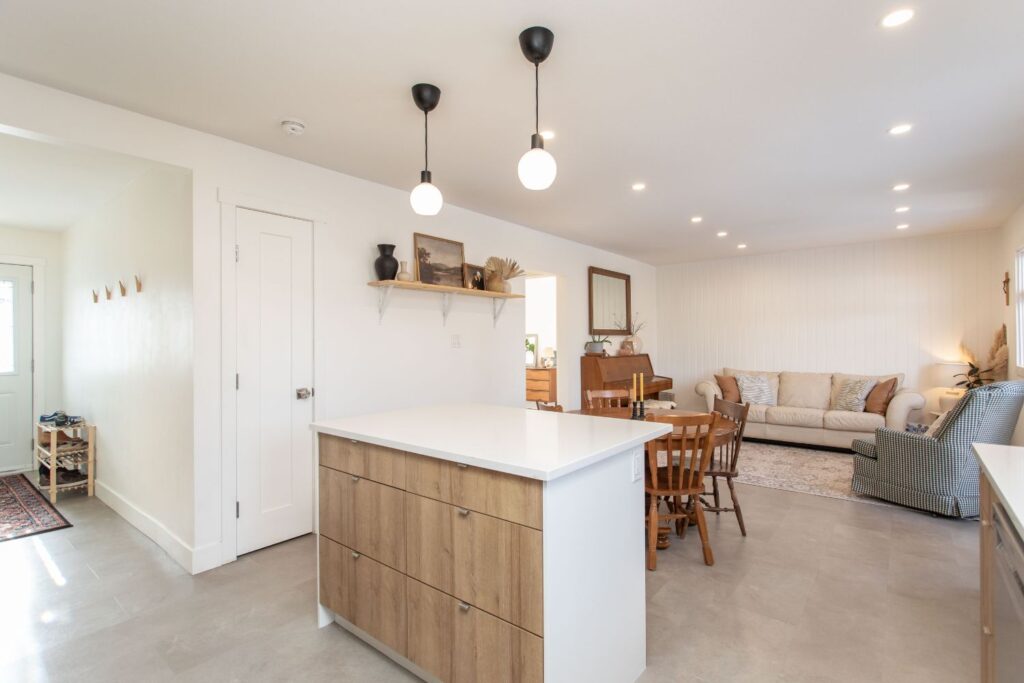 This 50’s bungalow started off as original as it gets. We moved just about every single wall in the home! Adjusting the layout to flow and allow for a larger space for this family to connect in their kitchen and living room. Windows and a rear patio door were added for natural light and improved sight lines. The main bathroom was moved to the other side of the main floor for much roomier space, and an ensuite was added to the primary retreat! The front façade earned a much-deserved facelift as well.