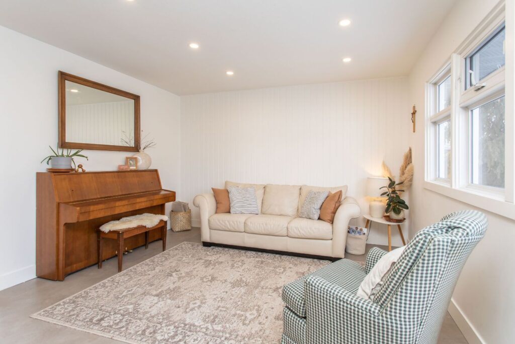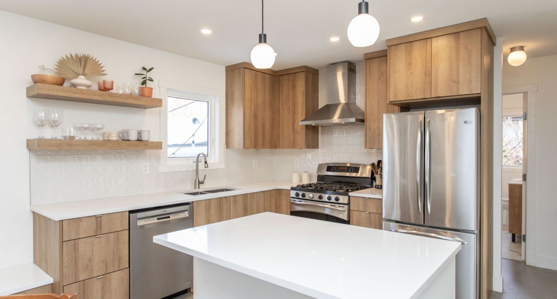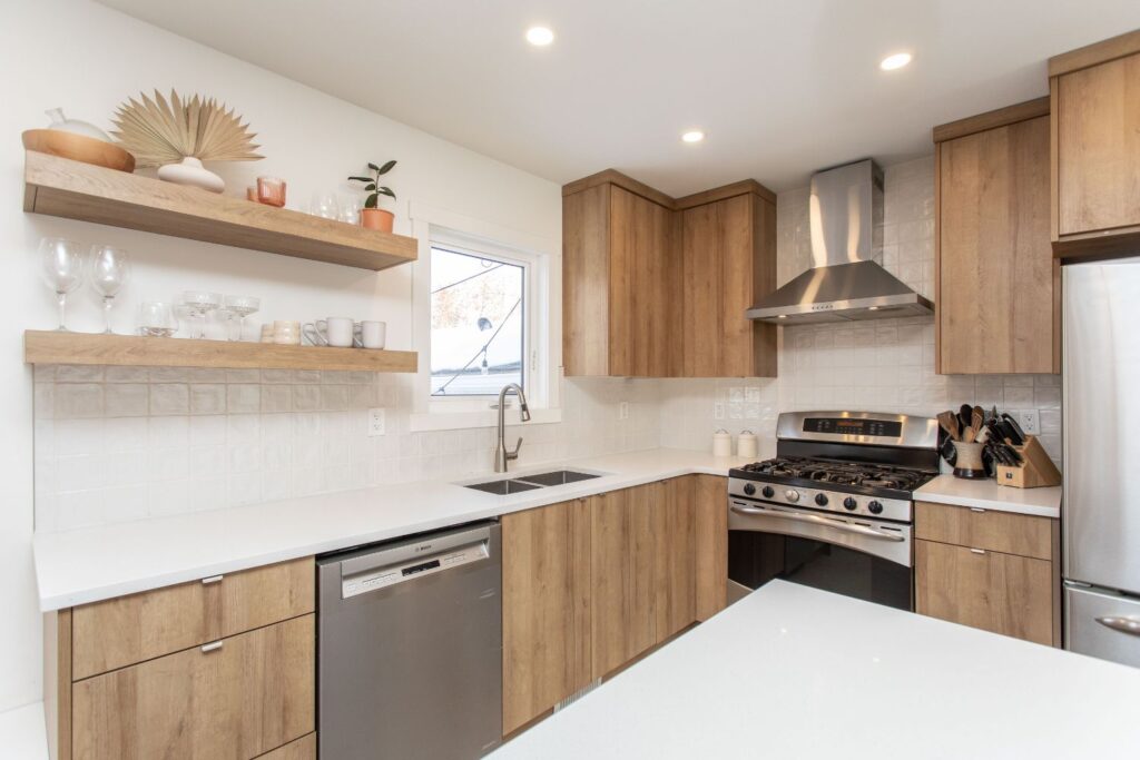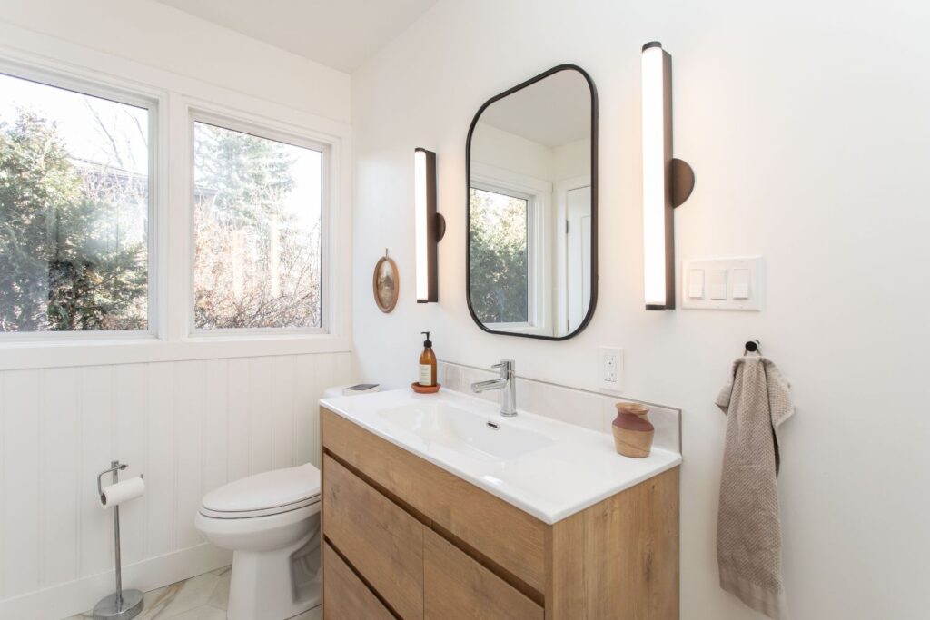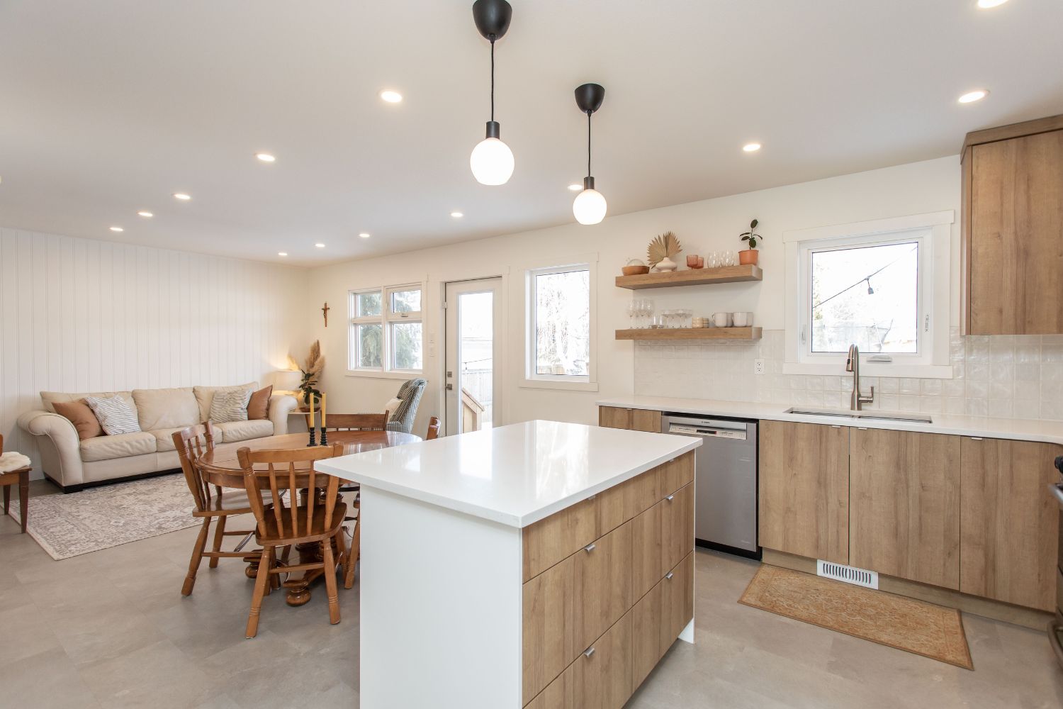 This 50’s bungalow started off as original as it gets. We moved just about every single wall in the home! Adjusting the layout to flow and allow for a larger space for this family to connect in their kitchen and living room. Windows and a rear patio door were added for natural light and improved sight lines. The main bathroom was moved to the other side of the main floor for much roomier space, and an ensuite was added to the primary retreat! The front façade earned a much-deserved facelift as well.