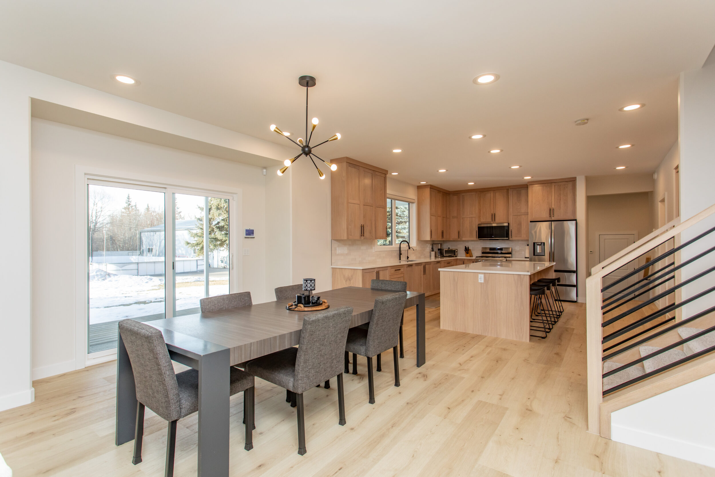 This renovation focused on improving layout, flow, and usability throughout the home. On the main floor, interior partition walls were removed to create an open-concept design connecting the kitchen, dining, and living areas. The result is a bright, spacious environment where natural light moves freely and each space feels intentionally connected.
