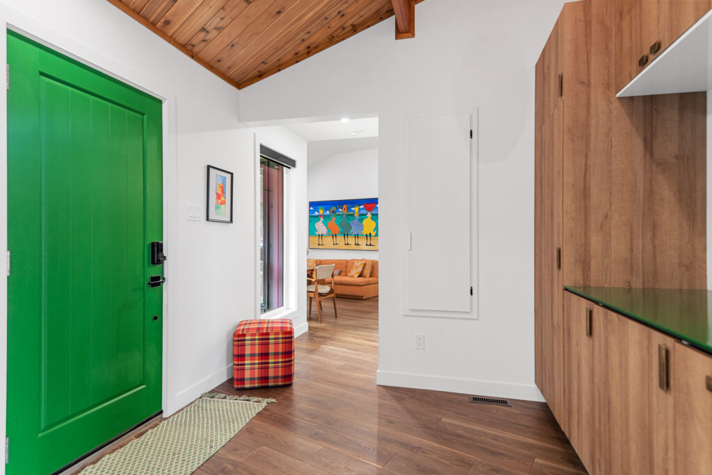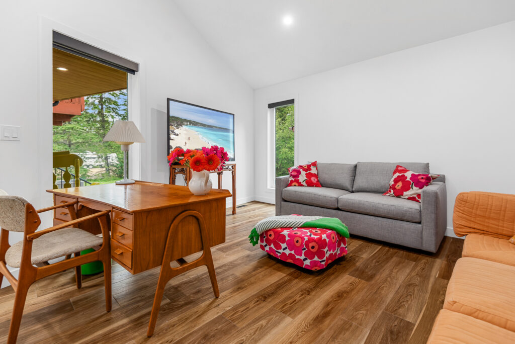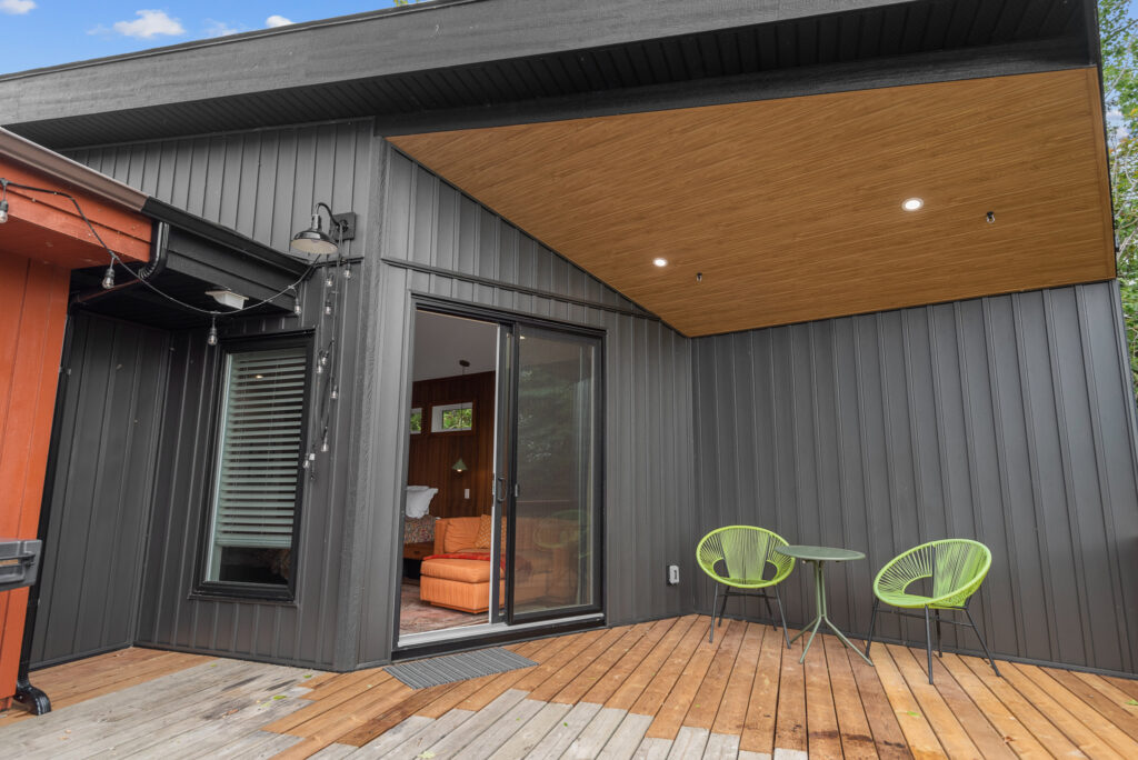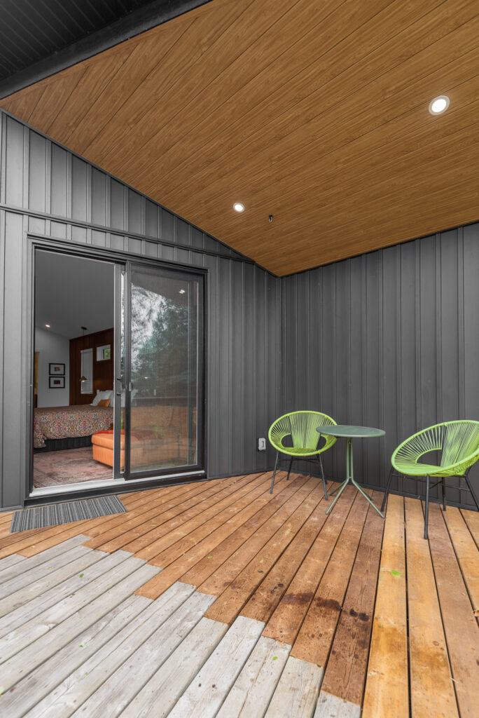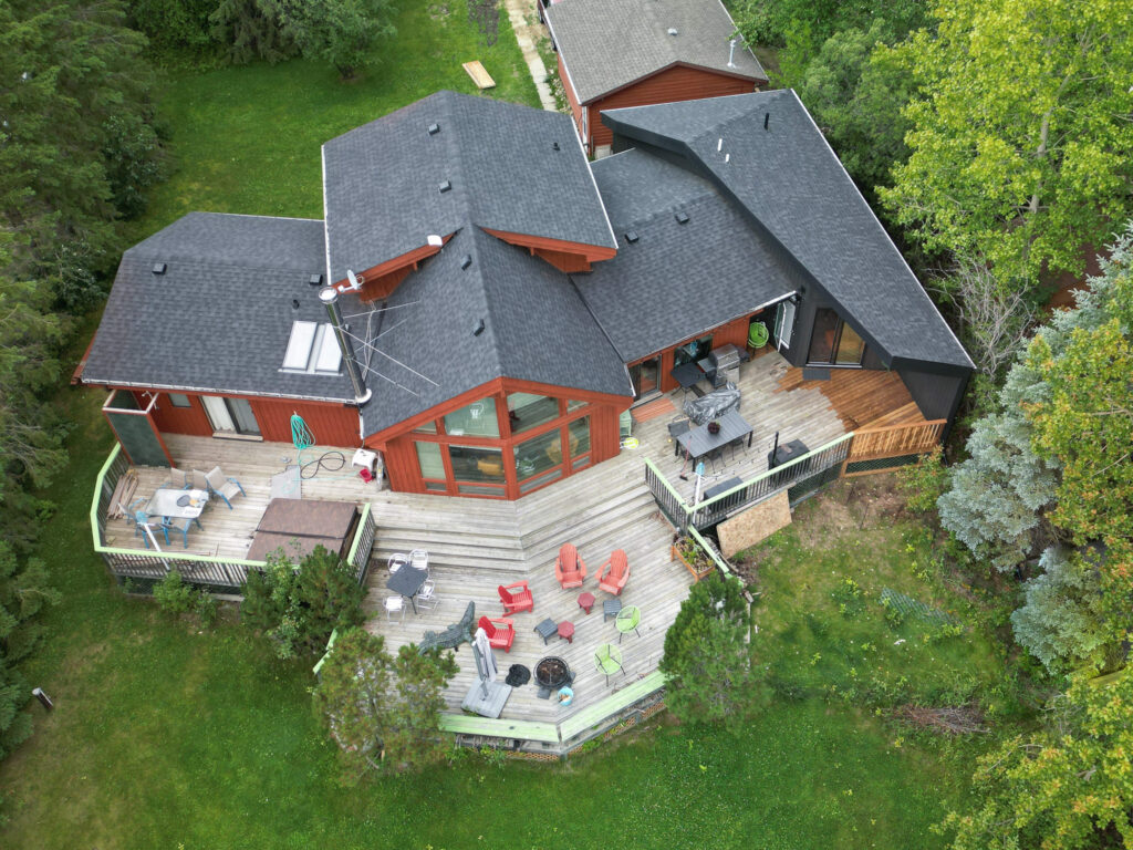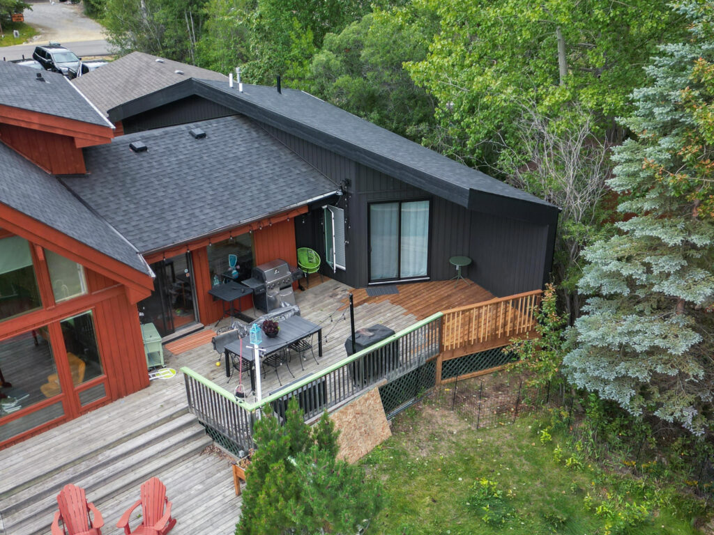 This lakefront cabin has been a family gathering spot for decades. As the family grew, more space was required. We “wedged” this addition in between the lot line and the existing cabin with creative design and thought. The addition itself is not only unique in its bold design but highly efficient in building practices.