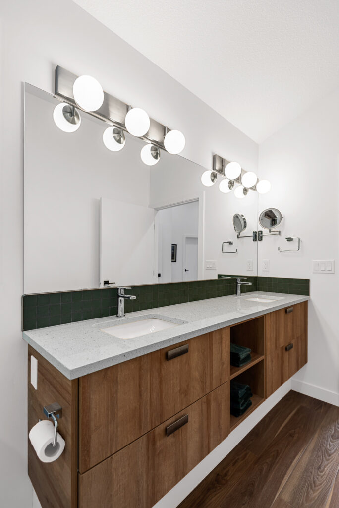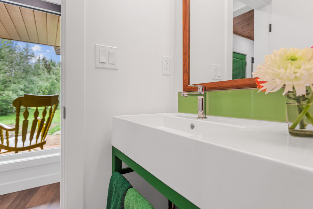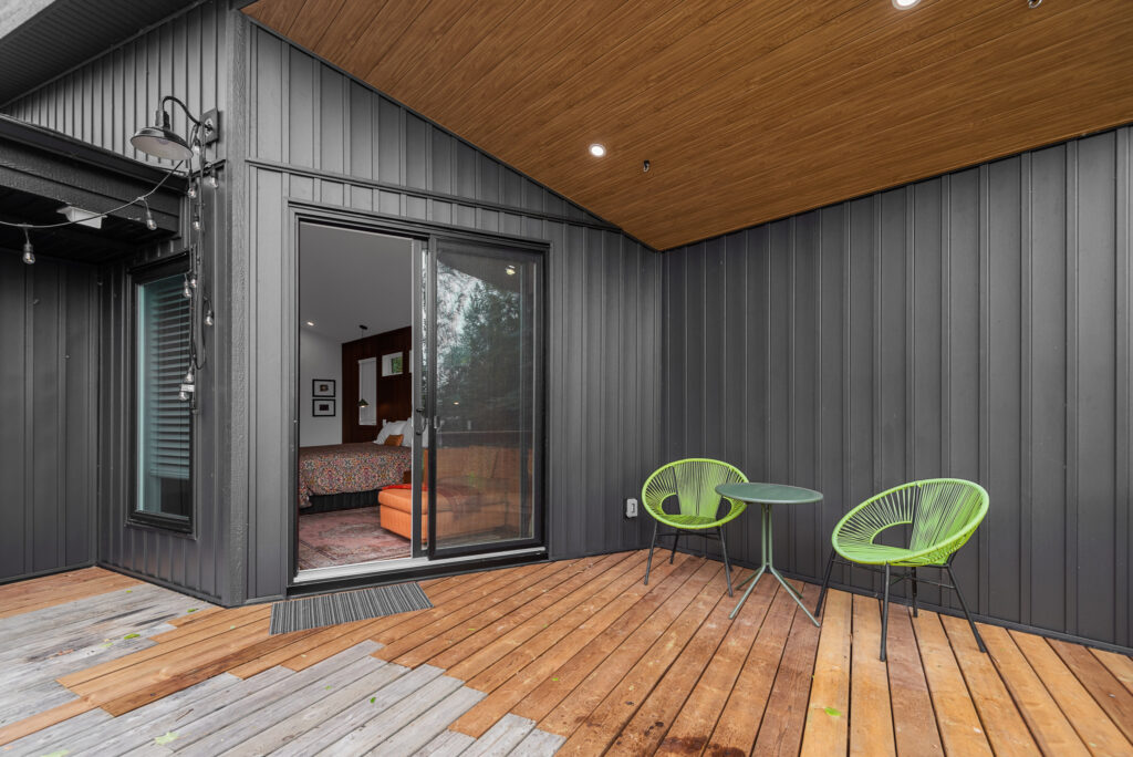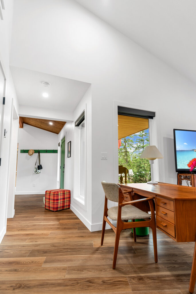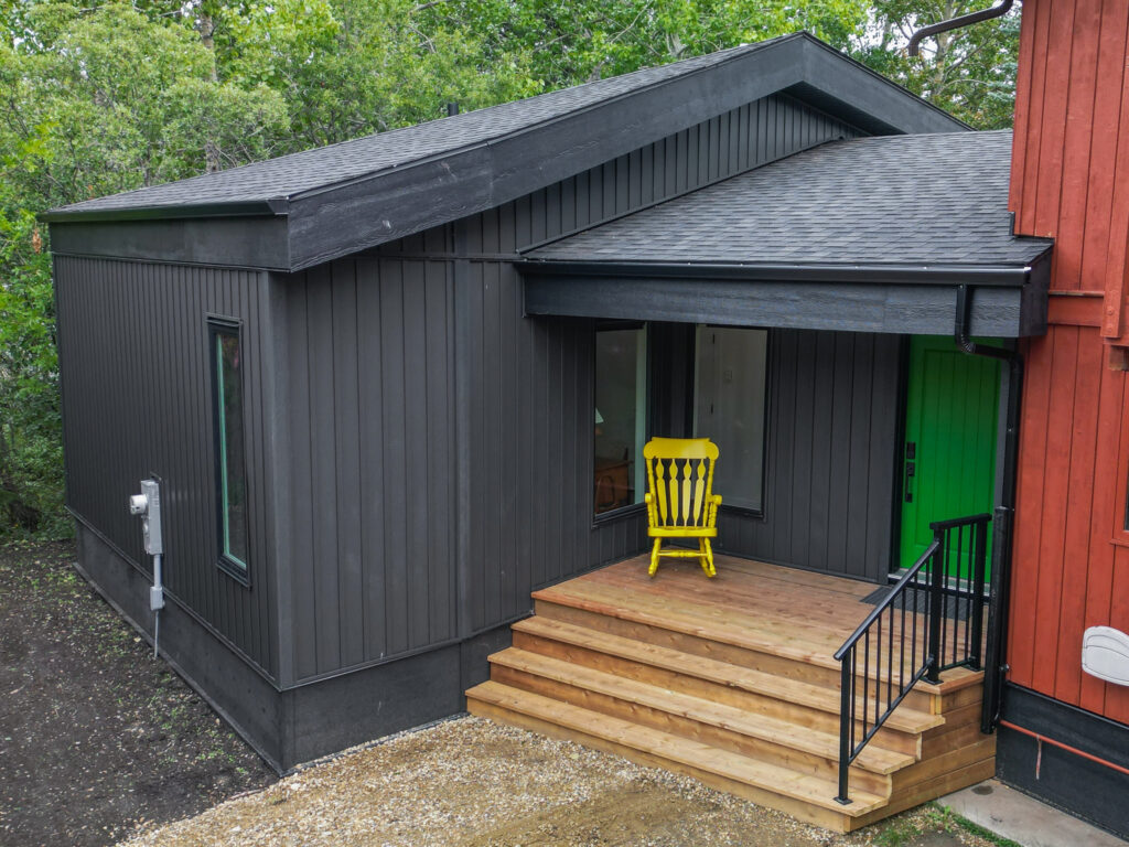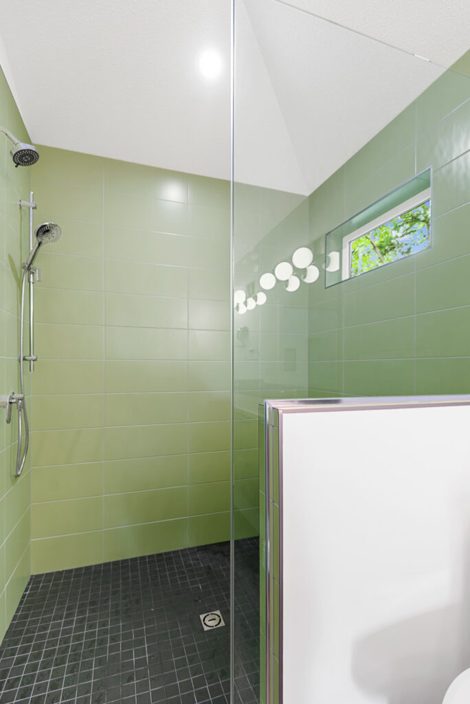 This lakefront cabin has been a family gathering spot for decades. As the family grew, more space was required. We “wedged” this addition in between the lot line and the existing cabin with creative design and thought. The addition itself is not only unique in its bold design but highly efficient in building practices.