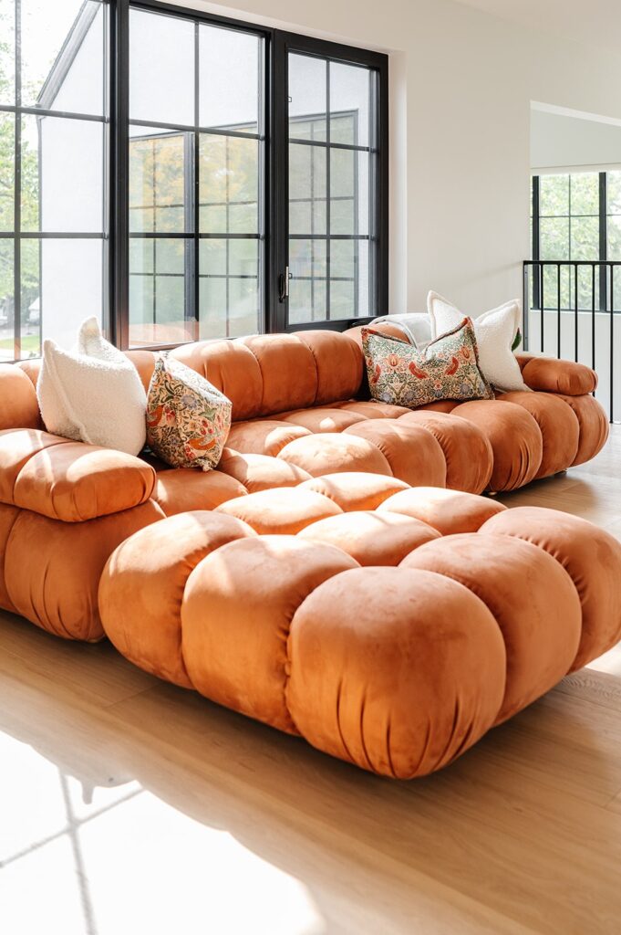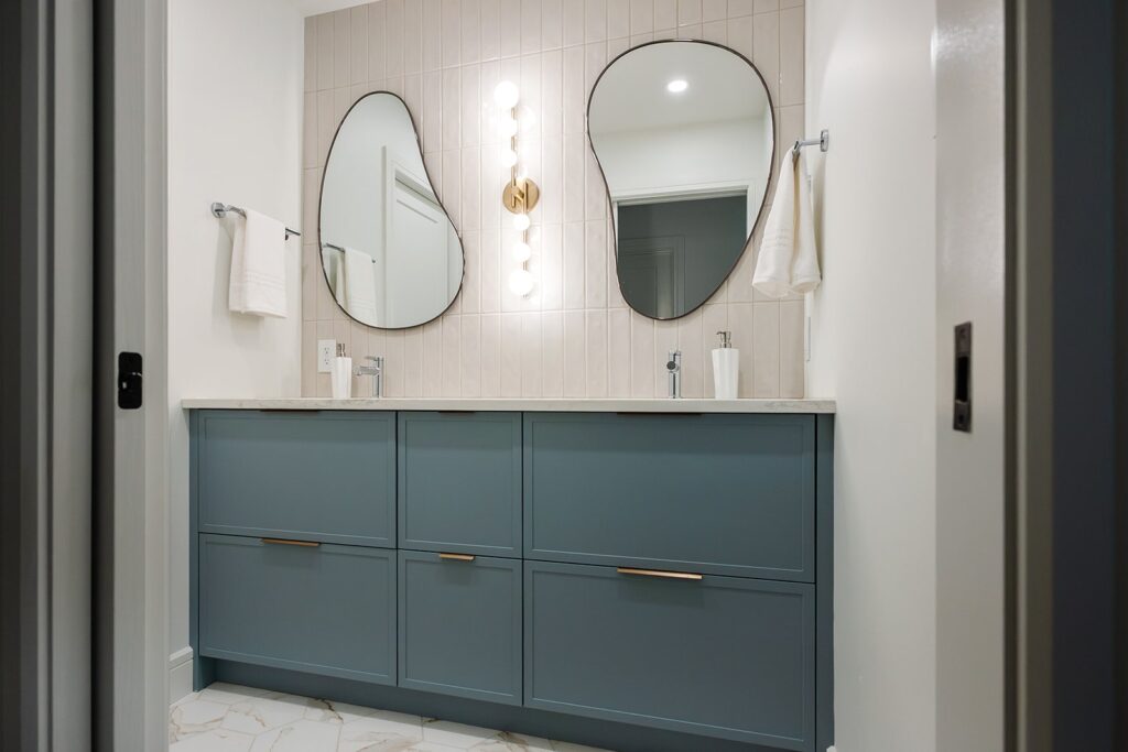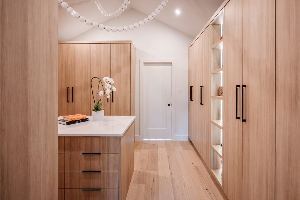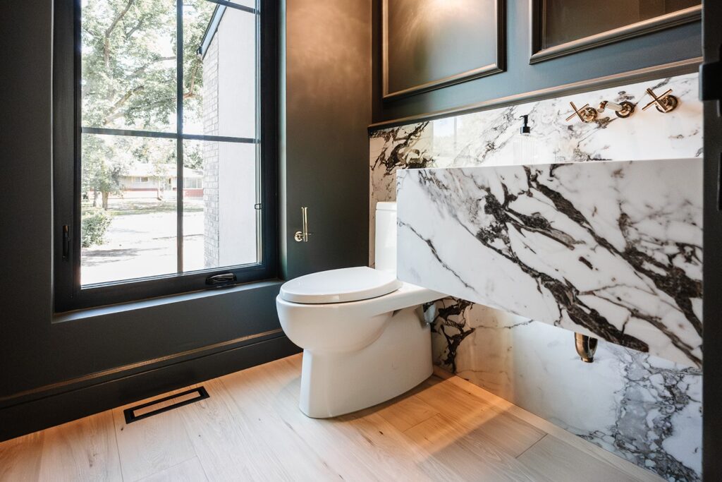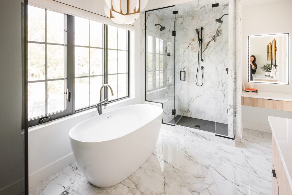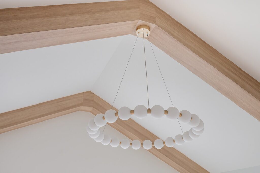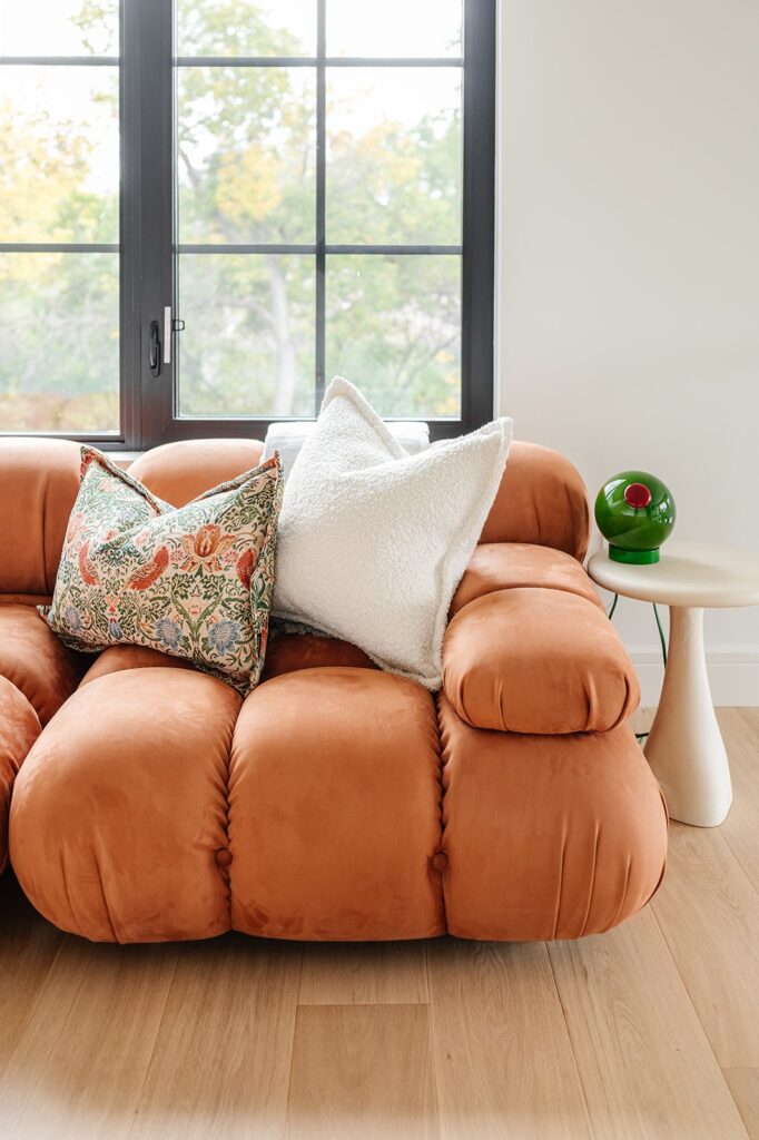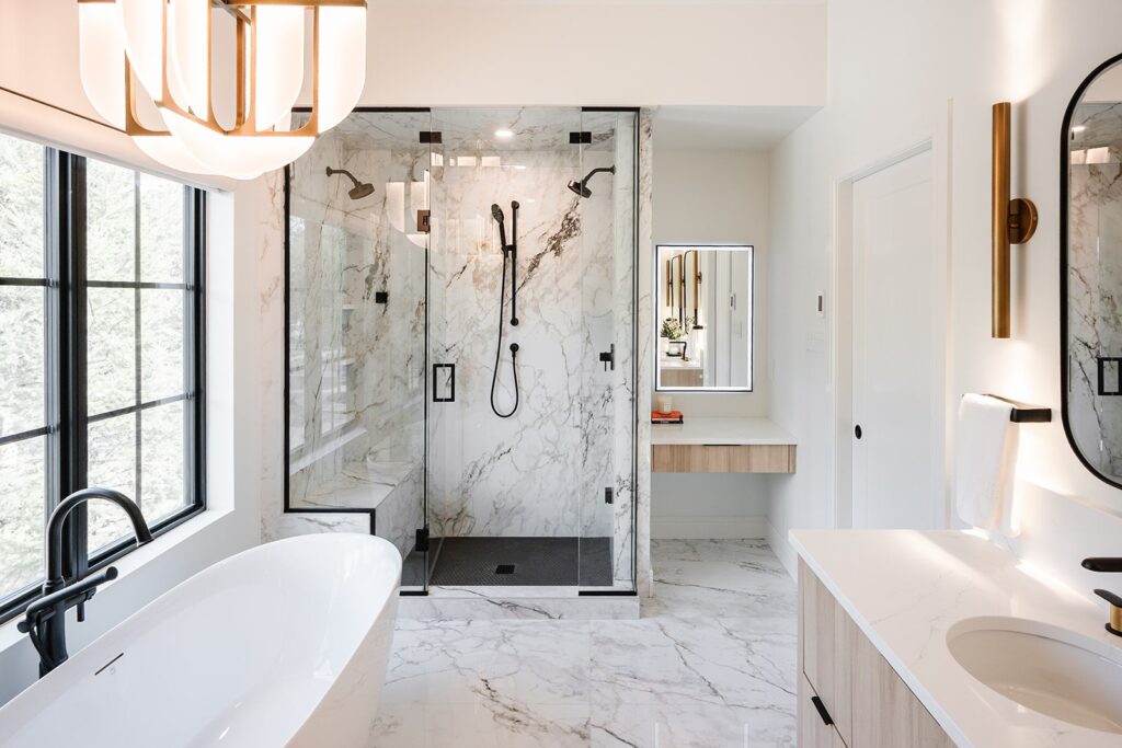 This home blends luxurious modern design with warm organic elements. Light-filled spaces feature white oak cabinetry and wide-plank engineered hardwood that create a soft, natural foundation. The kitchen showcases quartz countertops and full height backsplash that frames a Venetian player range hood, complimented by the modern black oak and sleek custom metal accents. In the living room, a striking porcelain fireplace and soaring ceilings add refined drama. Every detail, from the sculptural metal staircase railing to the hand crafted light fixtures and personalization of each room, reflects elevated craftsmanship and timeless contemporary style.