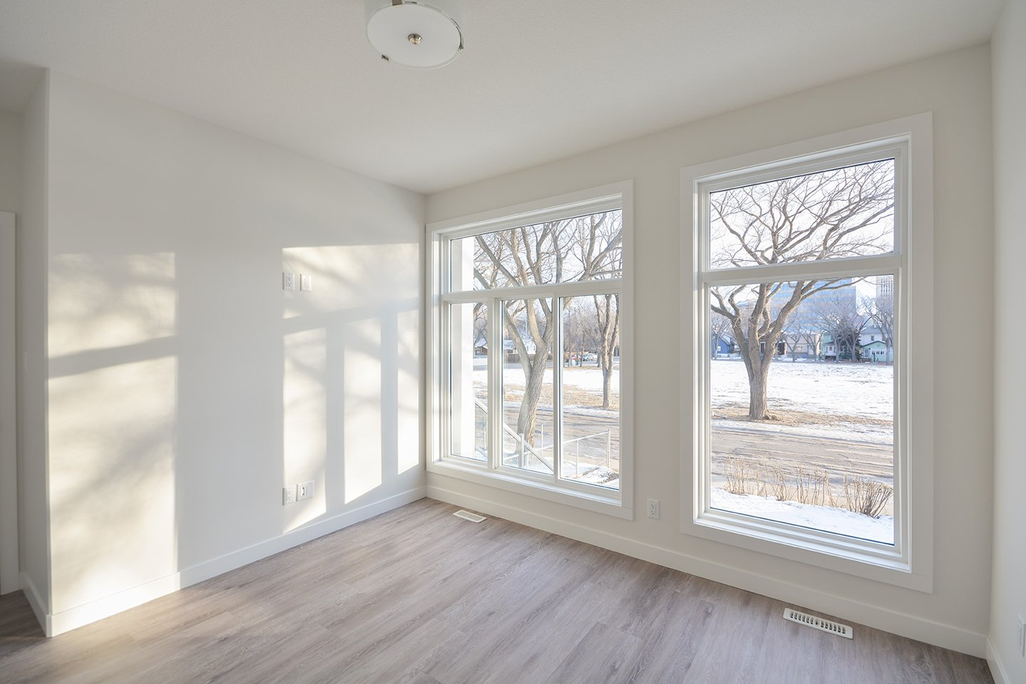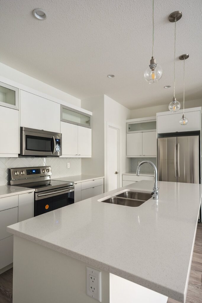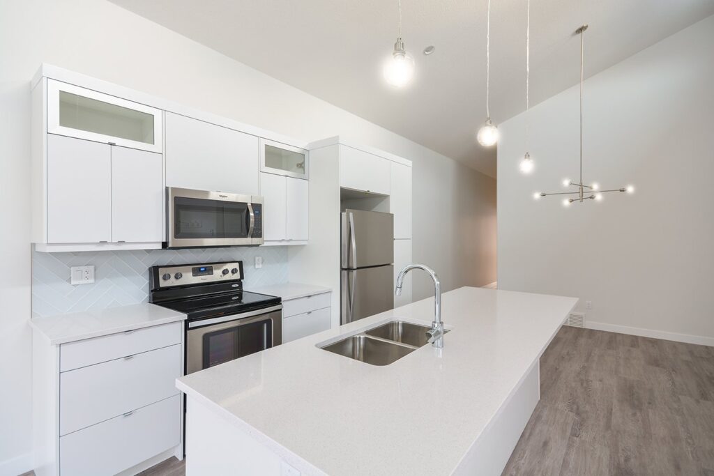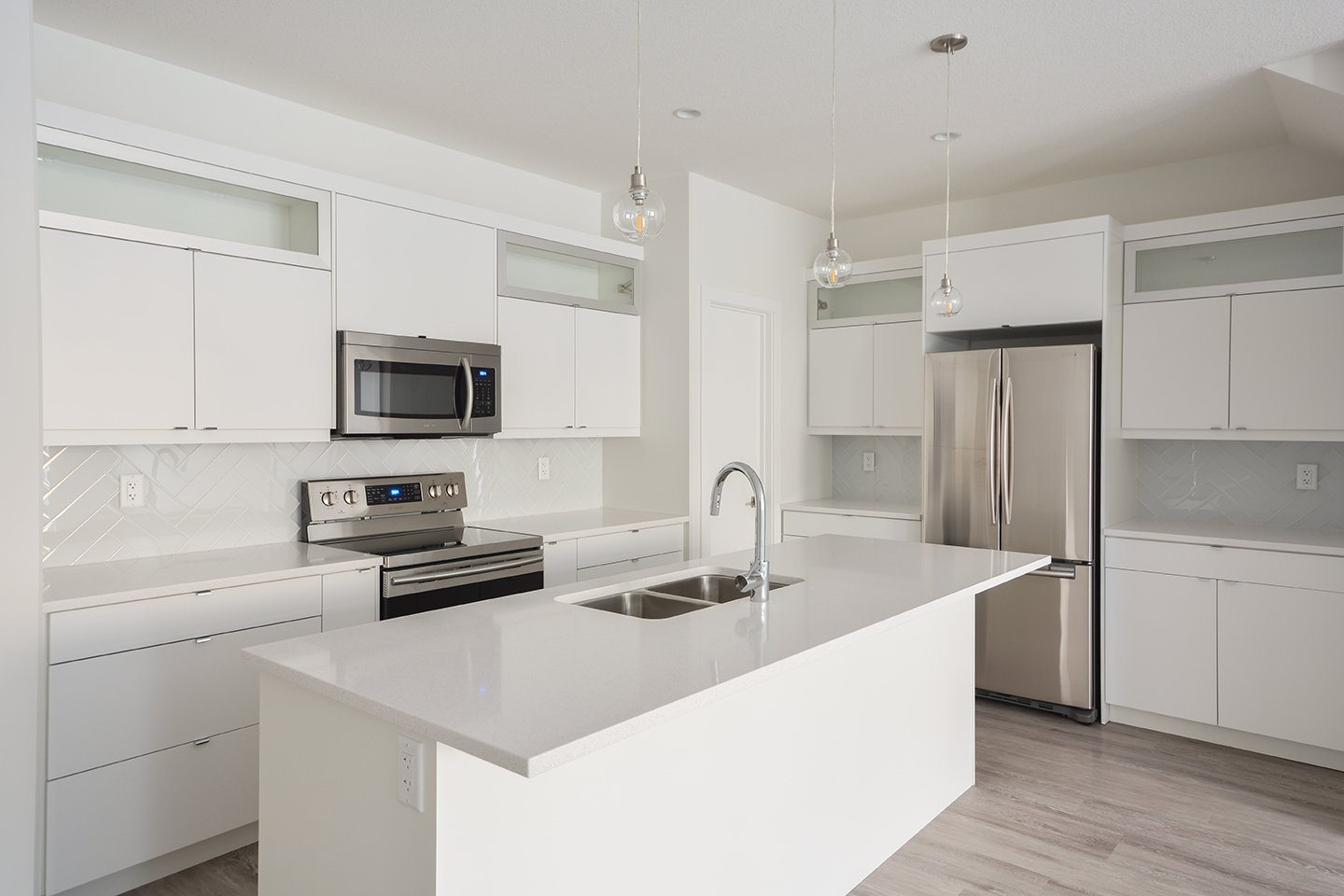 This custom home features a bright and open concept living area, kitchen, and high ceilings.