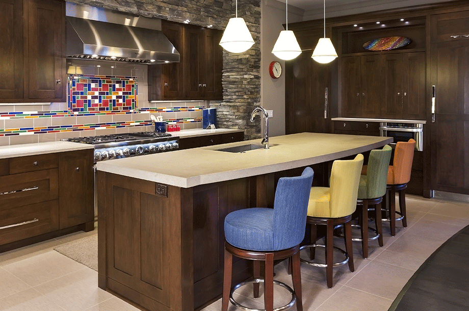 Concrete floors are also great for kitchens. They can be any color or pattern you choose, which can certainly chase away those winter blues. Concrete is also extremely durable and environmentally friendly. Add radiant heat to keep your feet warm and toasty during those colder months. This simple feature can add comfort to the most cold and unwelcome places.