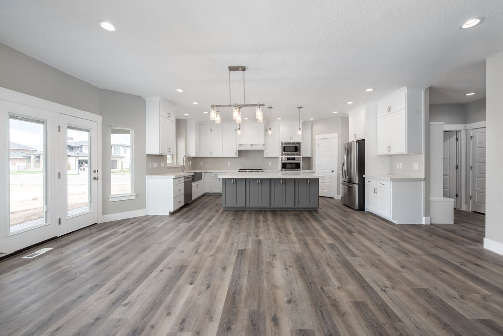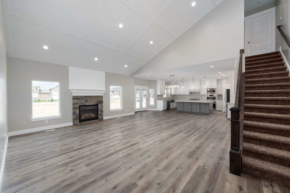 This modern design features an open concept main floor with a vaulted ceiling, hardwood floors, and high end finishes.