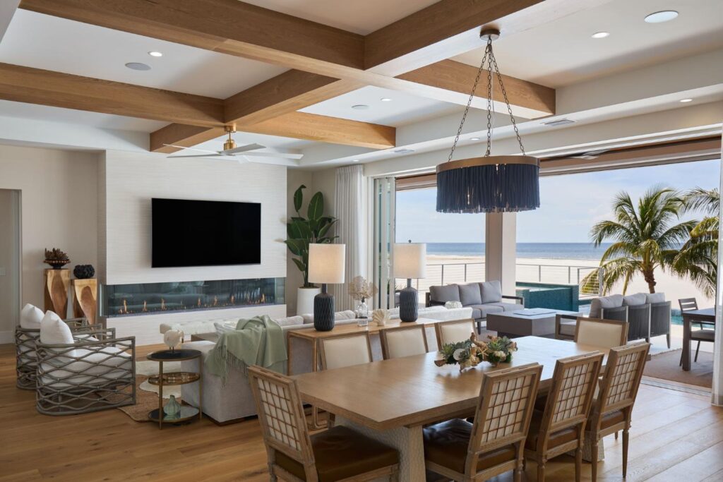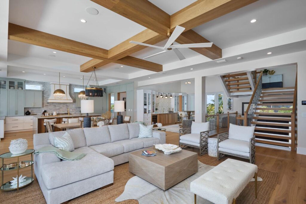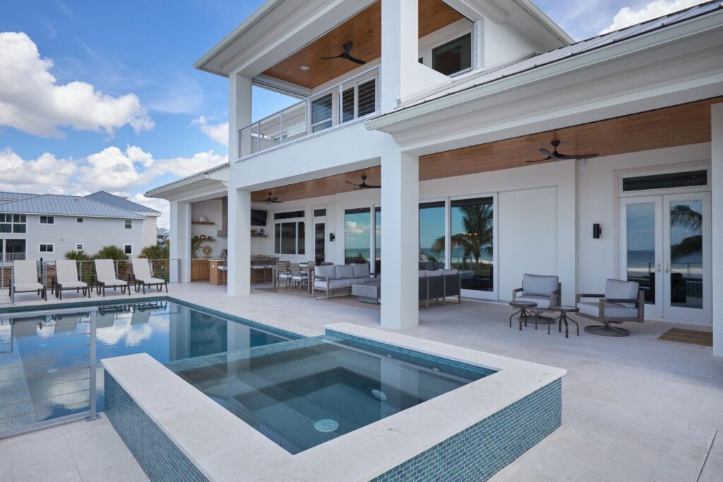 Imagine a luxurious, contemporary beach home, transformed from the remnants of Hurricane Ian’s devastation. This 4-bedroom, 5-bathroom gem, sprawling over 4,278 sqft, is a testament to resilience and elegance. Our renovation journey started shortly after the hurricane hit Fort Myers Beach in September 2022, completely revamping the house while maintaining its coastal charm. We replaced outdated arches with sleek, modern lines and incorporated high-end finishes like hand-finished beams in the main living area and a spectacular glass chandelier in the stairwell. With breathtaking Gulf of Mexico views from the living room, kitchen, master suite, and an elevated infinity edge pool, this home perfectly balances luxury and comfort.