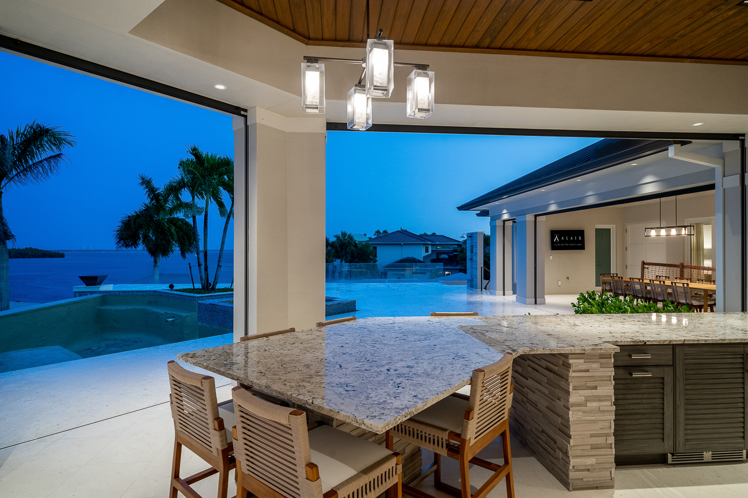 This stunning 4-bedroom, 6.5-bathroom home includes a 1-bedroom/1-guest cabana and is designed for both luxury and comfort. Custom features include an elevated pool and pool deck lanai off the main living level, an outdoor kitchen, and expansive views of the Matanzas Pass and Estero Bay estuaries. Enjoy a 300-bottle wine room, a wet bar, and a master bath adorned with authentic Carrara marble throughout. Additional highlights include smart glass at the front door that switches from clear to opaque at the touch of a button, a game room, an exercise room, and much more.