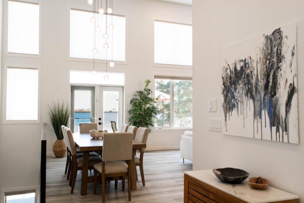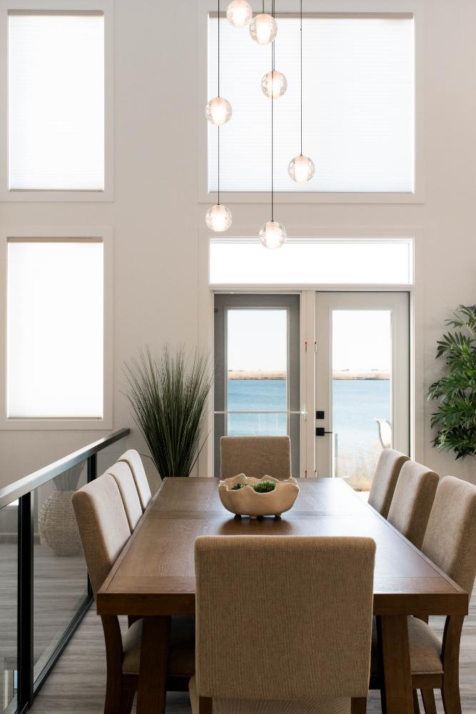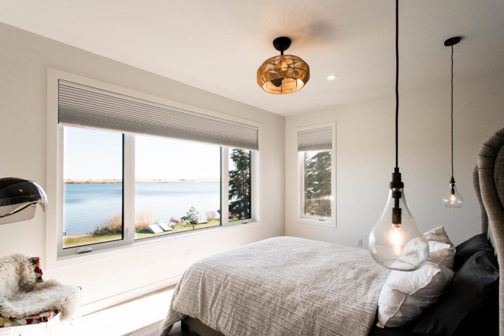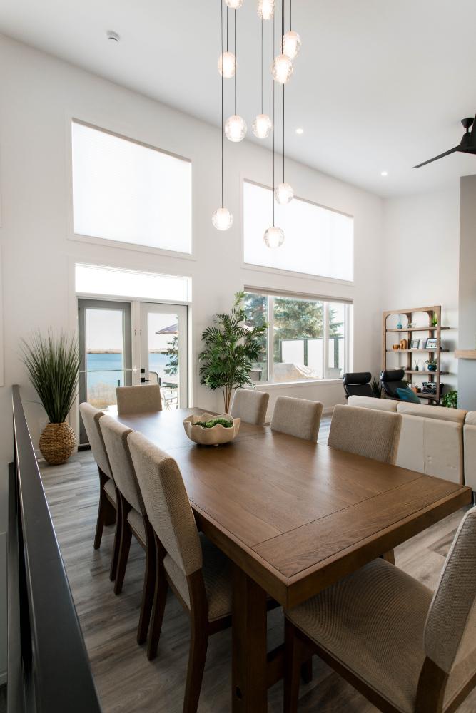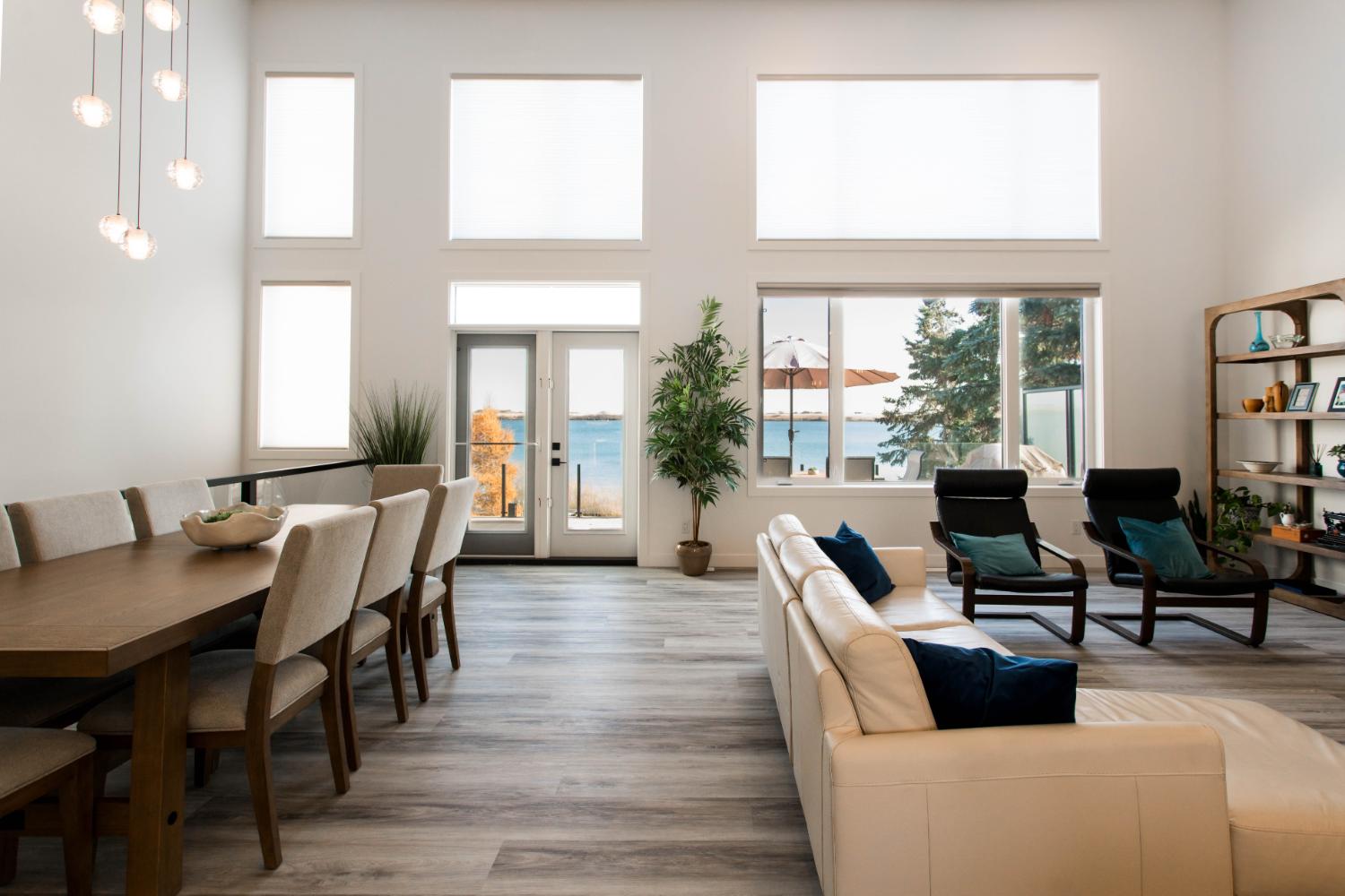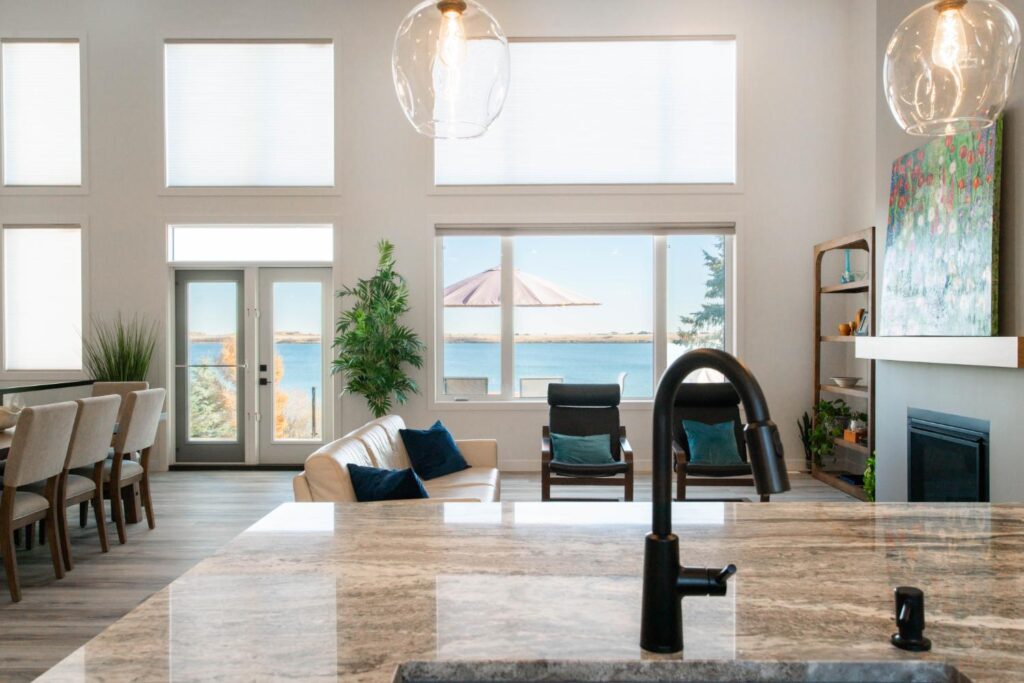 This project started as a meeting to renovate the old home on this lot. The property is on the shores of Balckstrap Lake south of Saskatoon. When it was realized that the home could not be renovated, we moved on to planning a custom home that fits their needs. The client always said that all she wanted was to stand at her island and look out onto the lake. That was accomplished by incorporating large high windows facing the lake which gives some spectacular views of the lake.