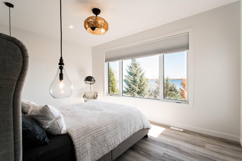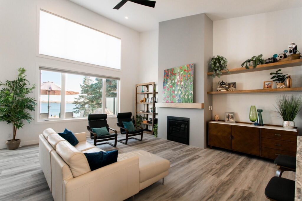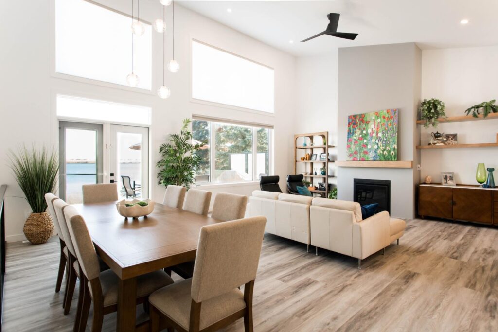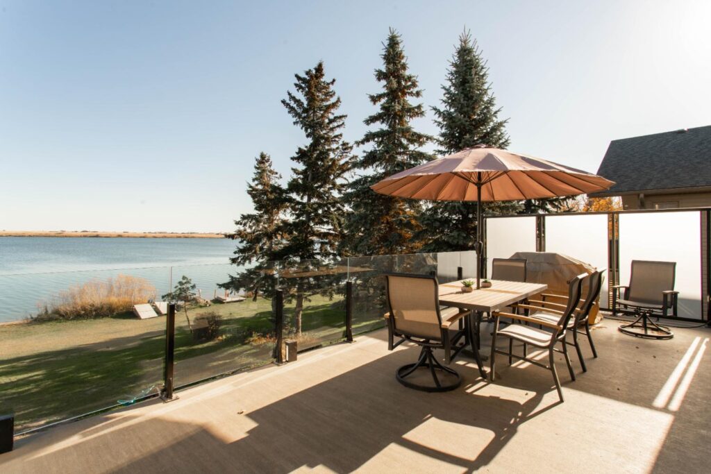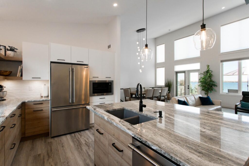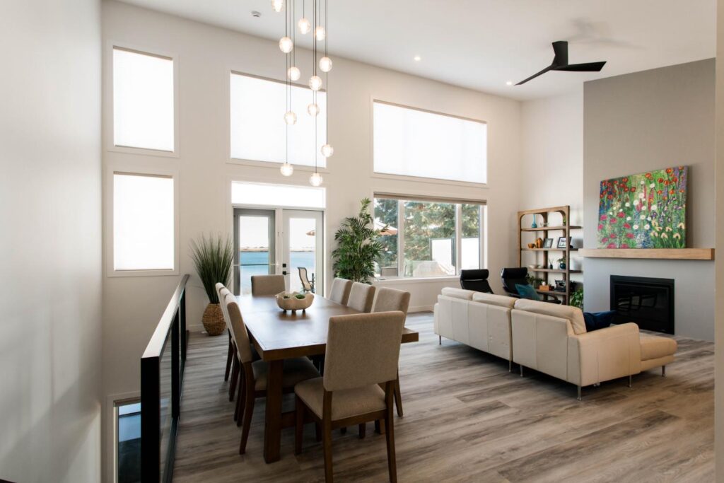 This project started as a meeting to renovate the old home on this lot. The property is on the shores of Balckstrap Lake south of Saskatoon. When it was realized that the home could not be renovated, we moved on to planning a custom home that fits their needs. The client always said that all she wanted was to stand at her island and look out onto the lake. That was accomplished by incorporating large high windows facing the lake which gives some spectacular views of the lake.